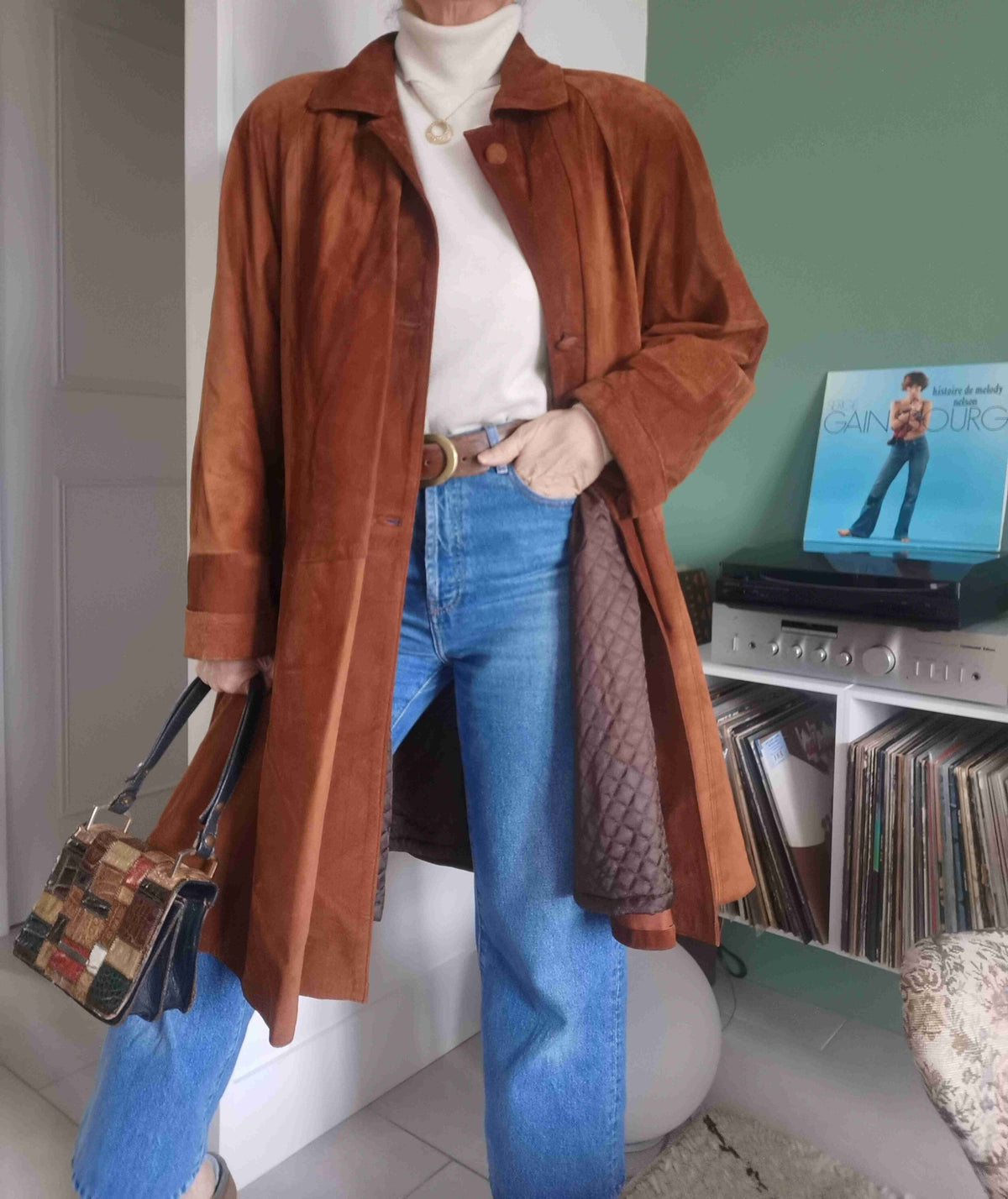 Prix unitaire parManteau en daim caramel vintage 80 's