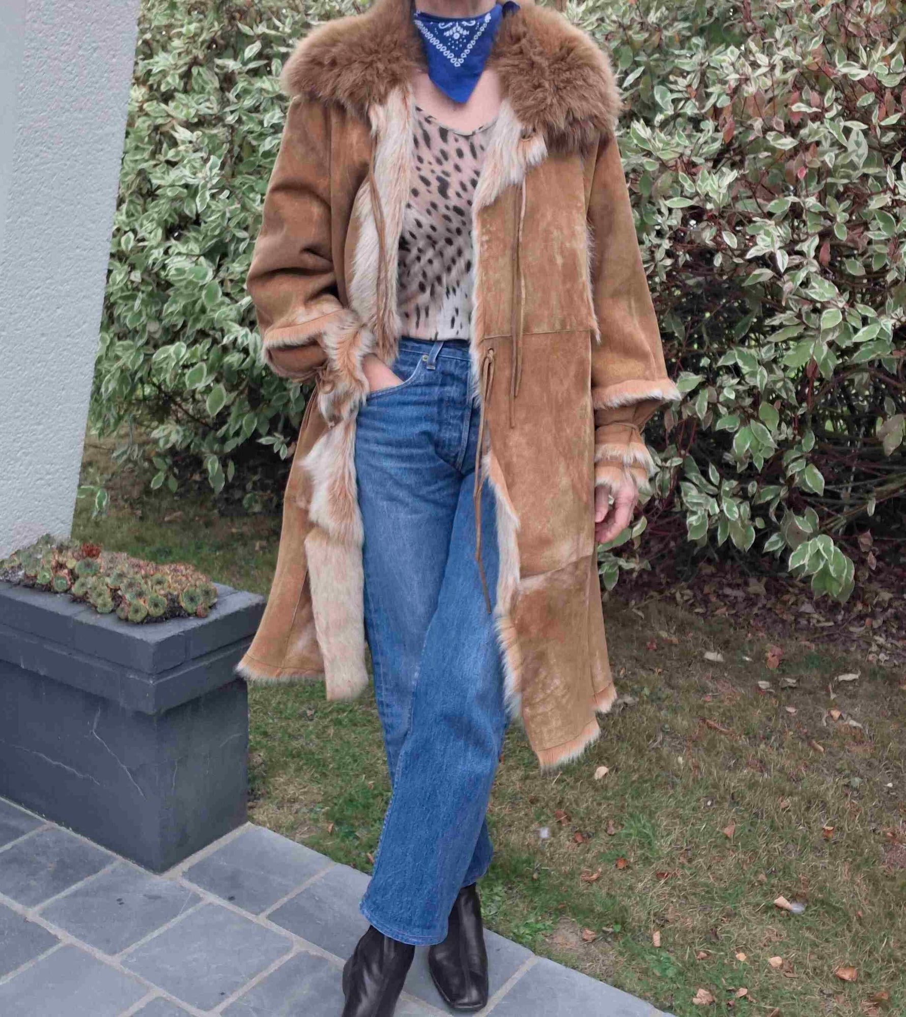 Manteau en daim et fourrure