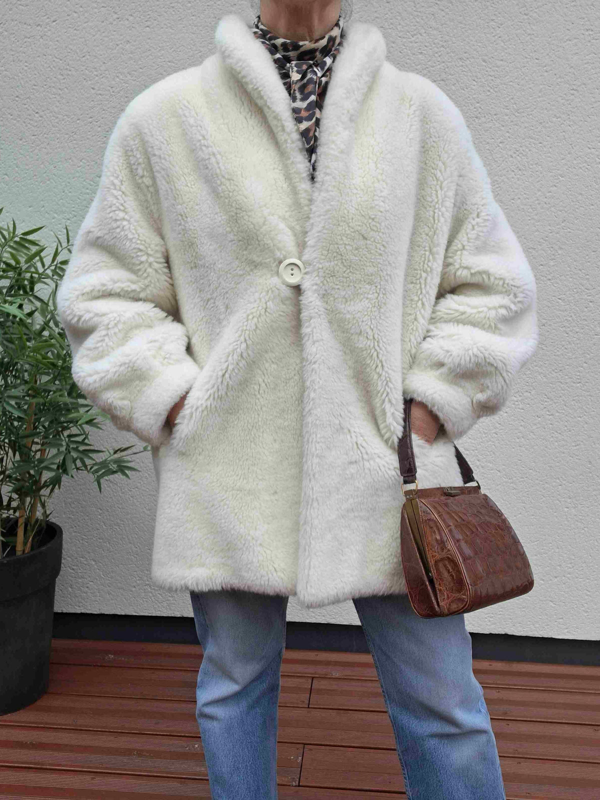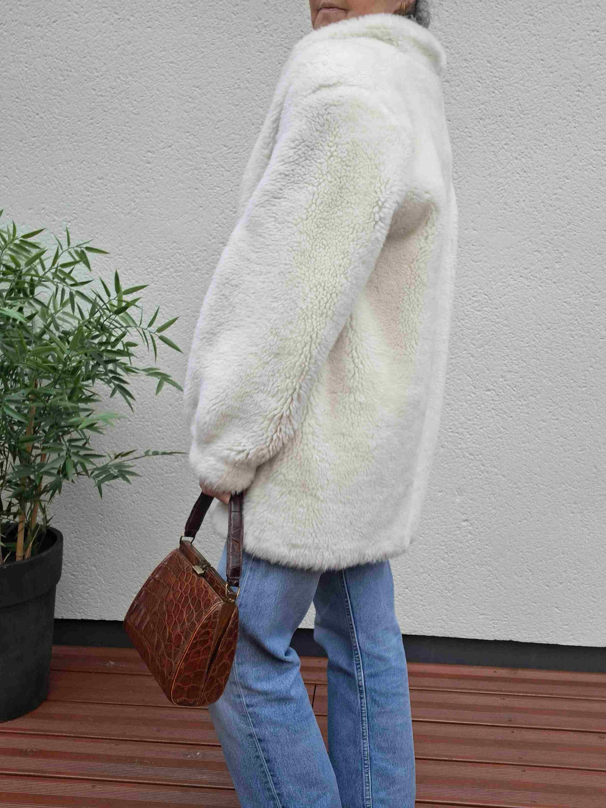 Manteau en fausse fourrure écrue