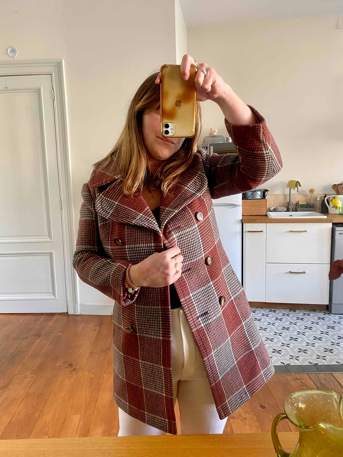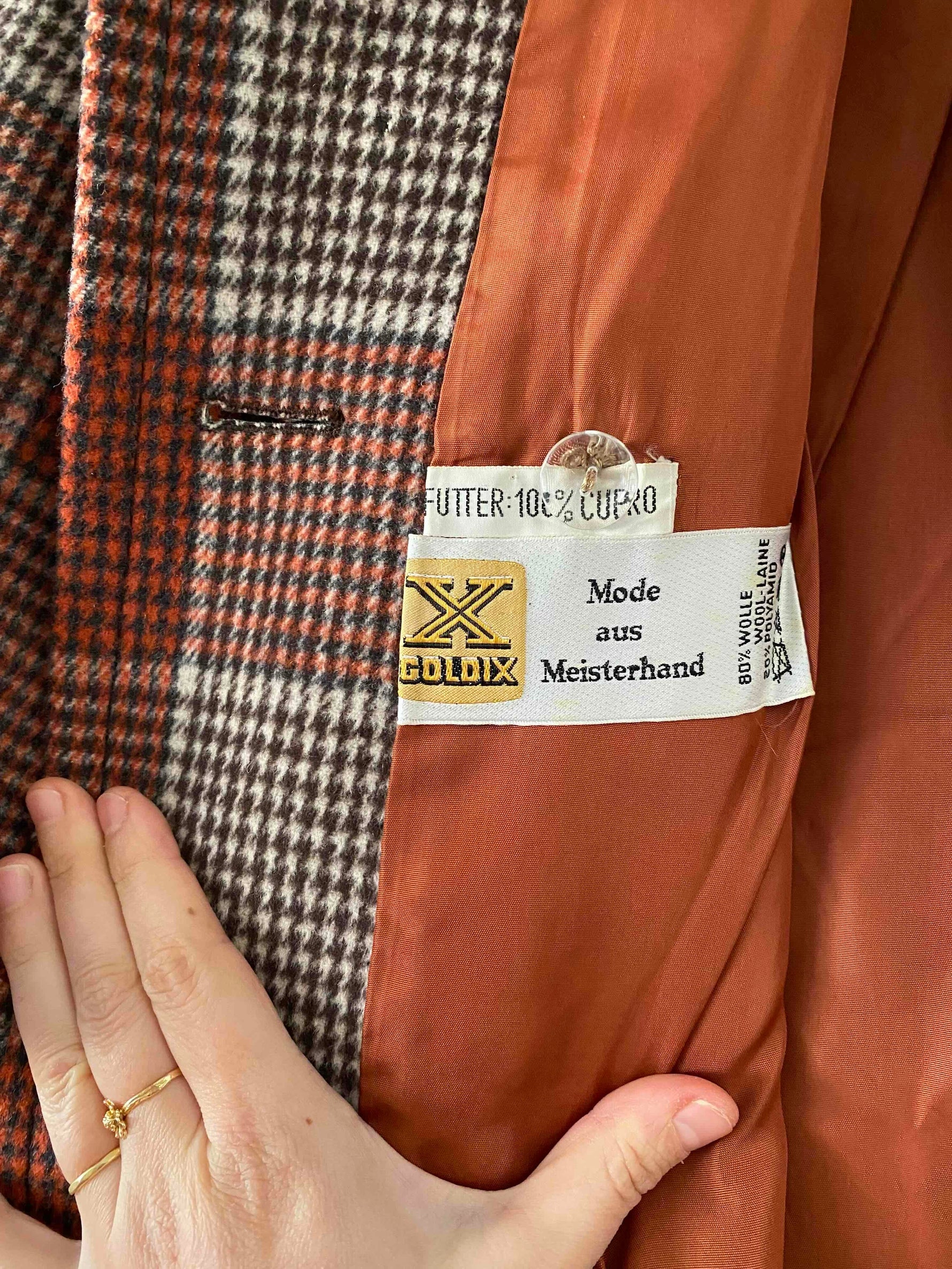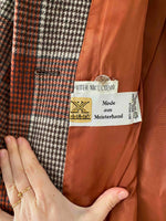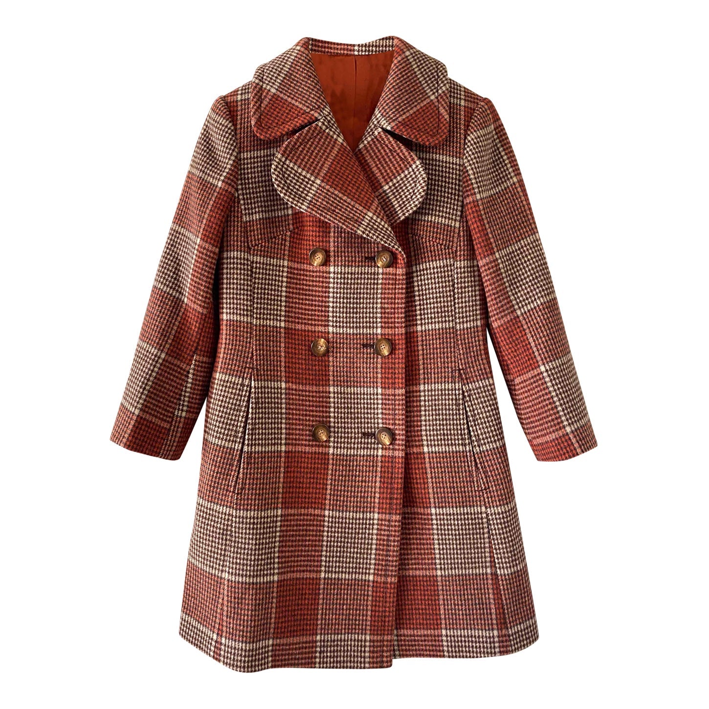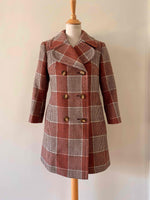 Prix unitaire parManteau en laine, 70’s, à carreaux, prince-de-Galles, terracotta. Chocolat et écrus, boutonnages croisé et grand col rond.