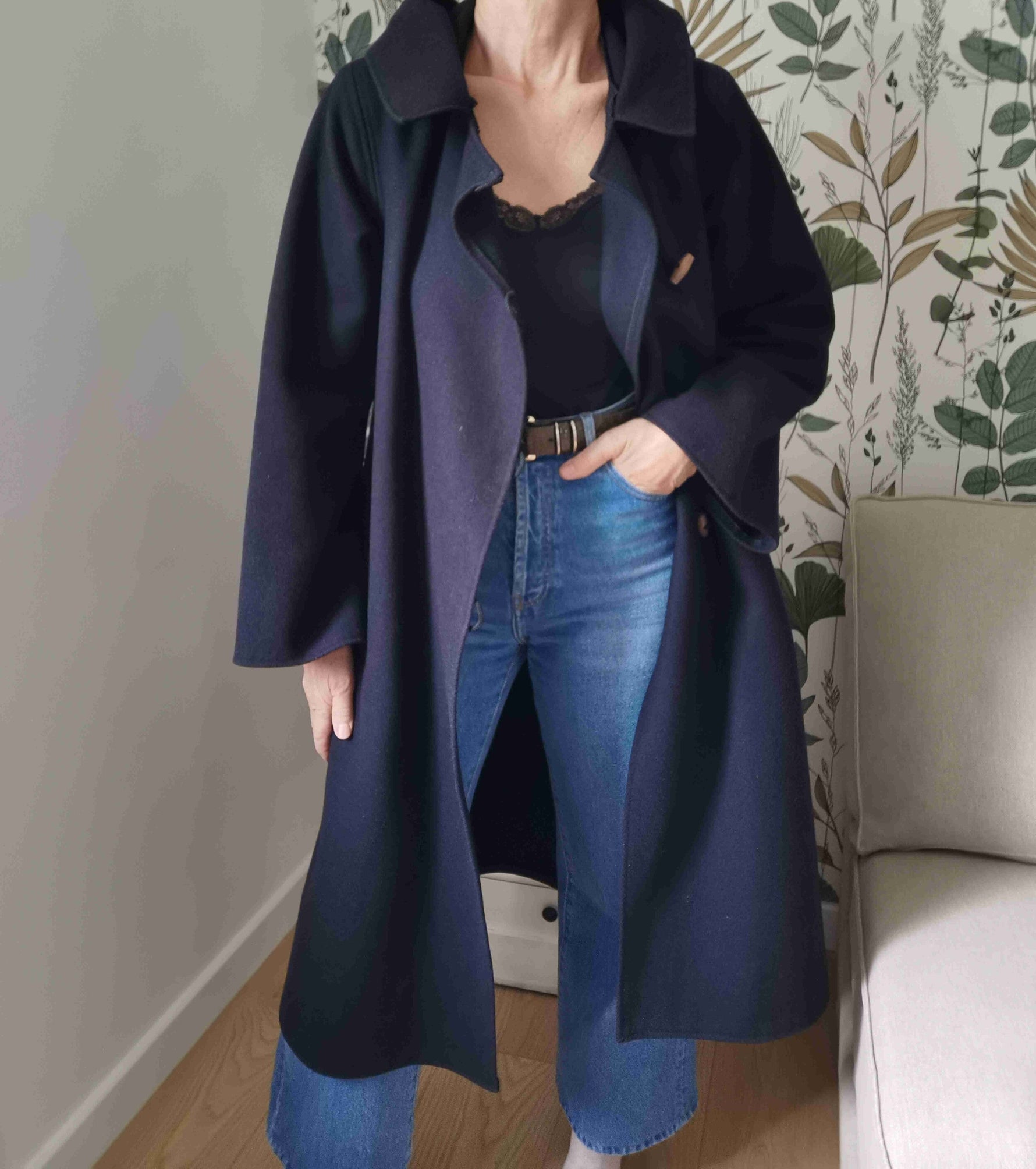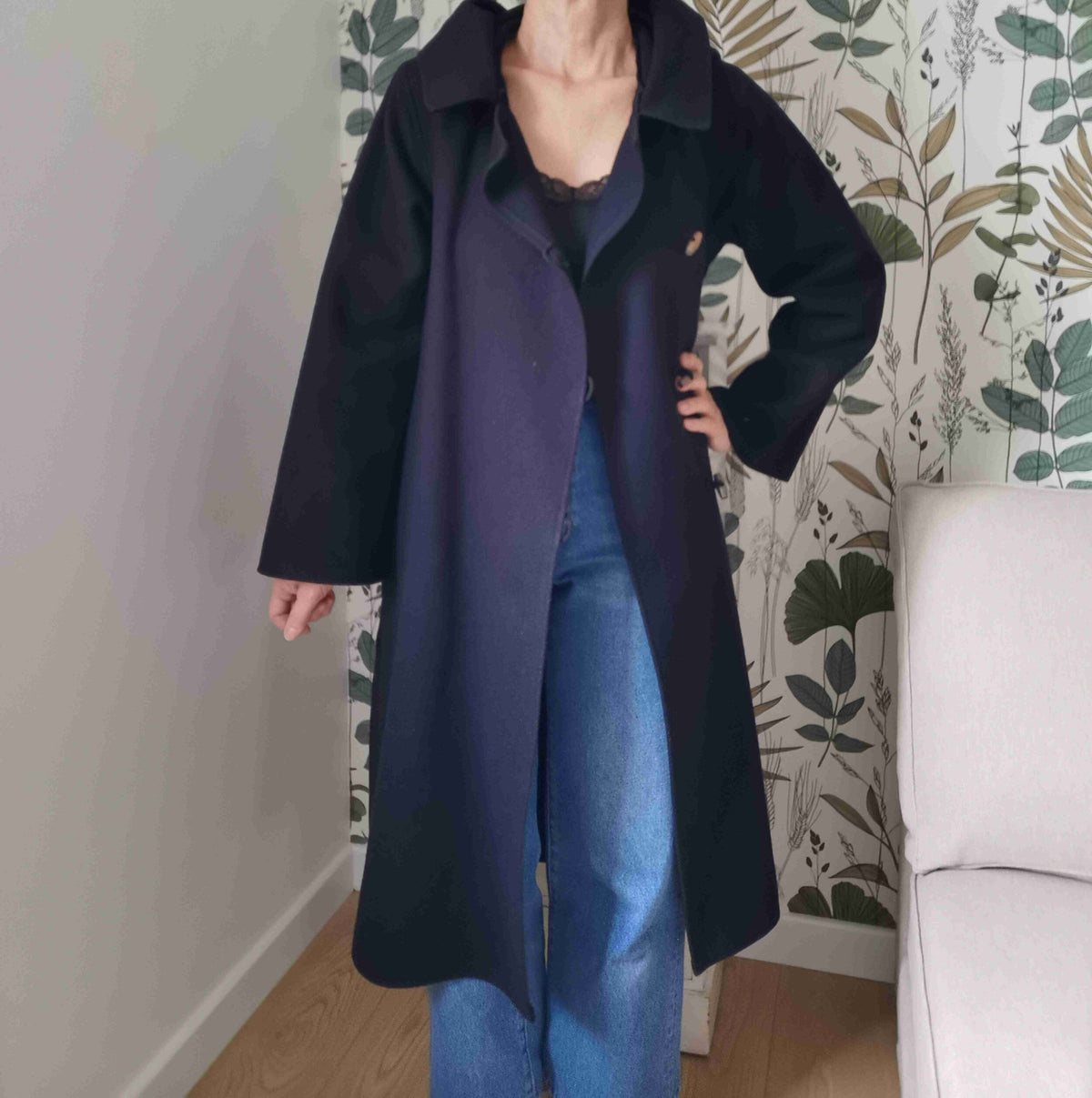 Prix unitaire parManteau long en drap de laine bleu marine Made in France