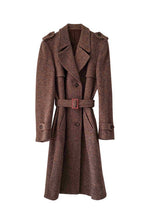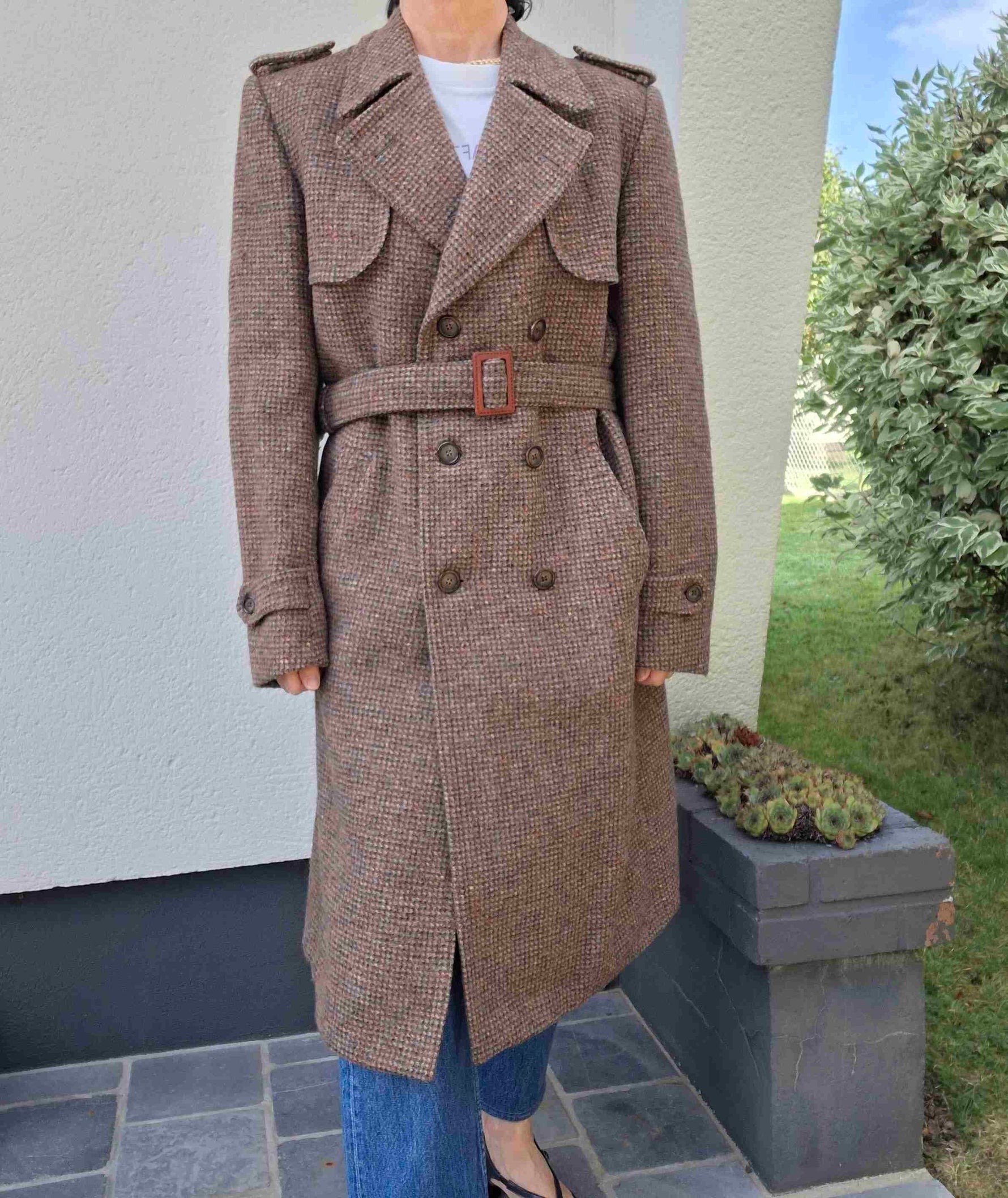 Forme longue avec boutons croisés et ceinturée avec sa ceinture assortie à boucler devant