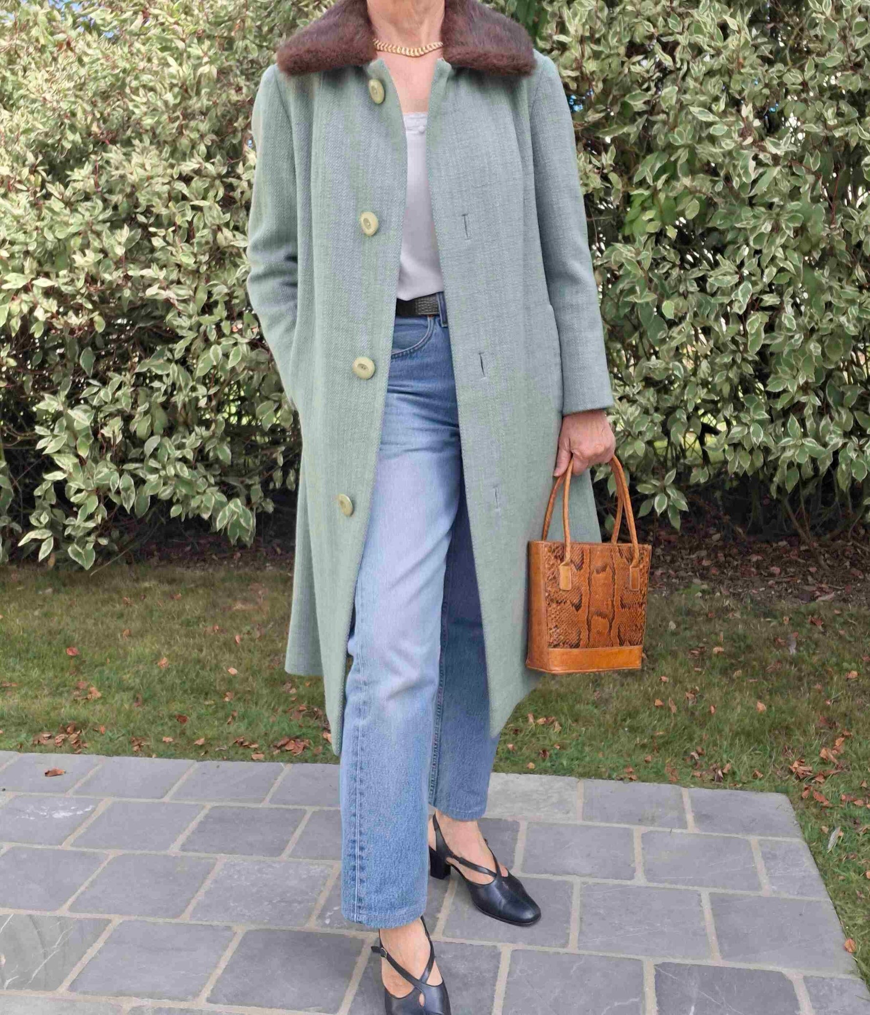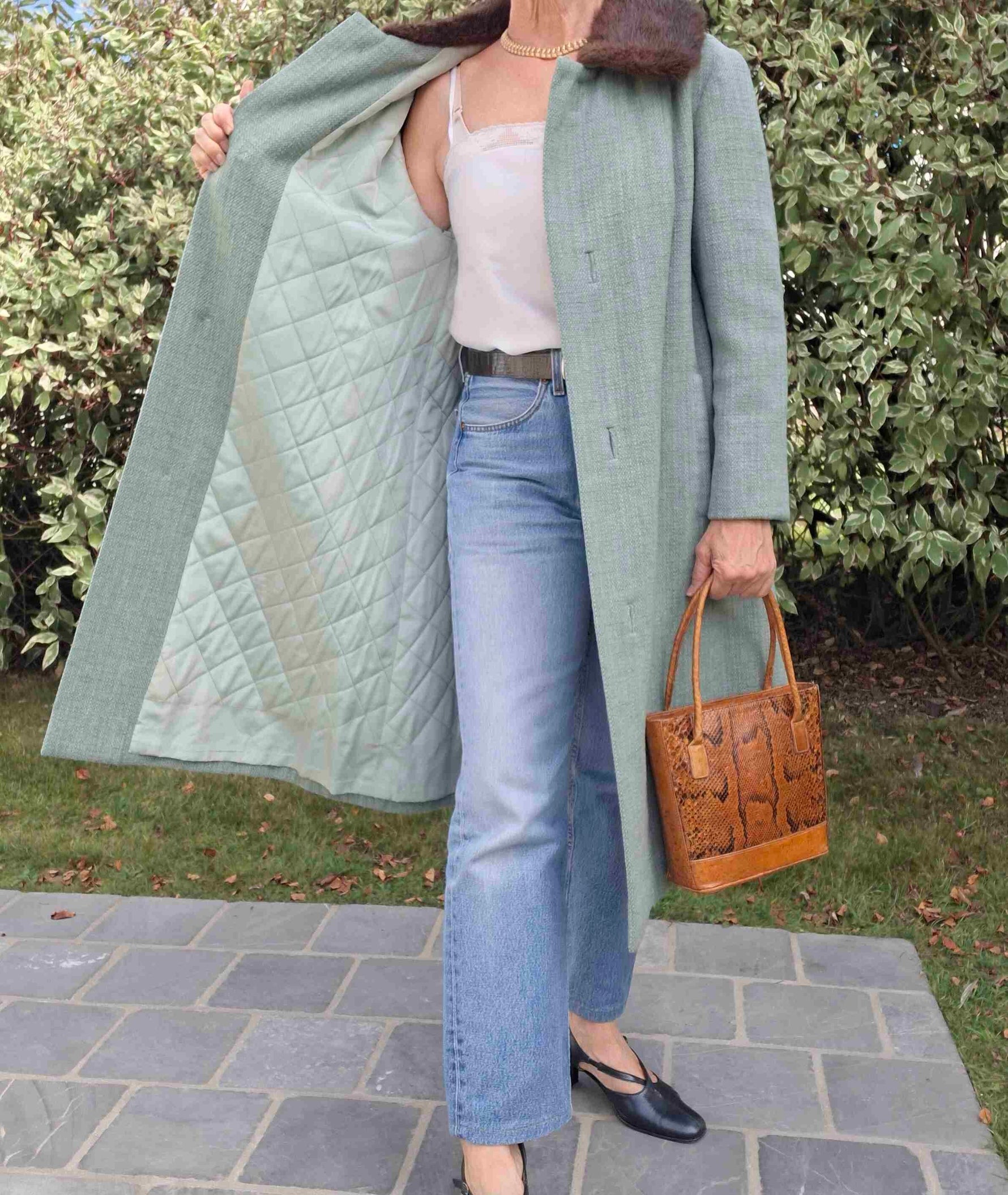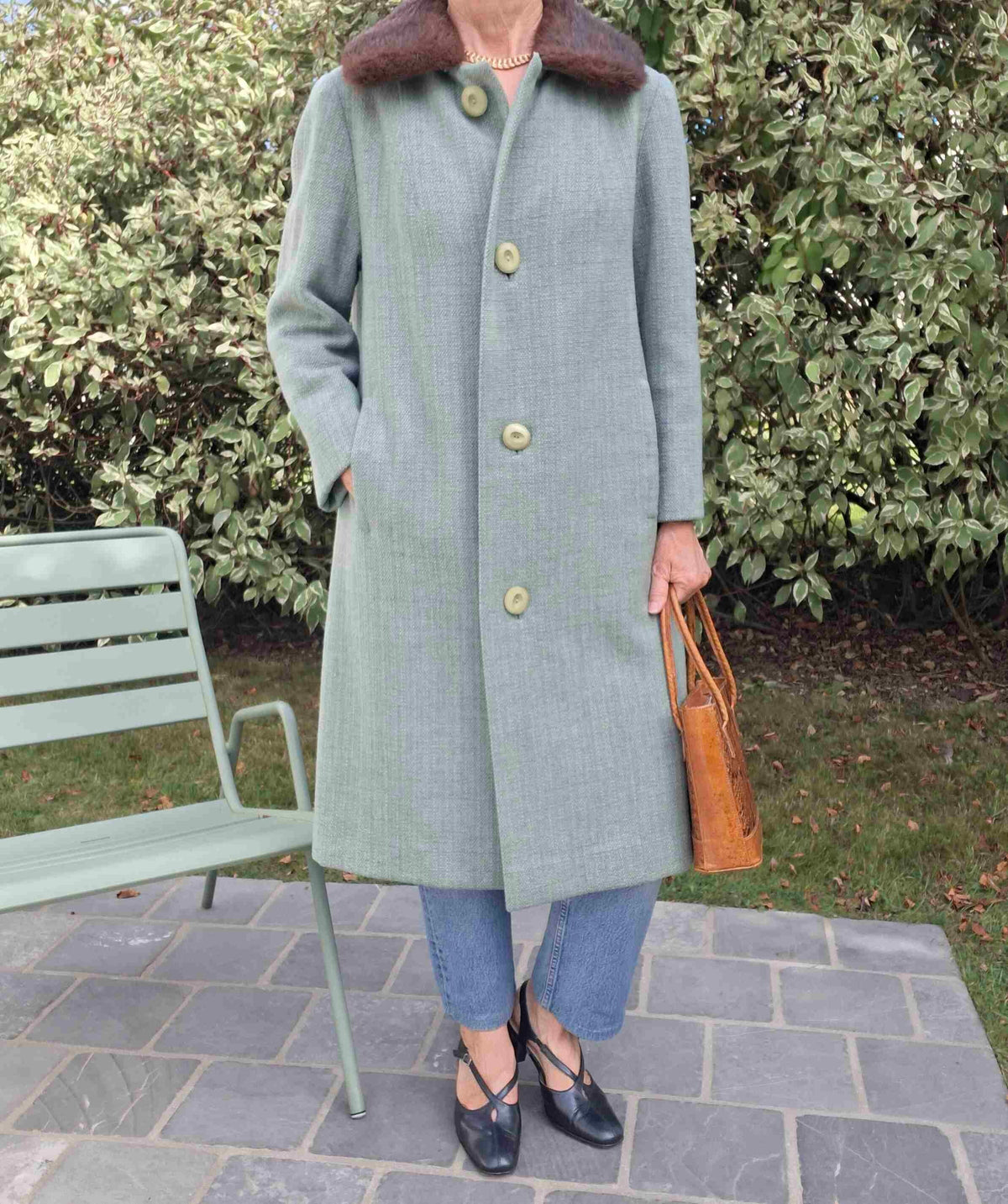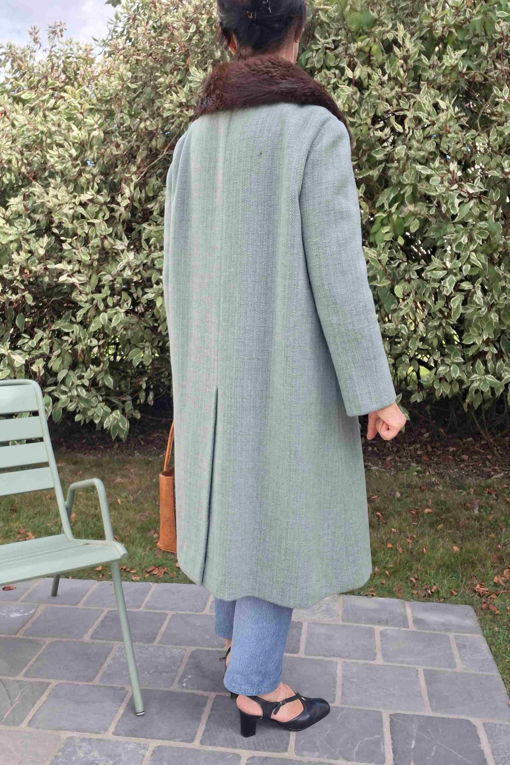 Prix unitaire parManteau en tweed de laine vert céladon vintage 60’s