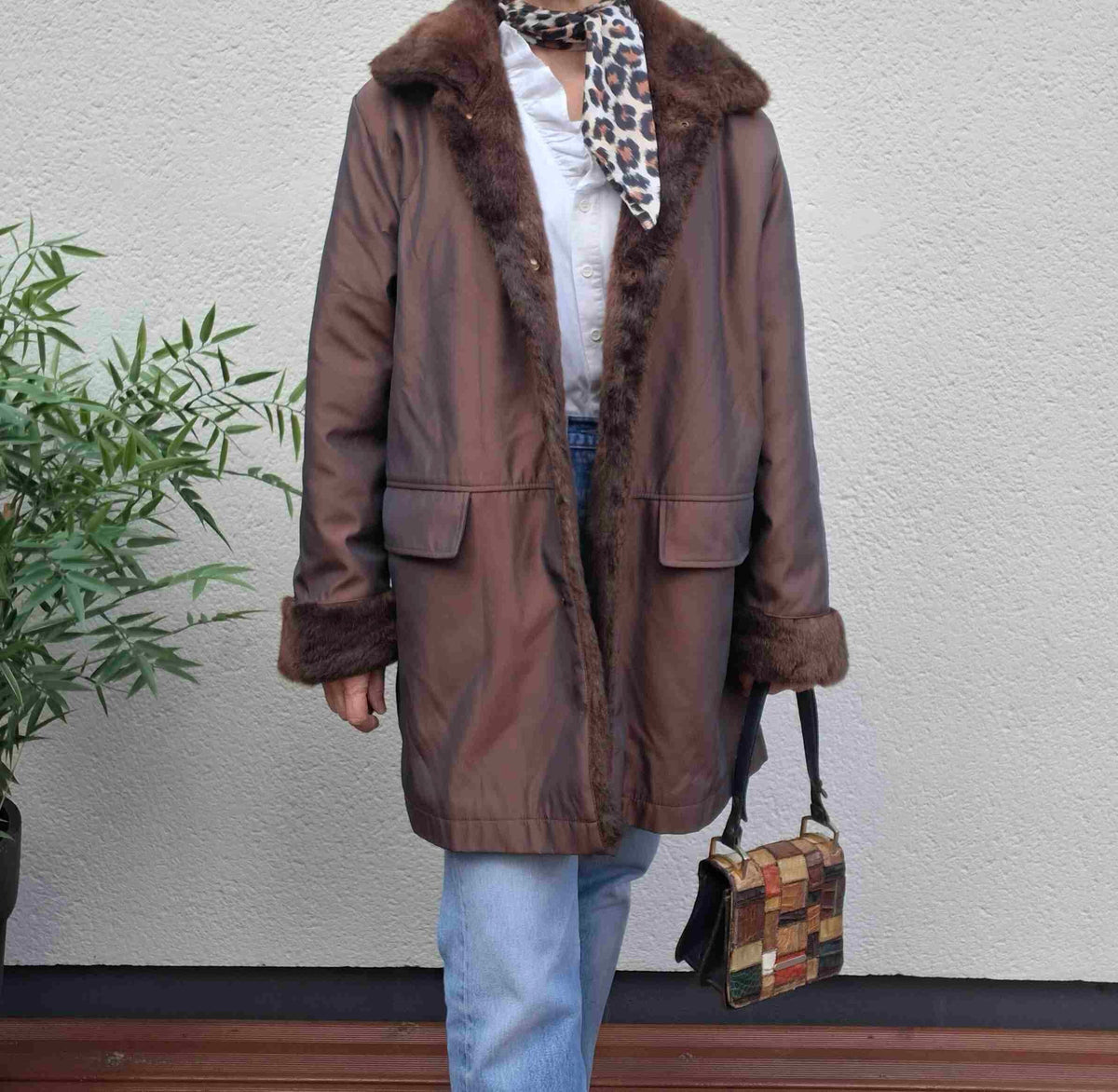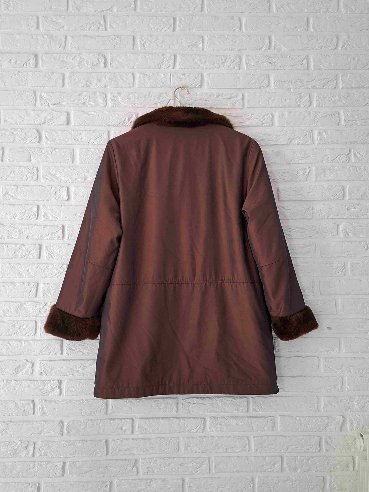 Prix unitaire parManteau réversible vintage 90's en fausse fourrure marron et en tissu déperlant cuivré