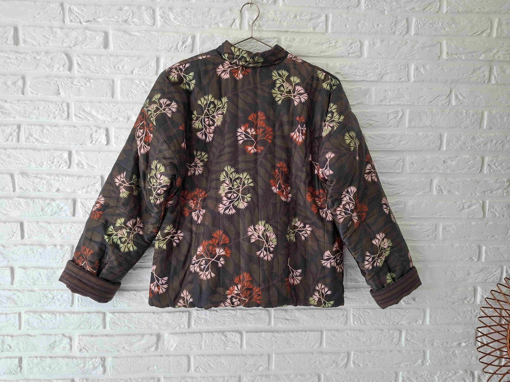 En coton et synthétique marron, kaki, rose,vert,orangé pour le motif floral