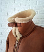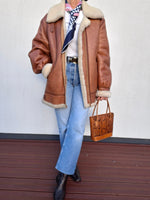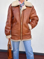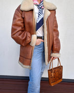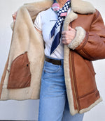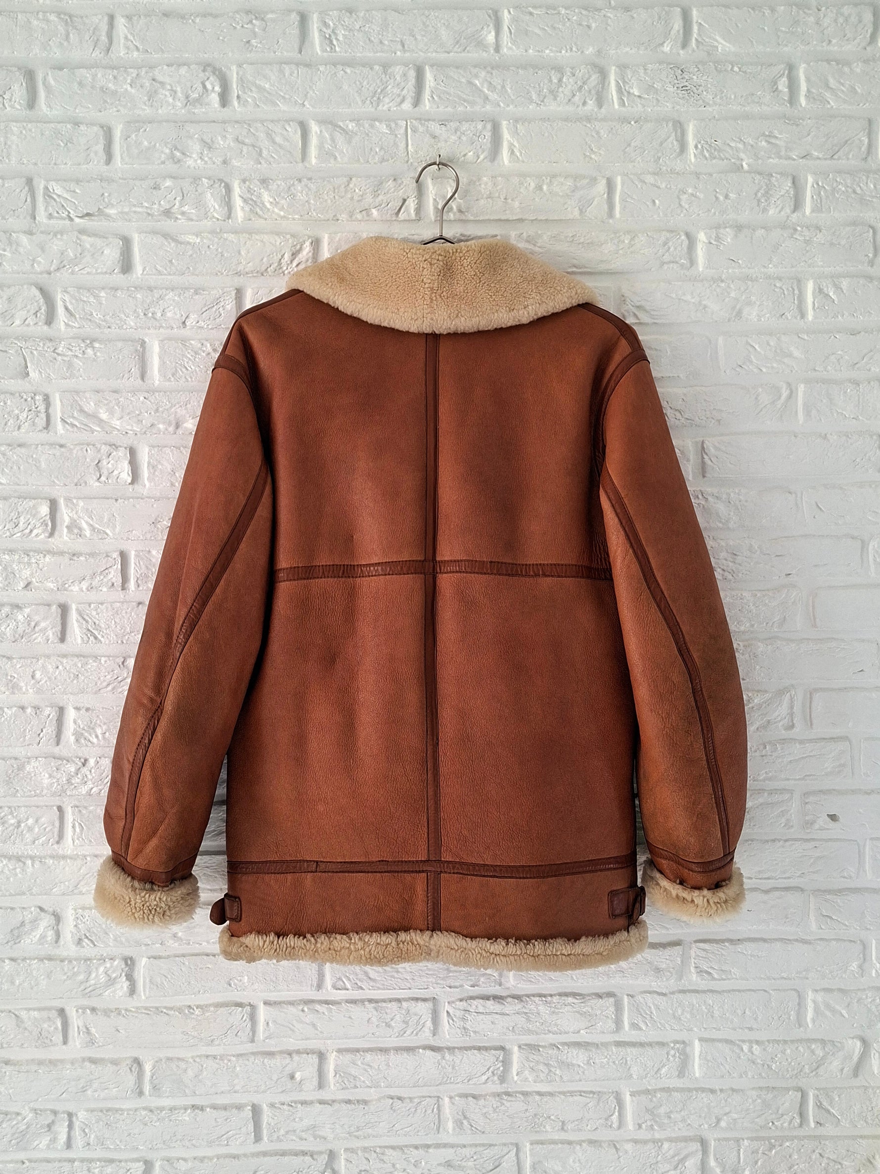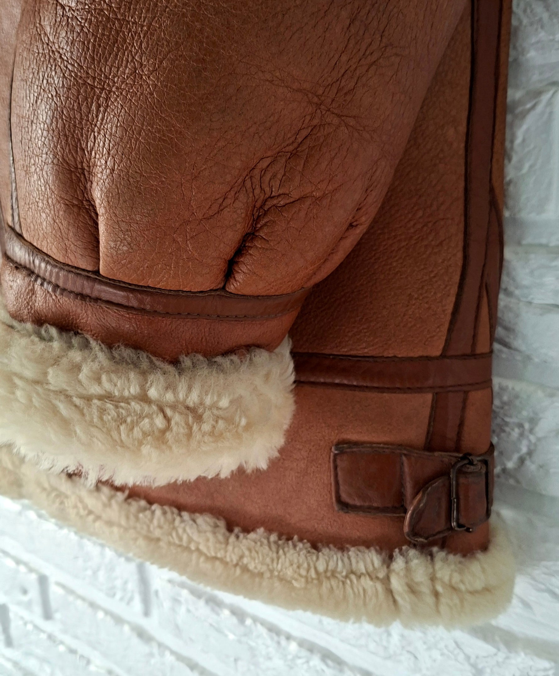 Prix unitaire parManteau Shearling en peau lainée. Extérieur en cuir caramel avec ganse ton sur ton.Intérieur en mouton écru.2 poches. Sangles sur les côtés. Le col se ferme avec une sangle de serrage. Fermeture zippée. Porté par Patricia qui fait une taille 40.Les mesures à plat : Épaules 50cm.Aisselles55cm.Longueur 75cm.