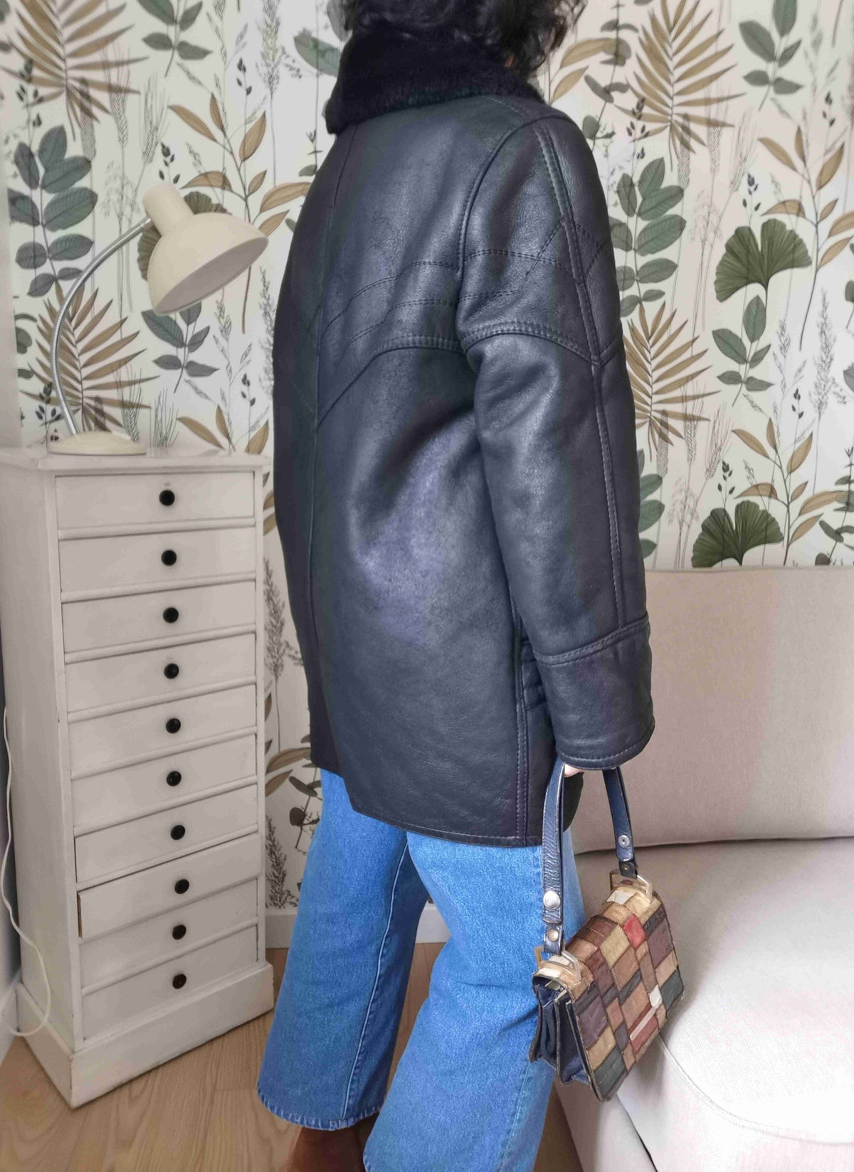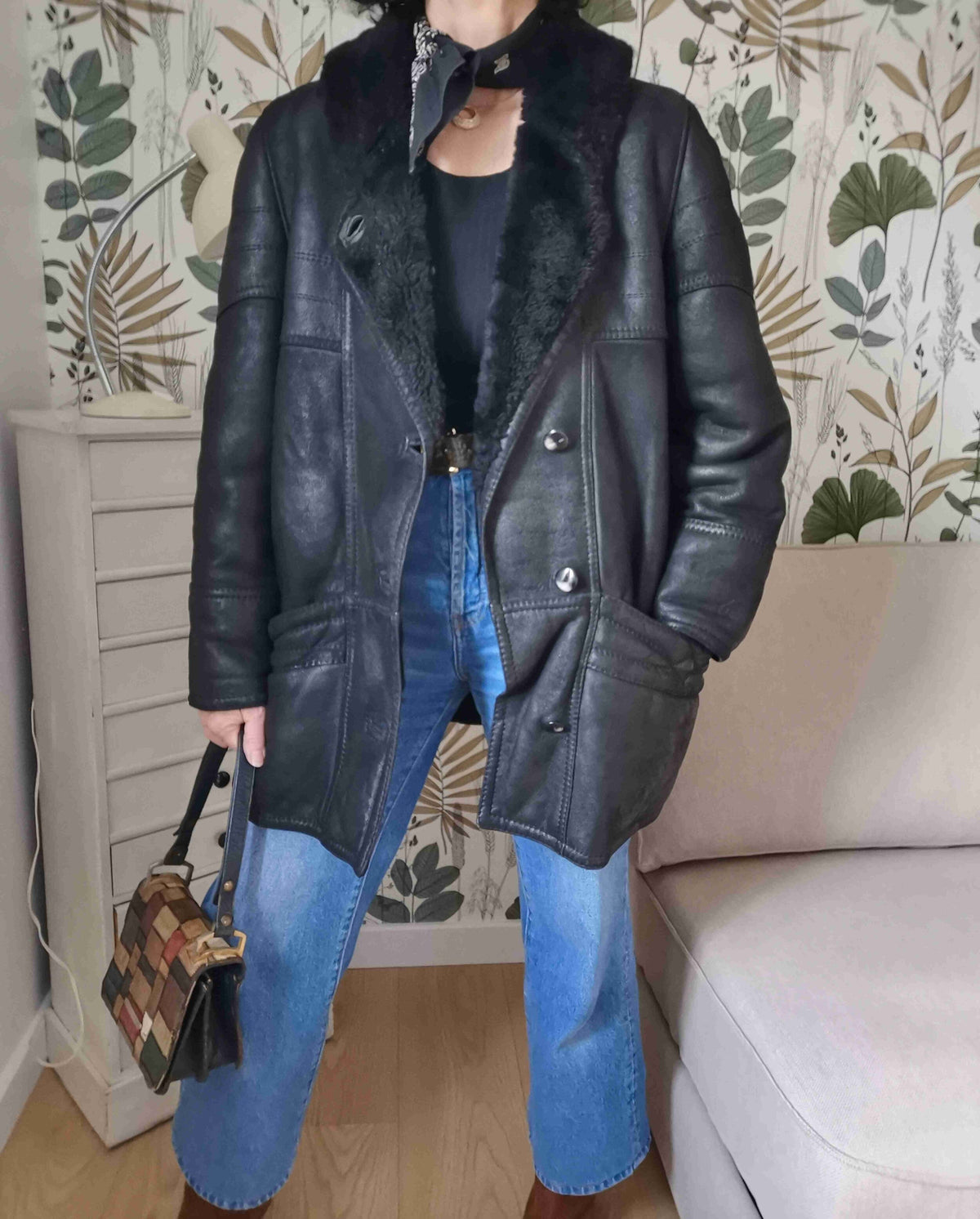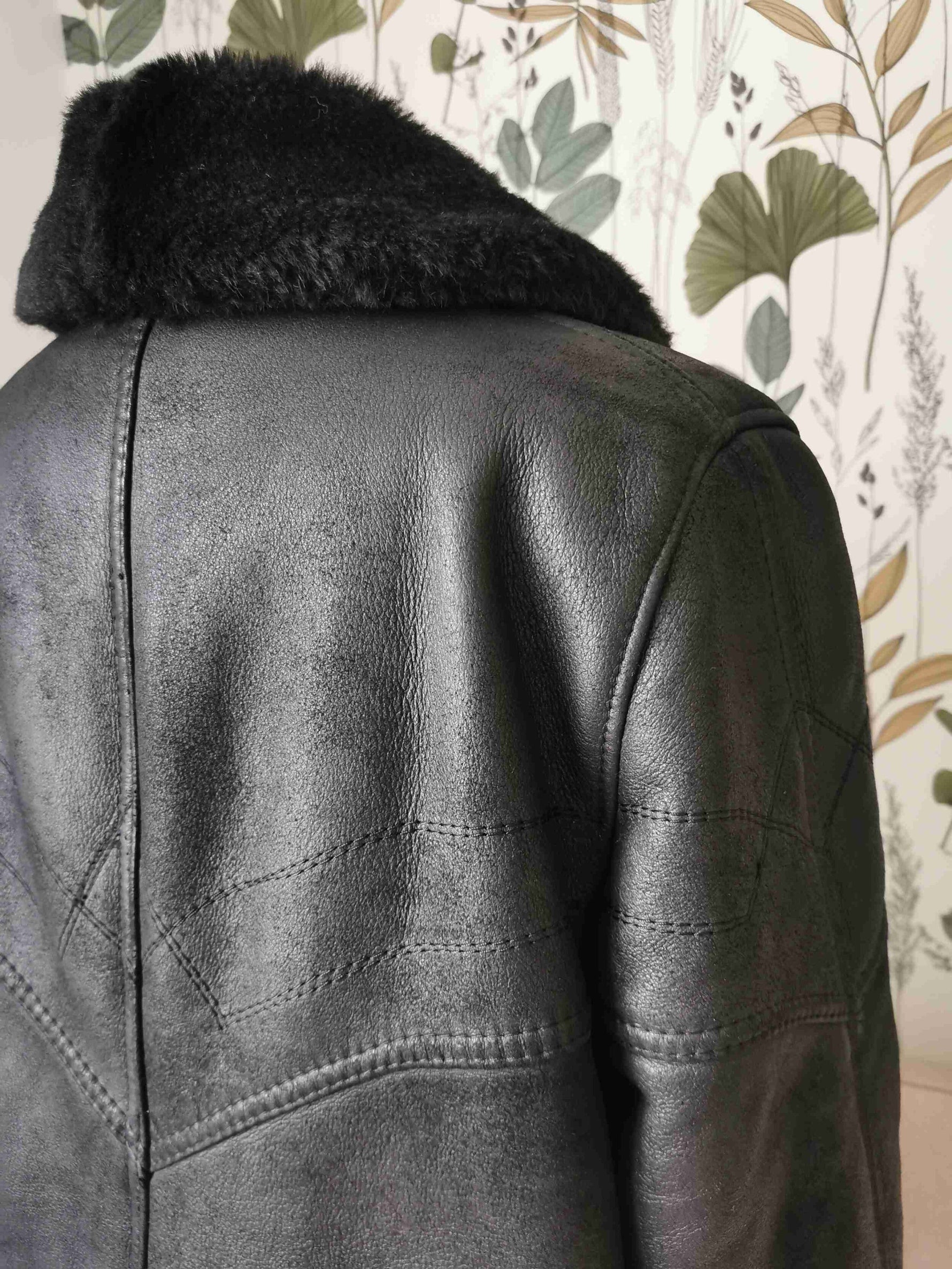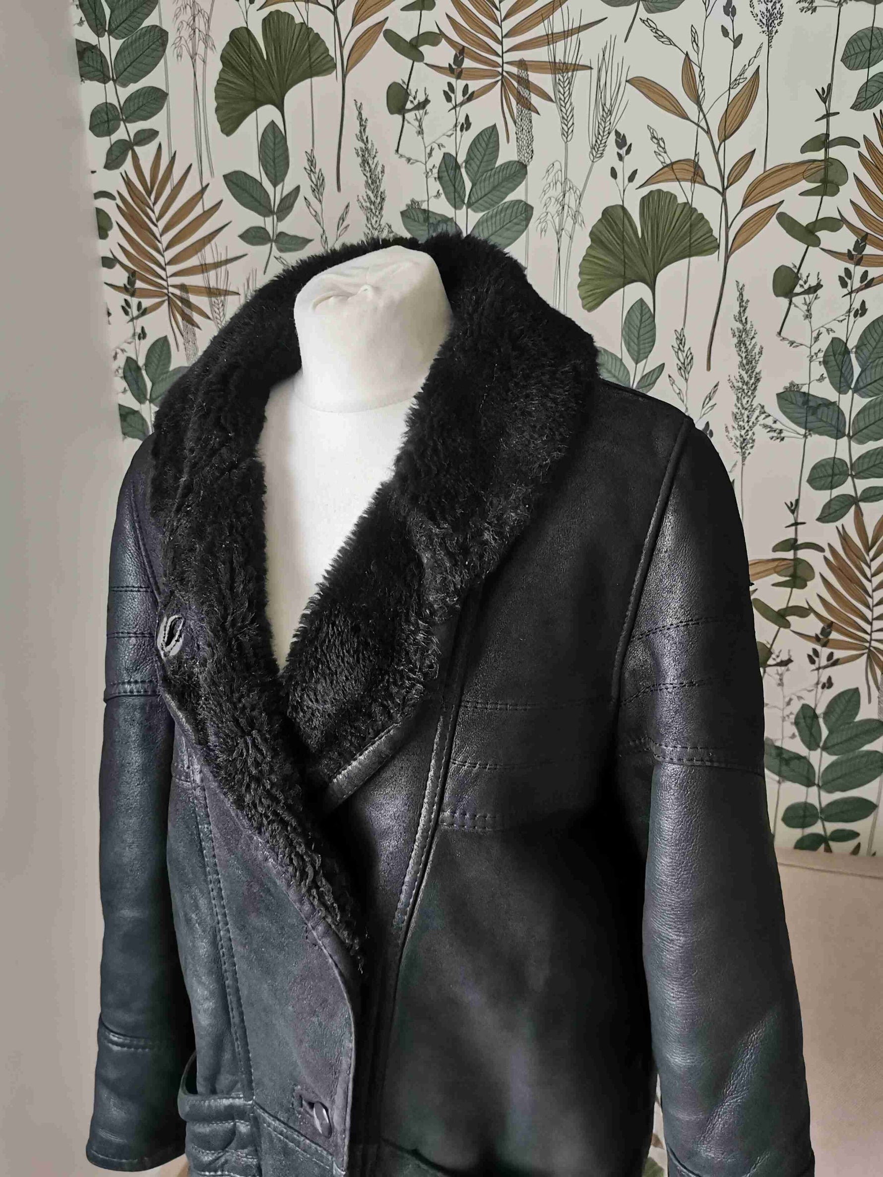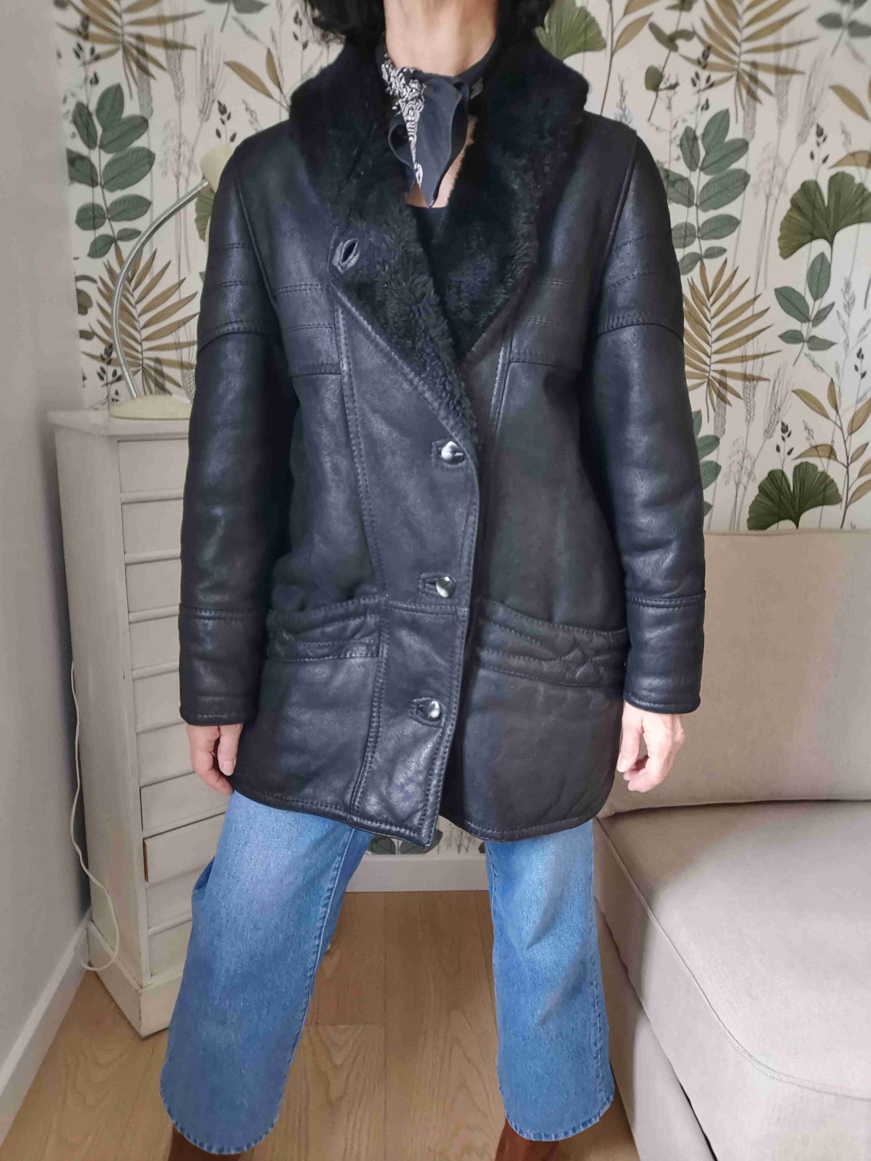 Shearling est bel état porté par Patricia et le mannequin qui font une taille 40