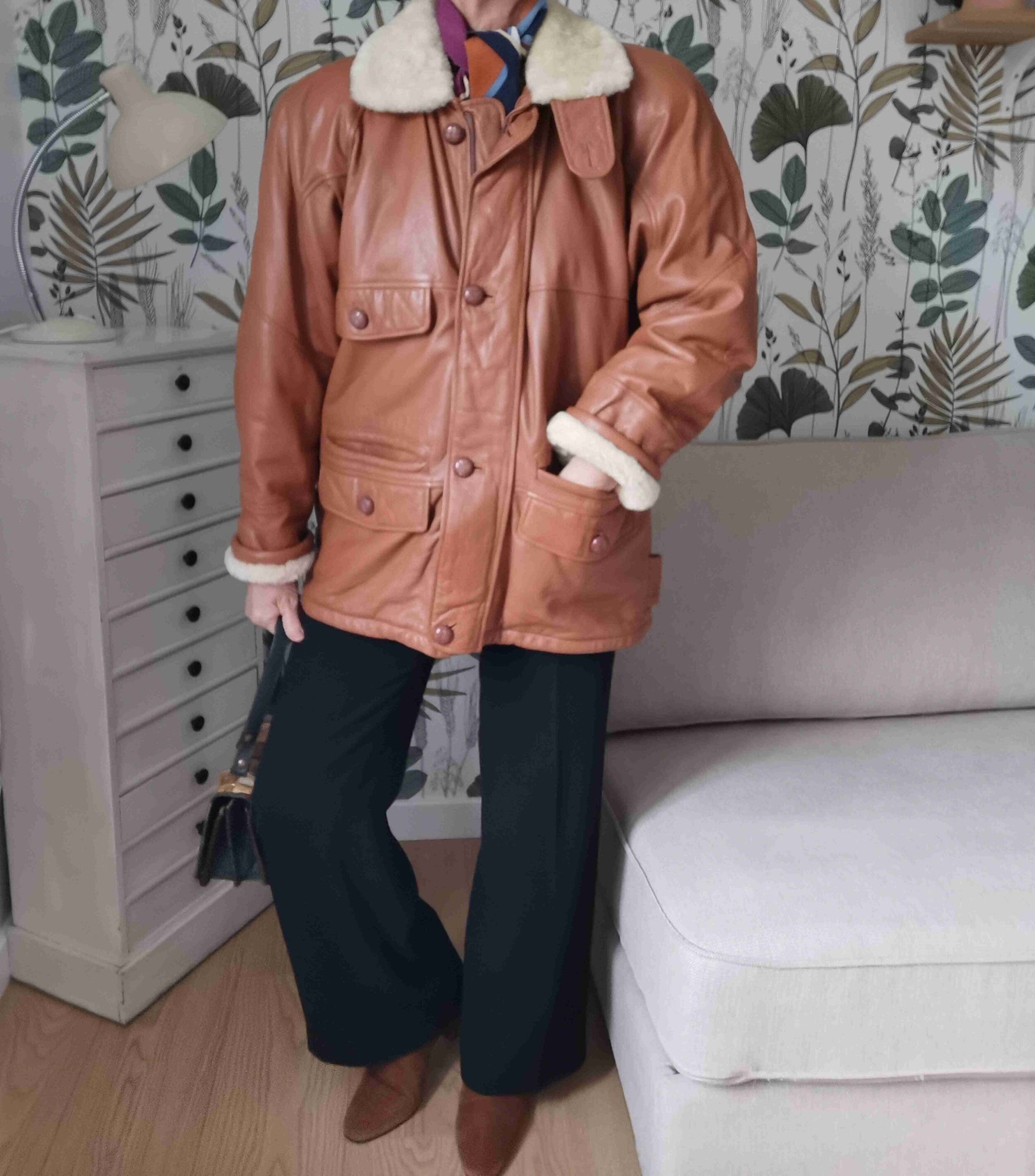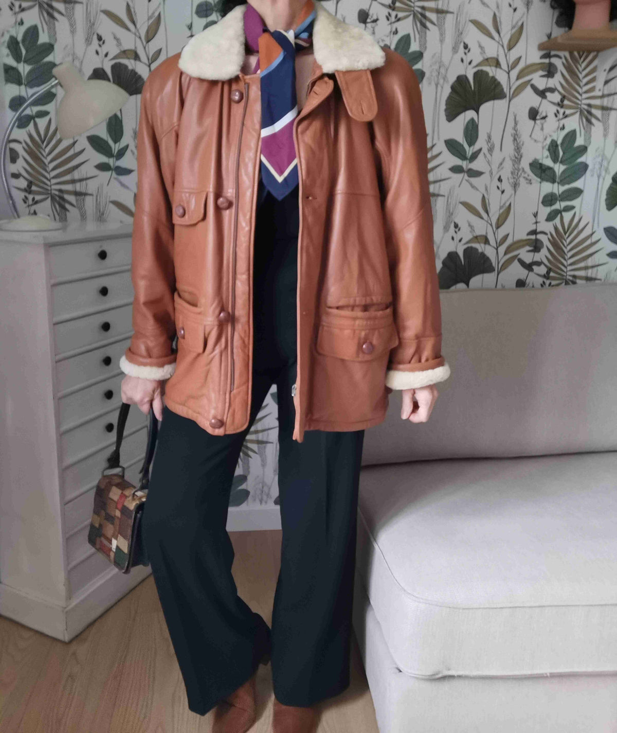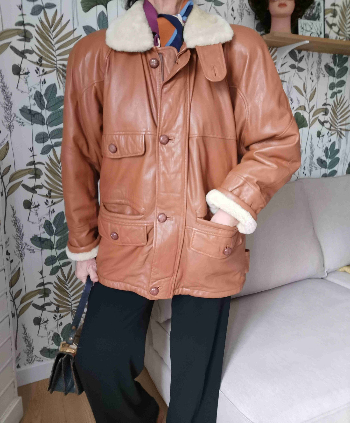 Prix unitaire parManteau en cuir et mouton Vintage 80's Made in Italy