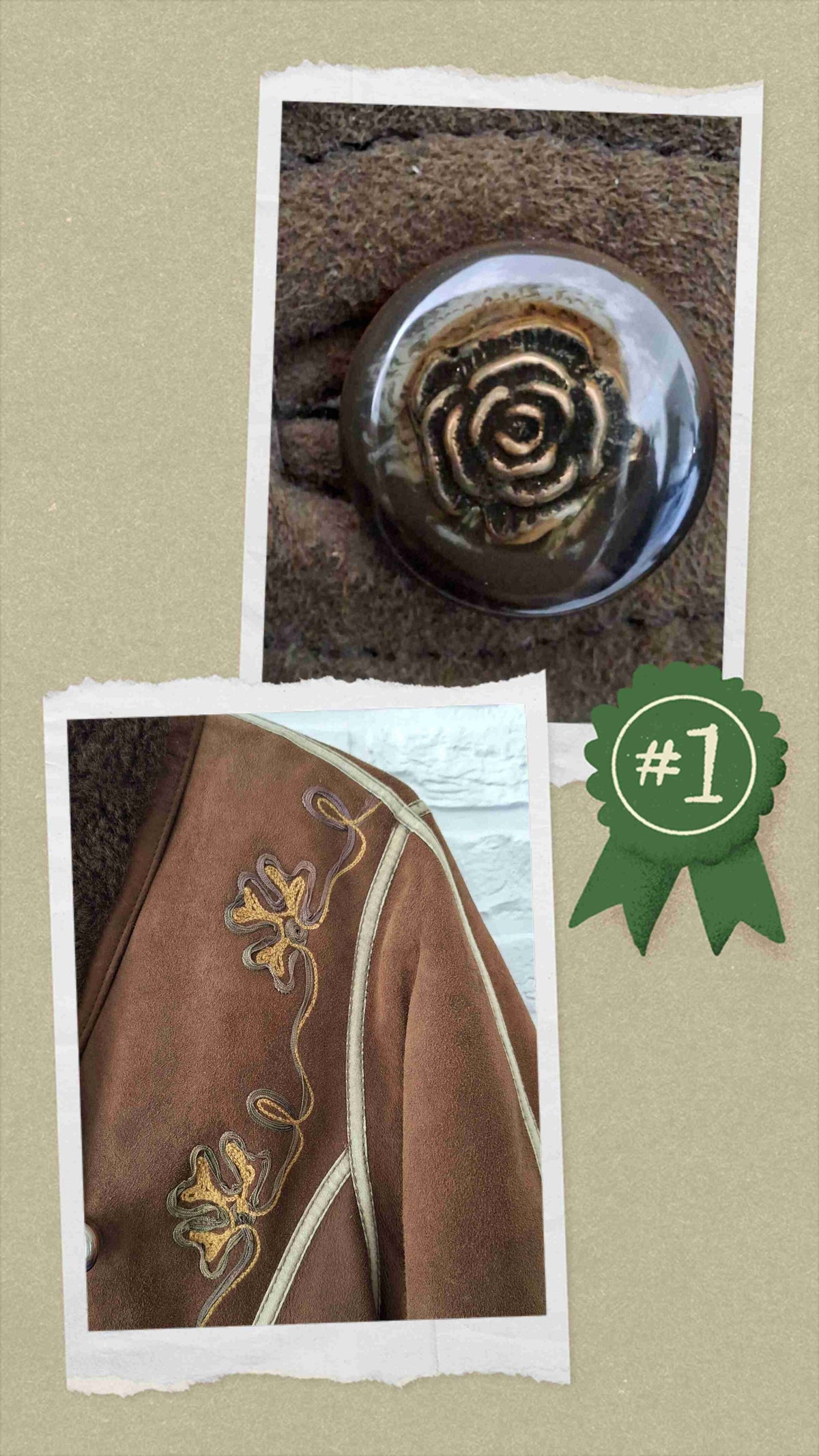 Extérieur en daim couleur moka brodé de fleurs safran et brun et gansé beige