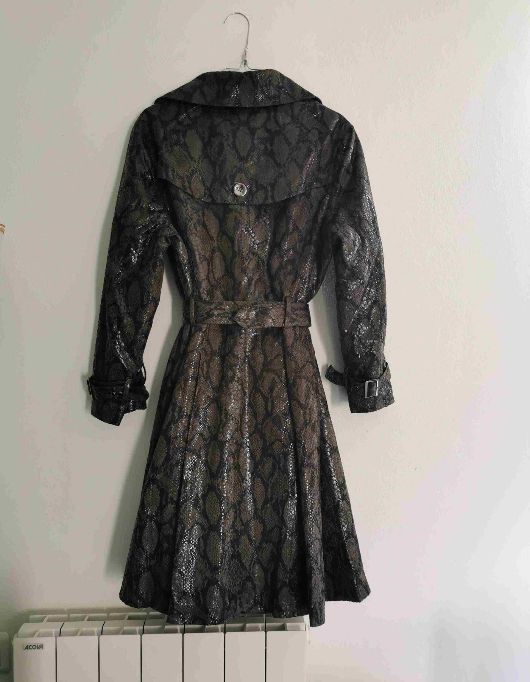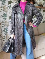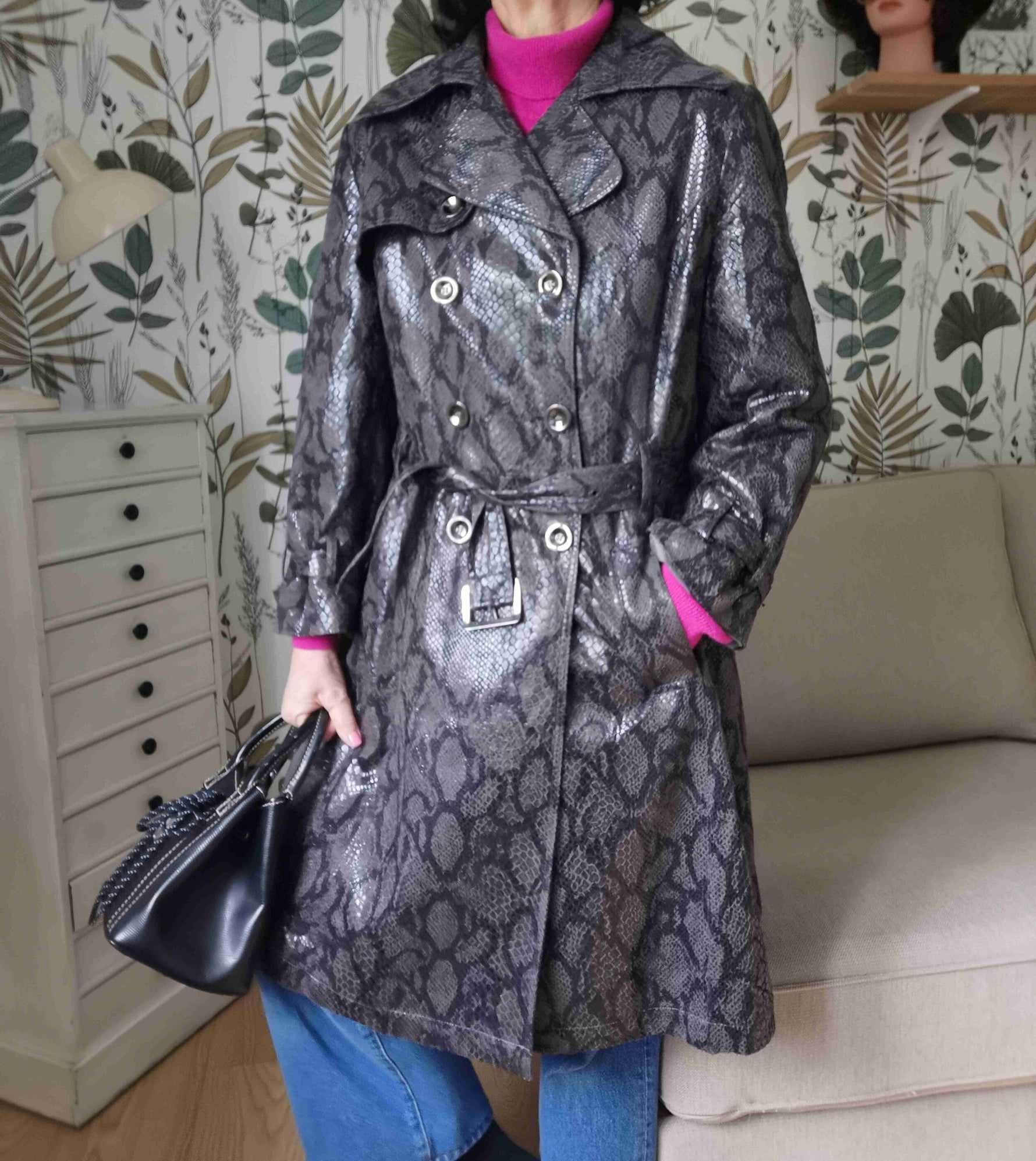 Prix unitaire parTrench en coton enduit imprimé reptile gris foncé plus ou moins nuancé