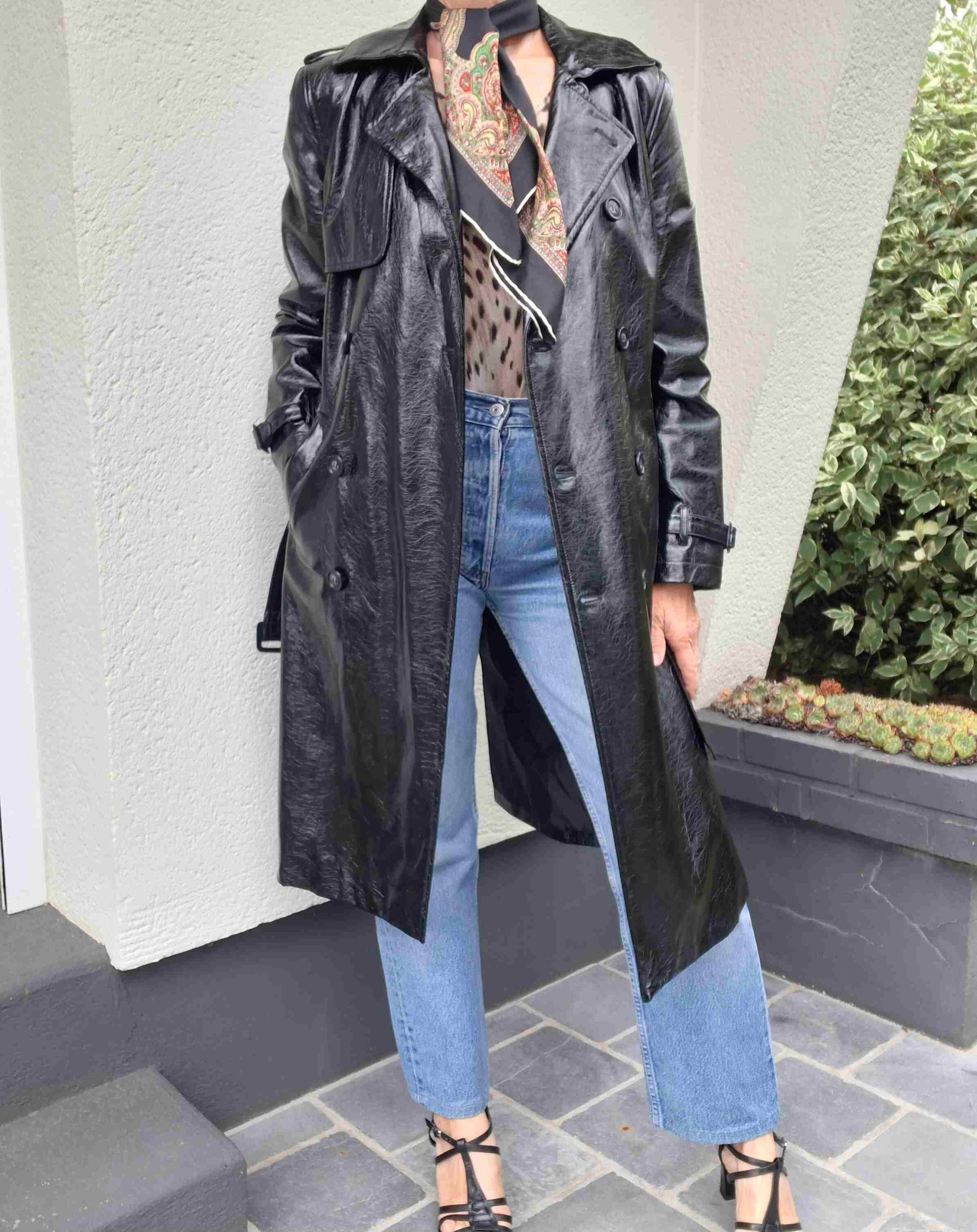 Prix unitaire parTrench en vinyl noir brillant vintage 90's