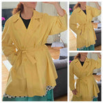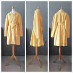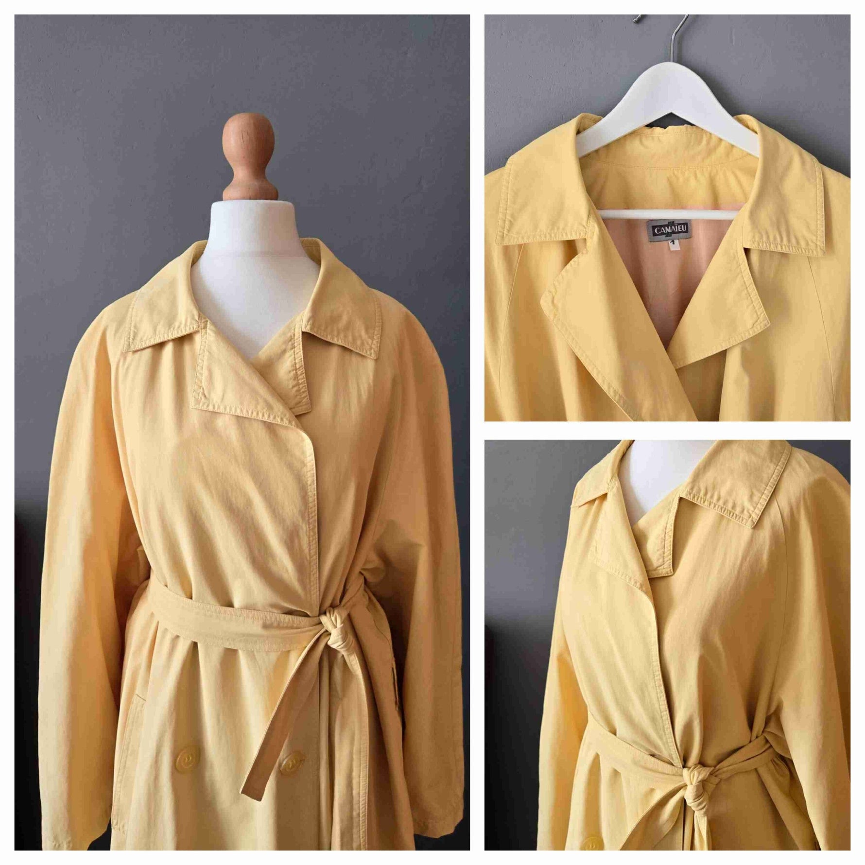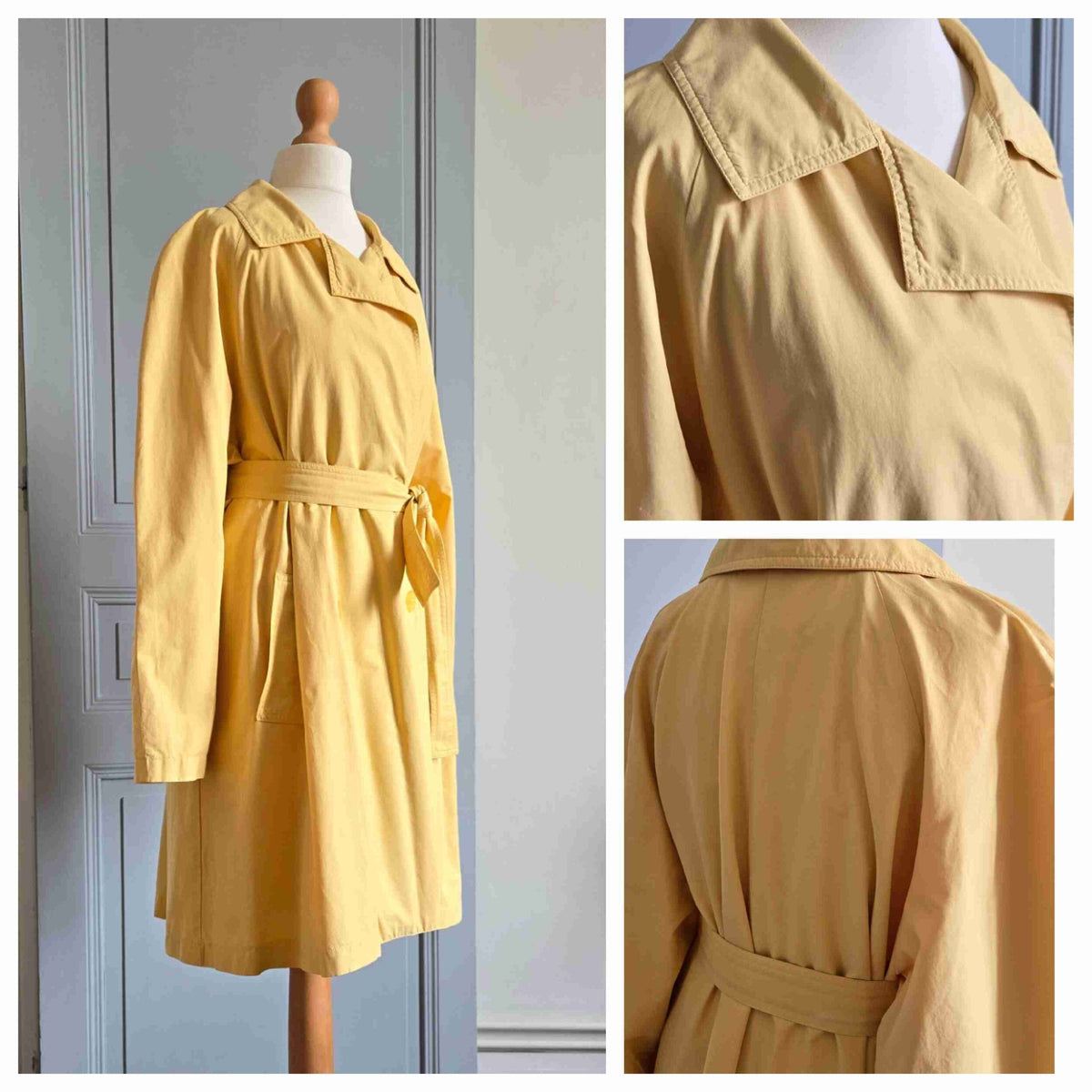Prix unitaire parTrench mi-long en coton mélangé jaune poussin, manches raglan, boutonnage croisé, doublé, passants avec ceinture à nouer, 2 poches côtés. Porté sur les photos par une personne T36.