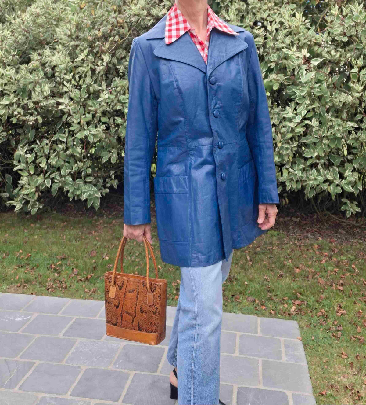 Prix unitaire parTrench en cuir bleu vintage 90's