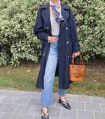 Trench en excellent état porté par Patricia et le mannequin qui font une taille 40