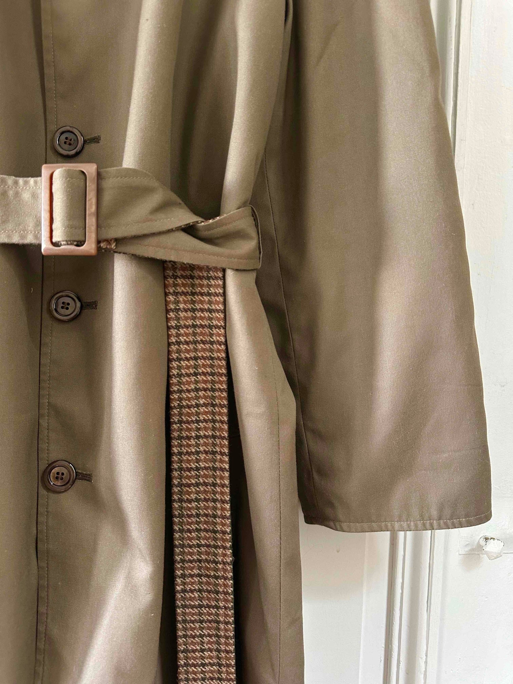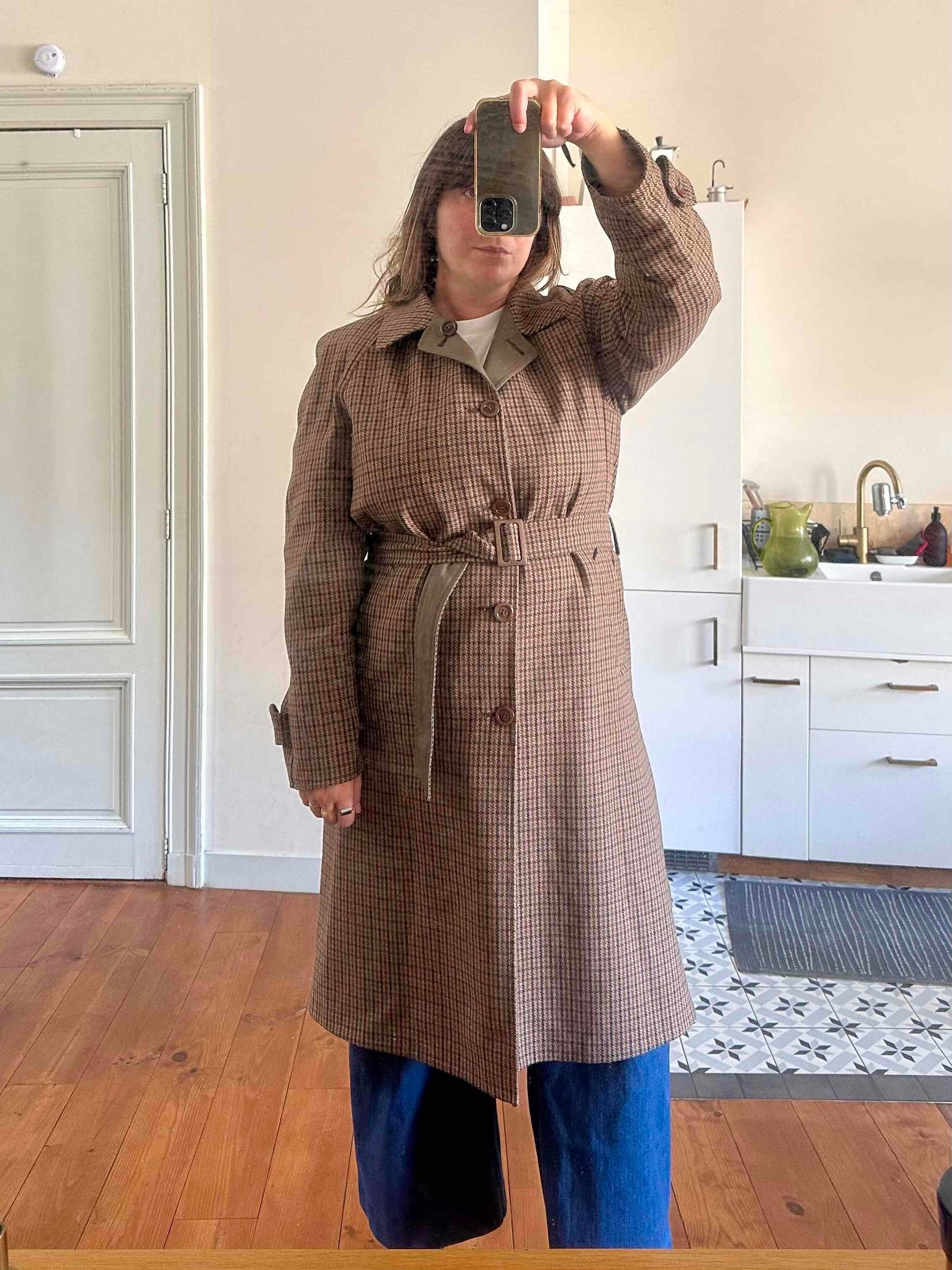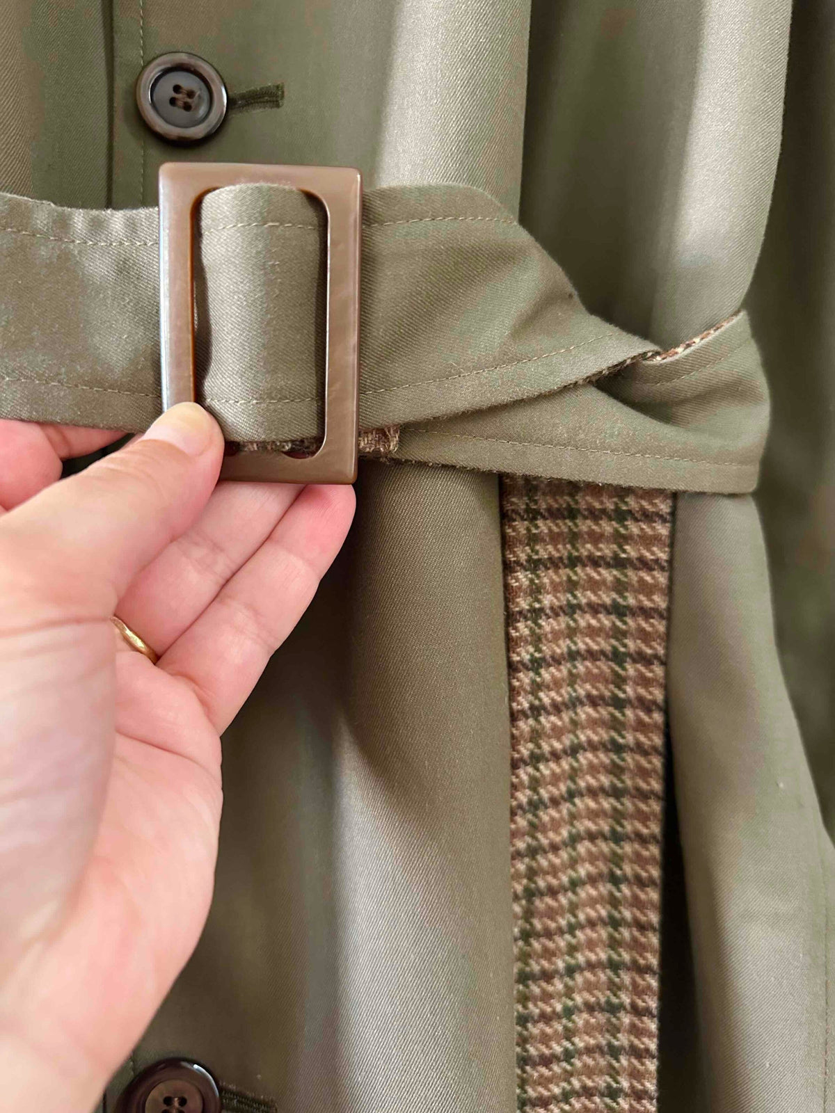 Prix unitaire parTrench réversible en laine, gabardine vert kaki réversible en laine à carreaux pied de puce couleurs verts, caramel, beige.