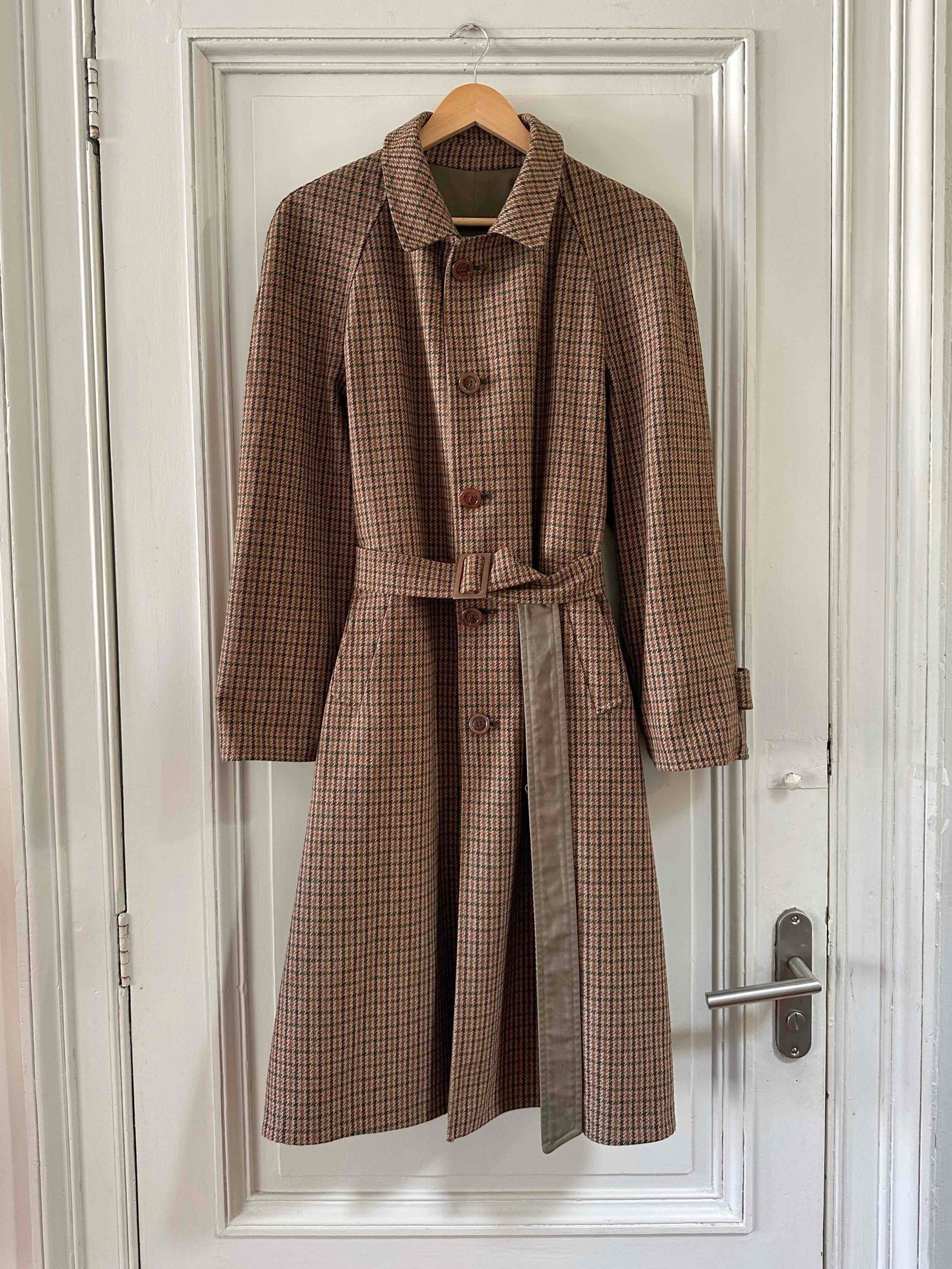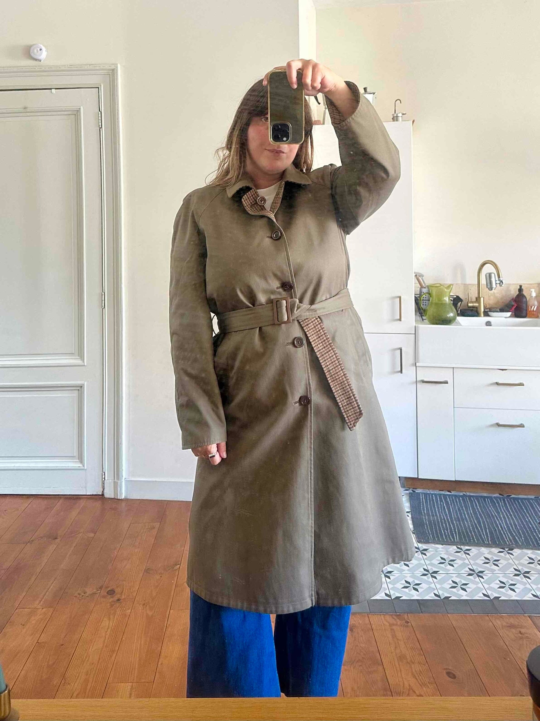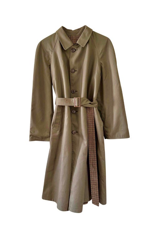 Prix unitaire parTrench réversible en laine, gabardine vert kaki réversible en laine à carreaux pied de puce couleurs verts, caramel, beige.