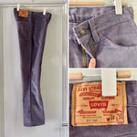 Prix unitaire parFlare en velours côtelé Levi’s W28 L30 gris violet lilas, Made in USA, années 80’s