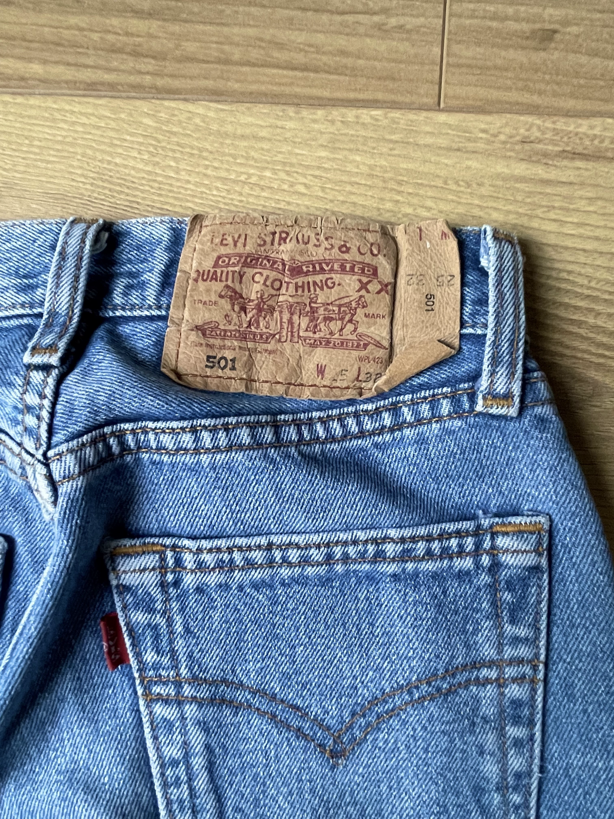 Jean Levi's 501 vintage 25W 32L d'une qualité premium. Les ourlets sont d’origine. Largeur des hanches : 37cm ; Longueur : 97cm ; Longueur entrejambe : 75cm ; Taille : 32cm Etat : très bon état Couleur : bleu Matière : 100% coton Le colis est emballé et envoyé avec soin.