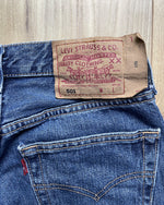 Prix unitaire parJean Levi's 501 vintage 28W 30L d'une qualité premium. Les ourlets sont d’origine. Largeur des hanches : 44cm ; Longueur : 96cm ; Longueur entrejambe : 72cm ; Taille : 36,5cm Etat : très bon état Couleur : bleu Matière : 100% coton Défauts : petite tâche (voir photo) Le colis est emballé et envoyé avec soin