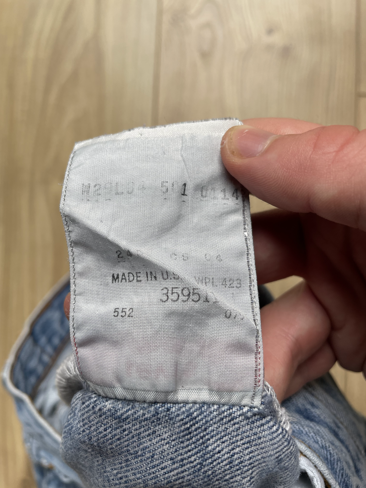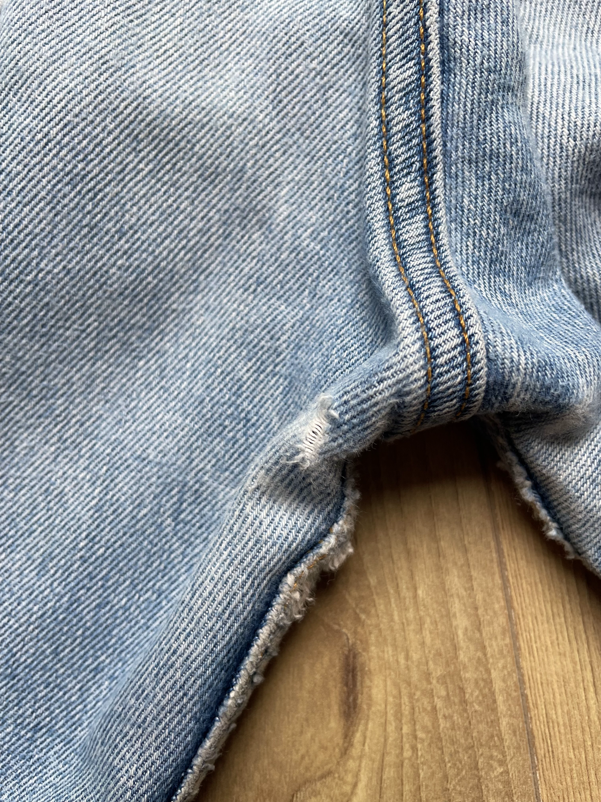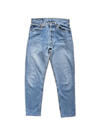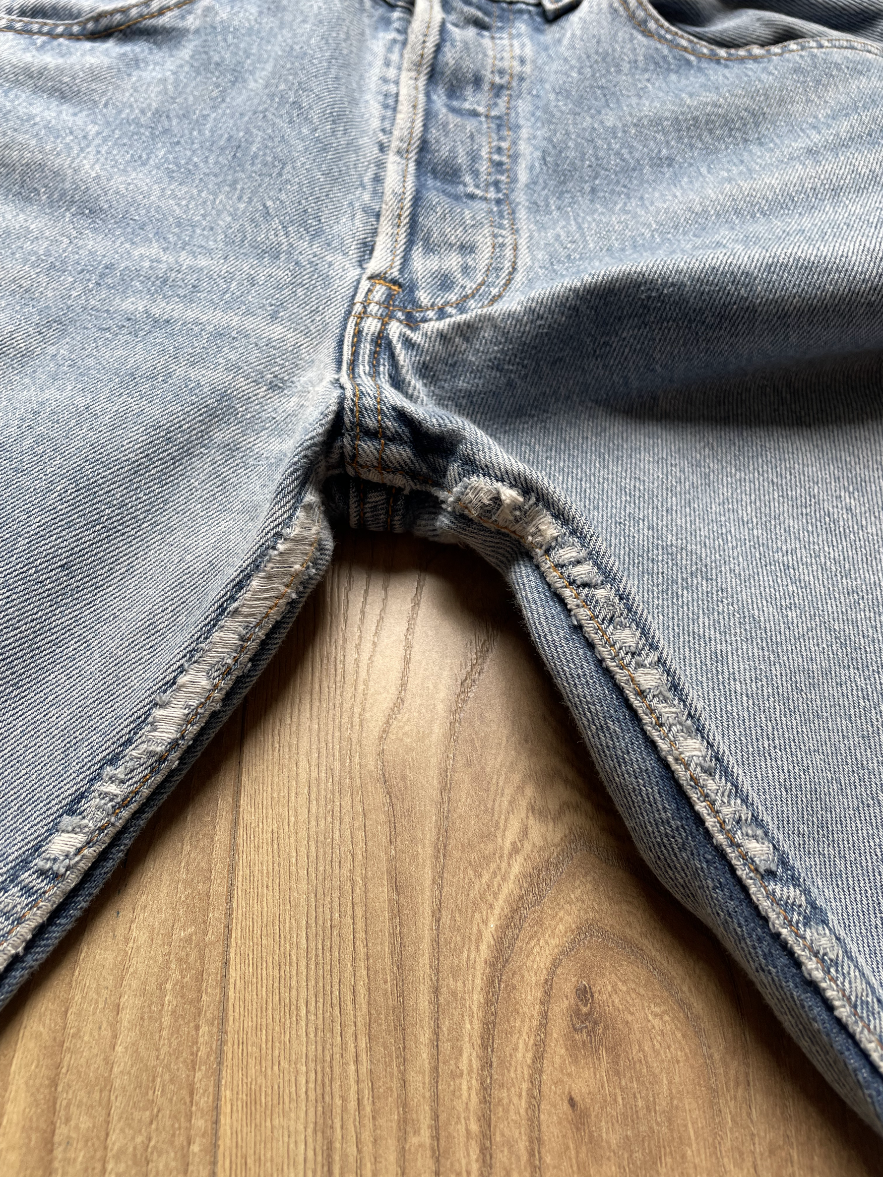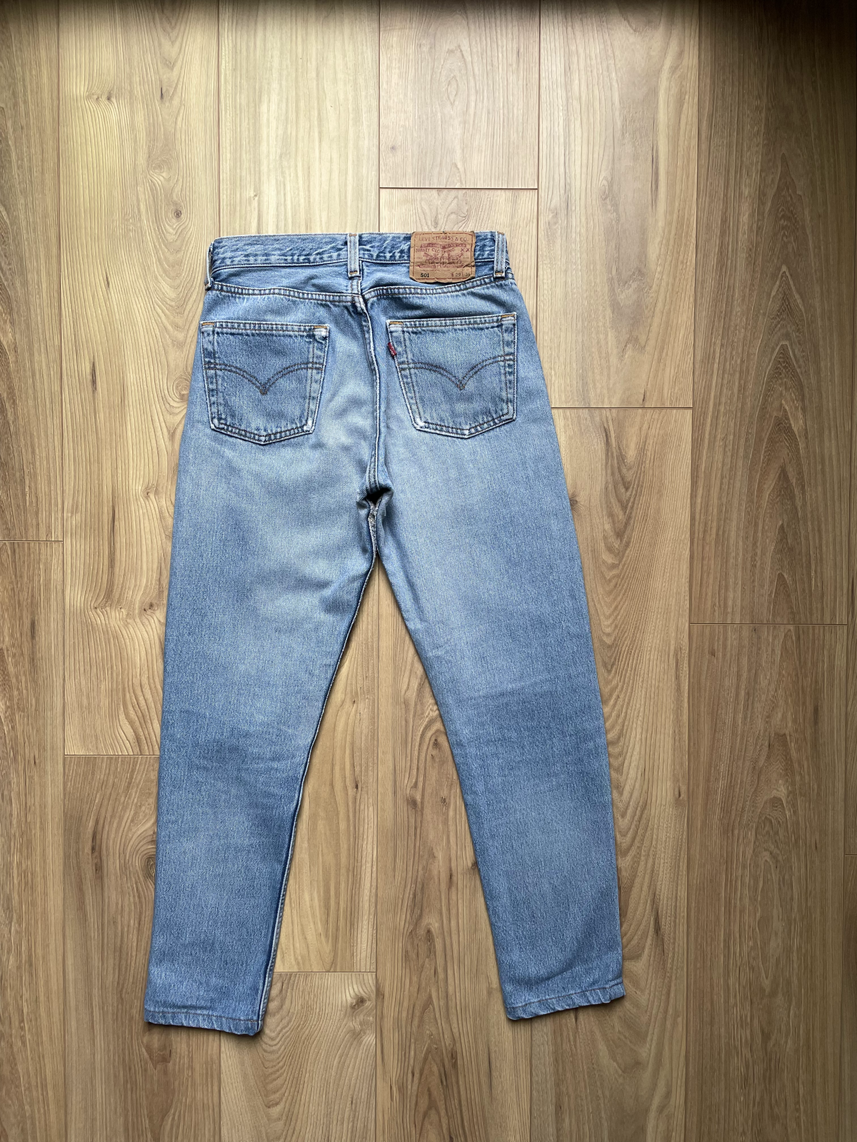 Prix unitaire parJean Levi's 501 vintage 29W 34L d'une qualité premium. Les ourlets sont d’origine. Largeur des hanches : 42cm ; Longueur : 92cm ; Longueur entrejambe : 67cm ; Taille : 38cm MADE IN USA Etat : état correct Couleur : bleu Matière : 100% coton Défauts / Détail : Coupe légèrement modifié Le colis est emballé et envoyé avec soin