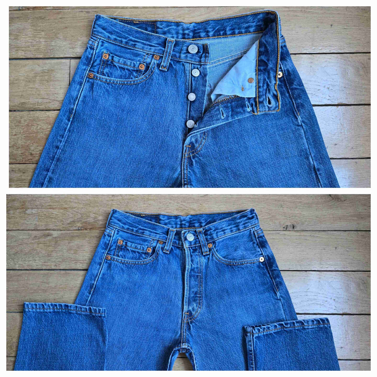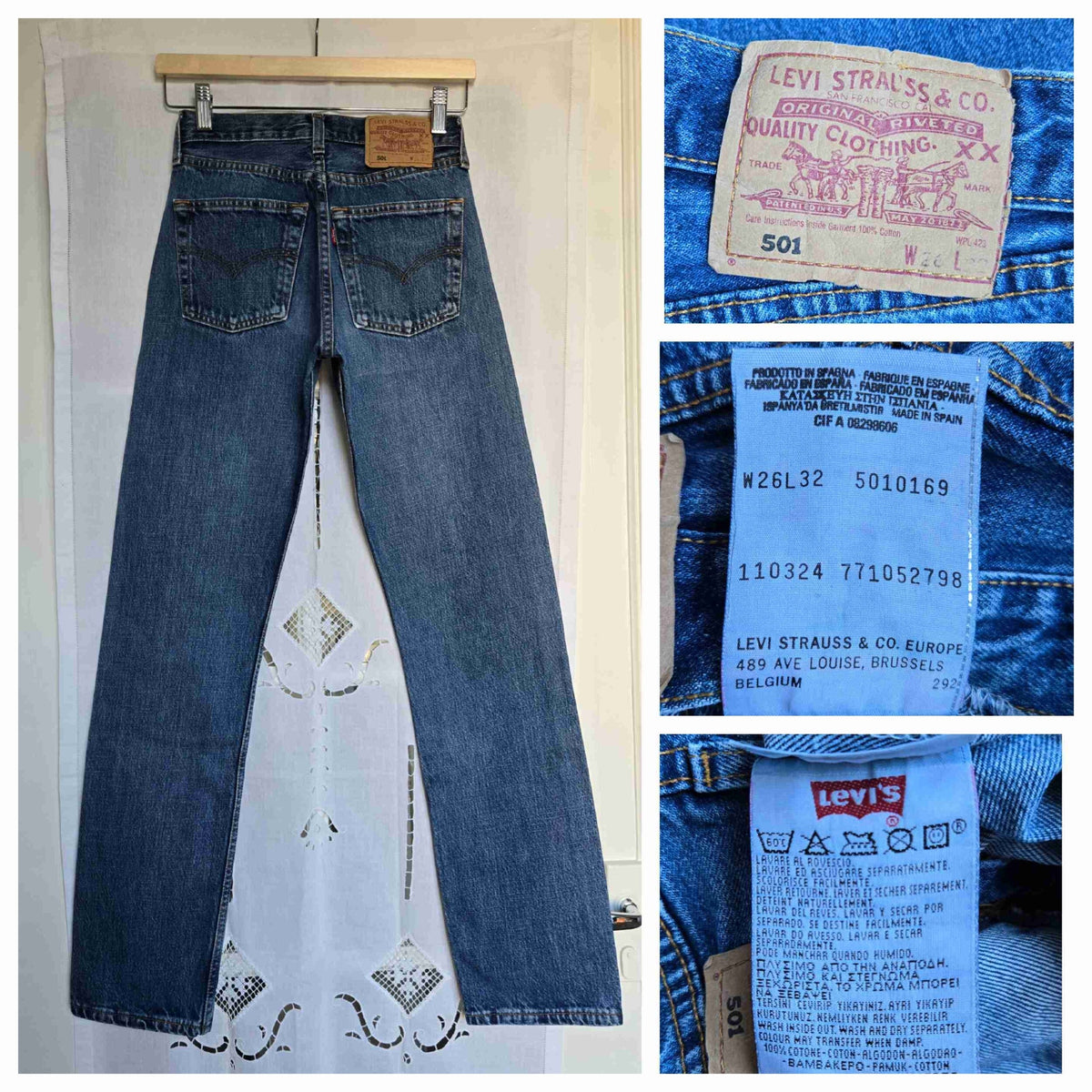 Levi 's W26 L32 bleu moyen. Ourlets d origine. 100% coton. Made in Spain. Longueur exterieur jambe 103 cm. Hauteur fourche 25 cm.