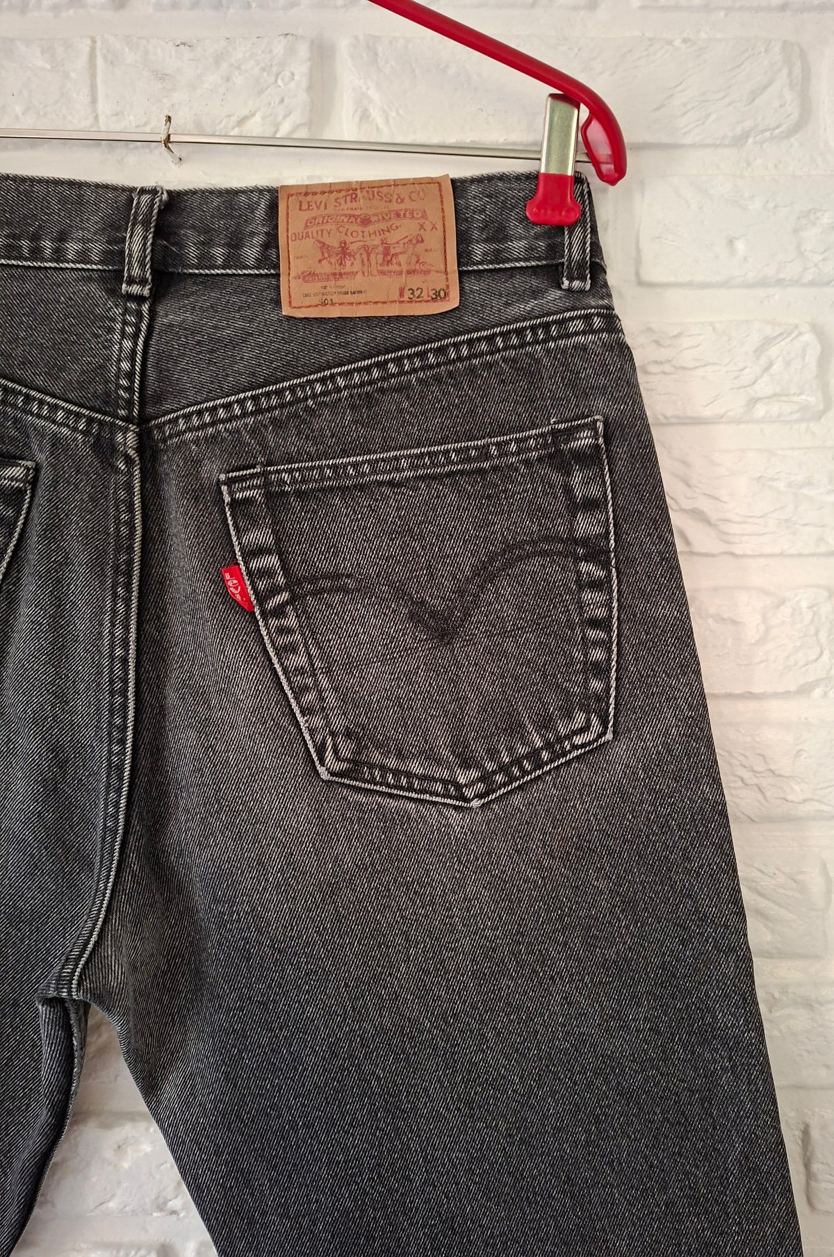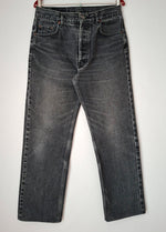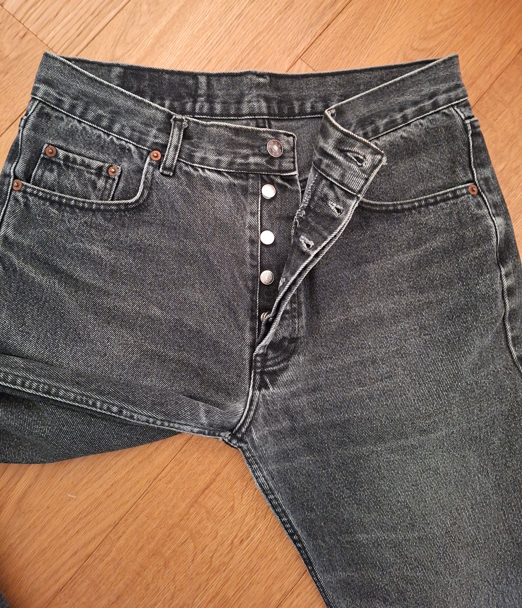 Jean Levi's 501 W32 L30. Denim gris délavé par les années. Ourlets refaits. Les mesures à plat : Taille 41cm Hanches 54cm Entrejambe 69cm Longueur 98cm.Bien vérifier les mesures
