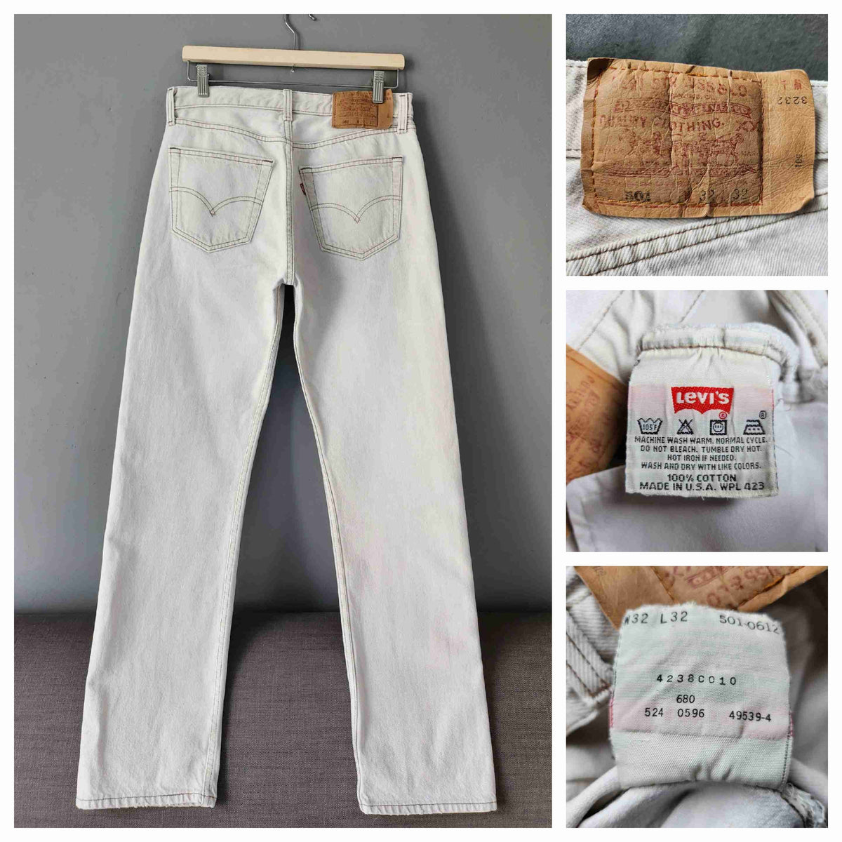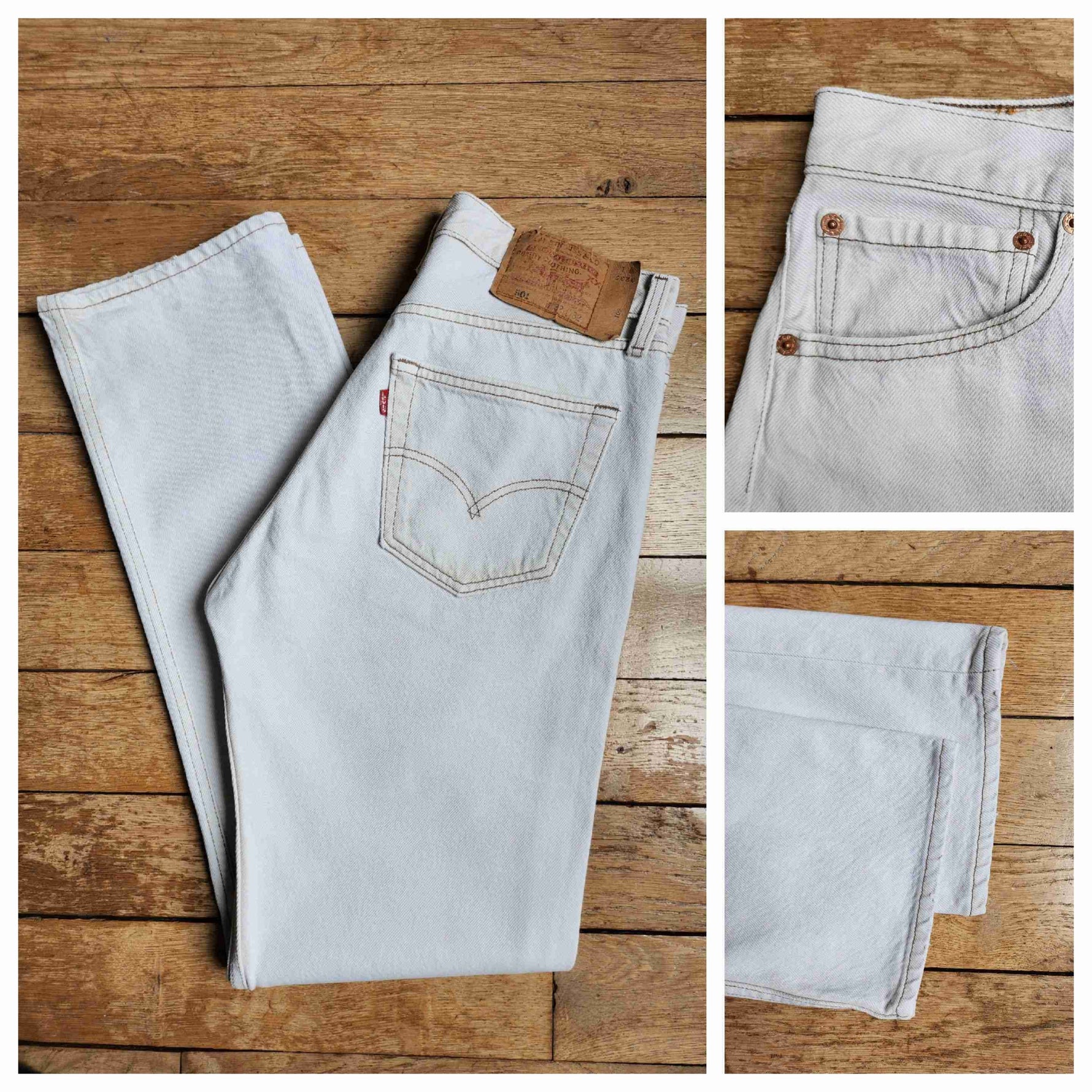 Prix unitaire parJean Levi's 501 W32 L32 blanc. Ourlets d'origine. Made in USA. Longueur ext jambe 108 cm.