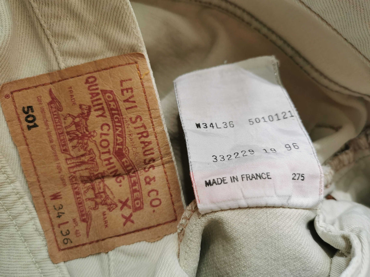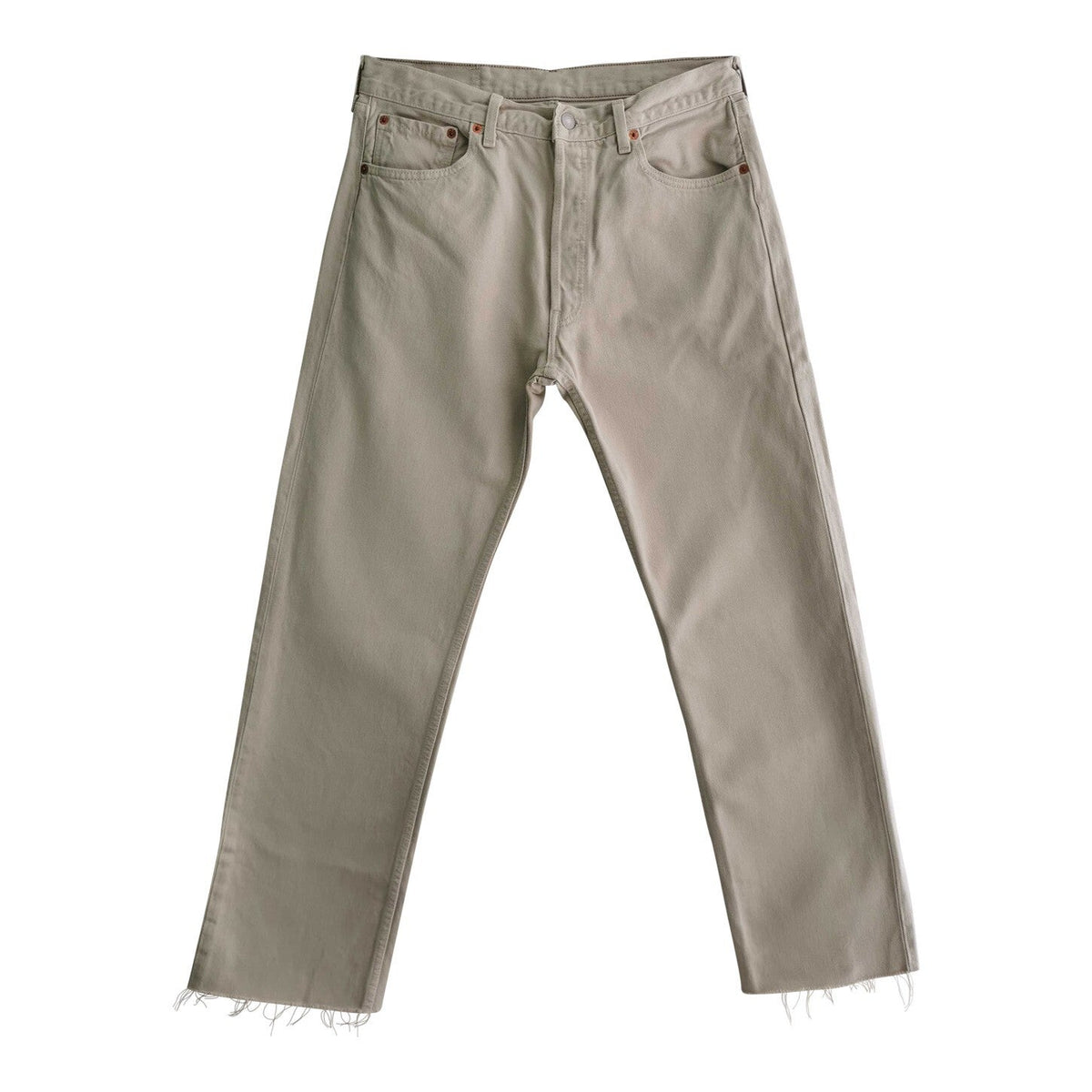 Prix unitaire parJean Levi's 501 W34 L36 Made in France. Denim beige et bas coupés et effiloches. Bien vérifier les mesures. Bel état.
