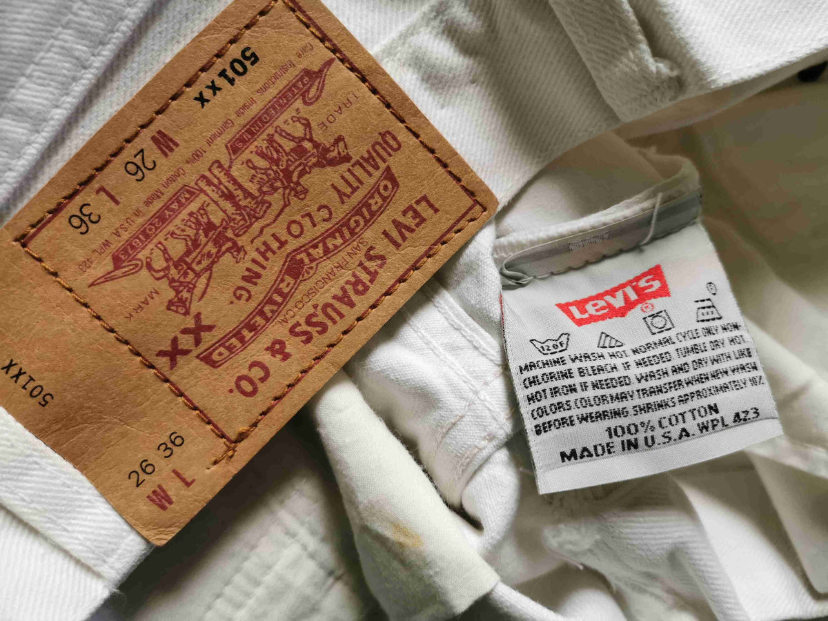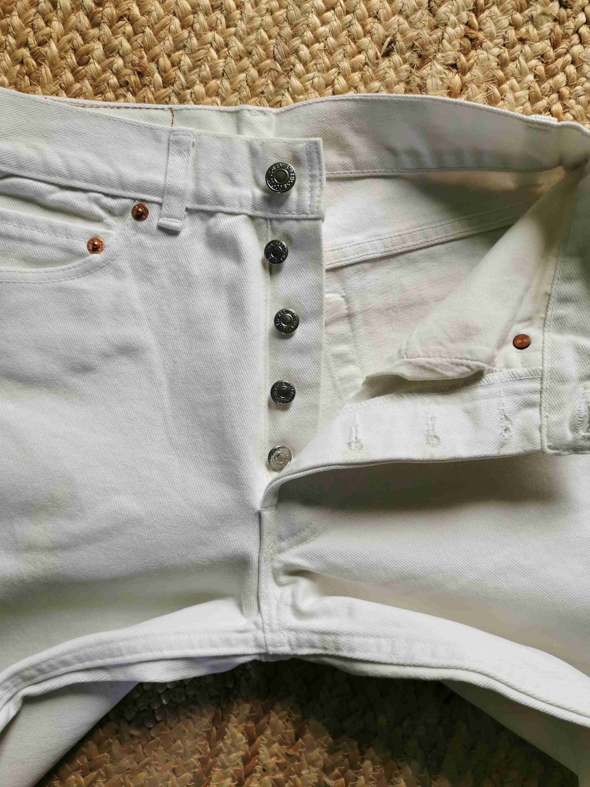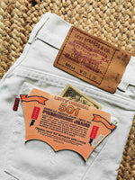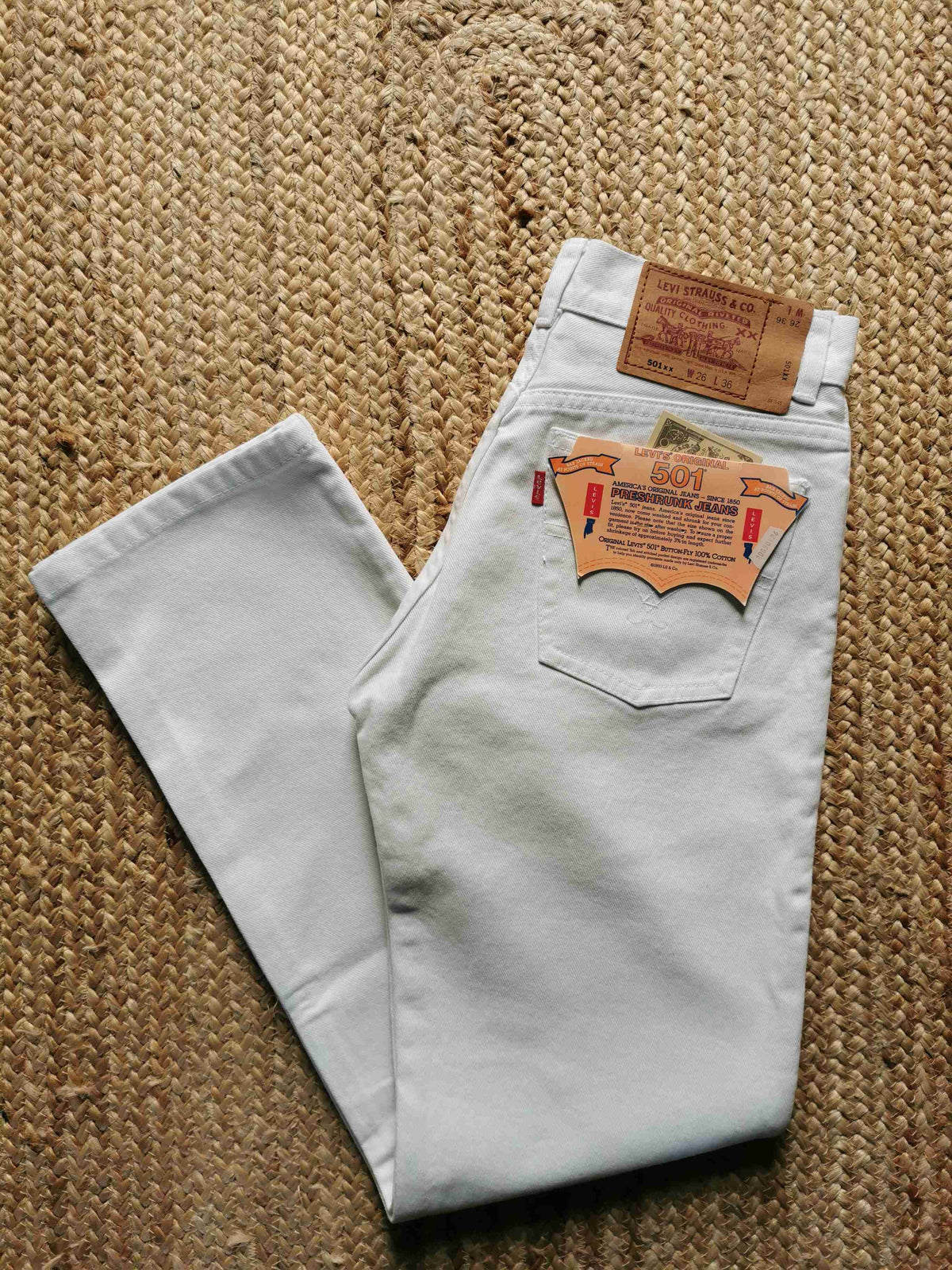 Prix unitaire parJean Levi's 501 xx W26 L36 Made in USA. Denim blanc pur. Pièce deadstock. Vintage neuf.