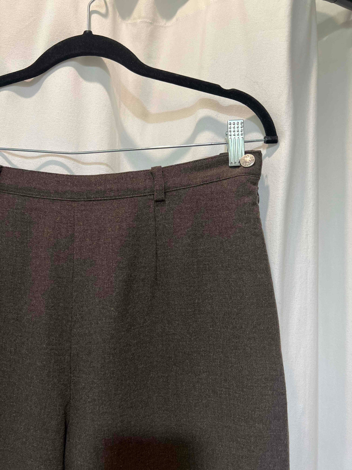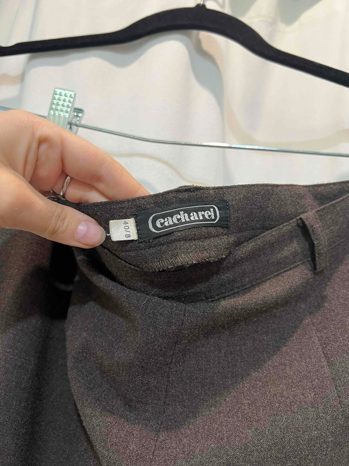 Prix unitaire parPantalon de costume droit en laine et elasthane marron chocolat de la marque Cacharel. Taille haute. Fabriquée en France. Laine fluide.