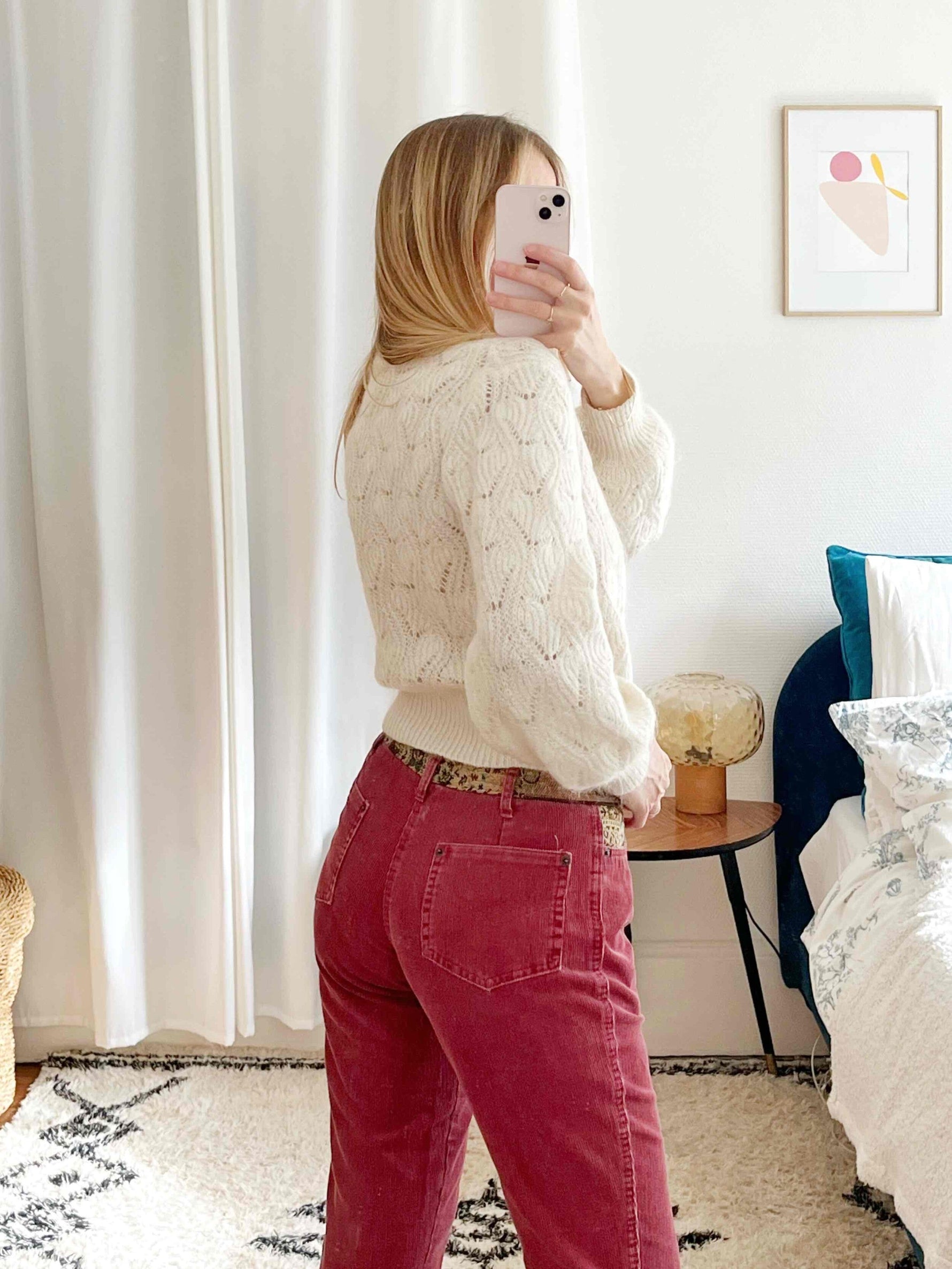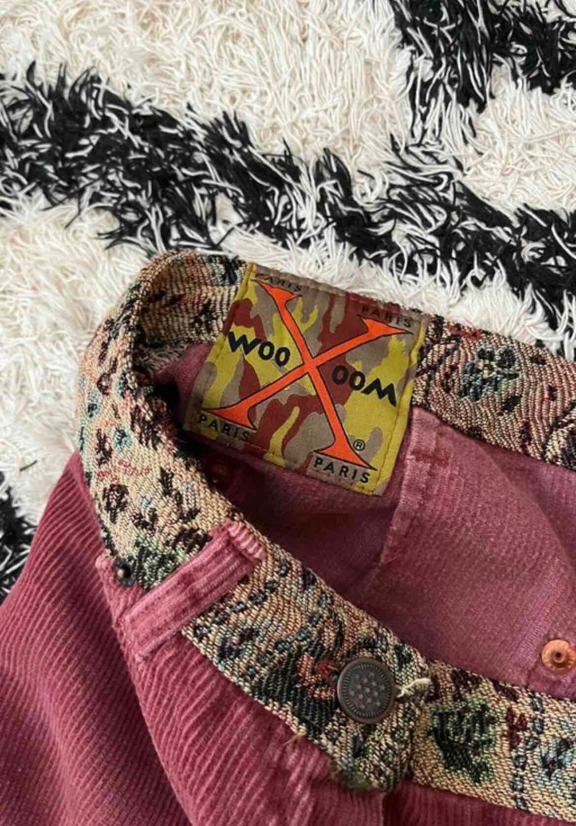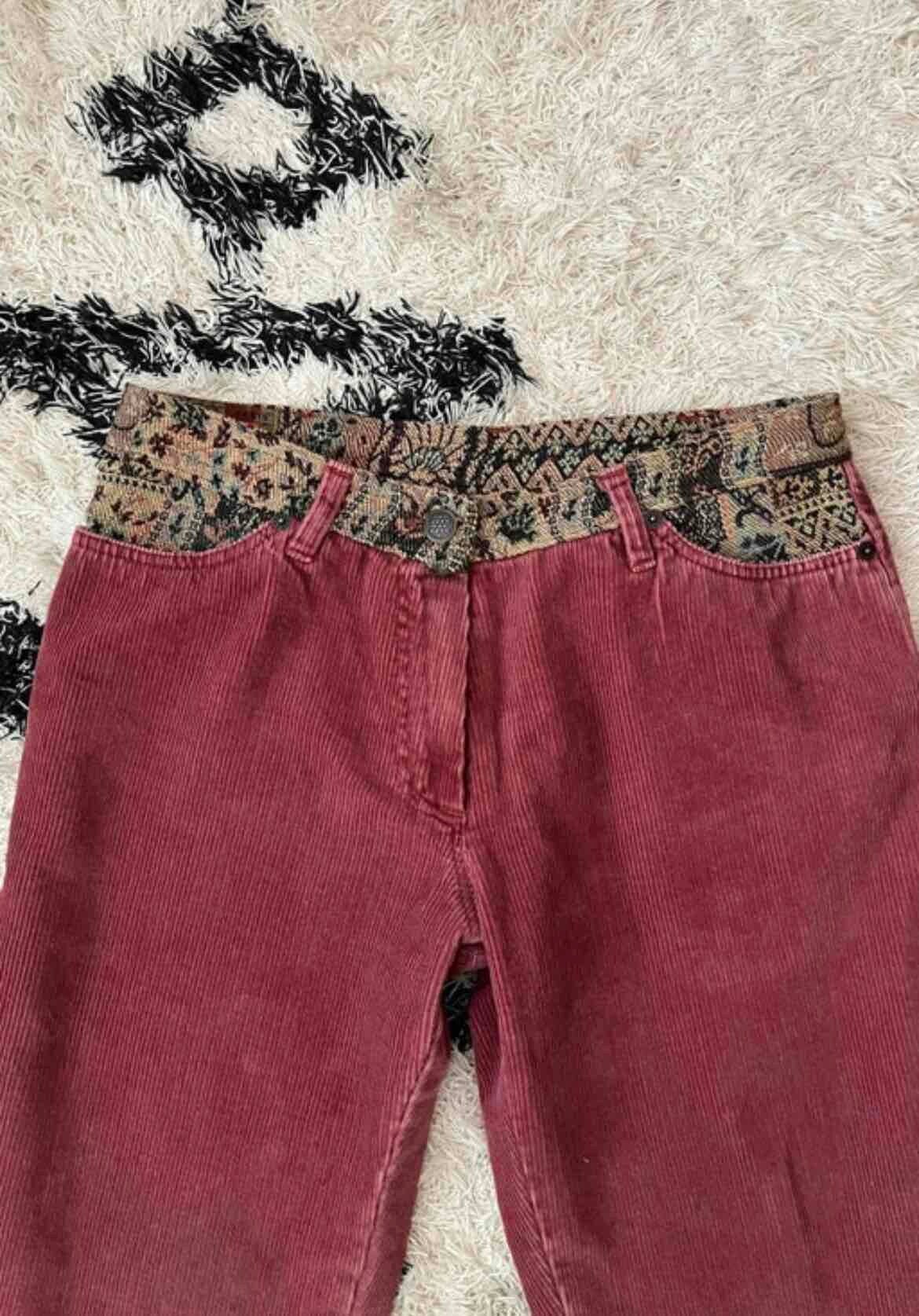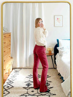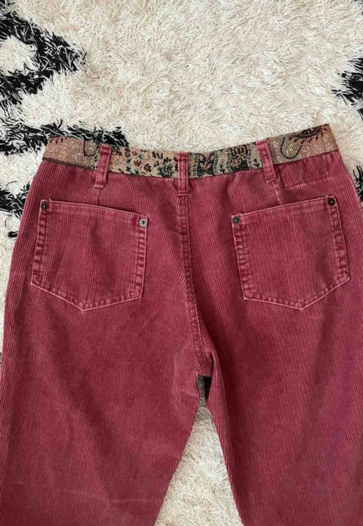 Prix unitaire parPantalon en velours vieux rose avec de jolis détails en tapisserie, middle waist, bas des jambes évasé, poches sur le devant et à l’arrière.