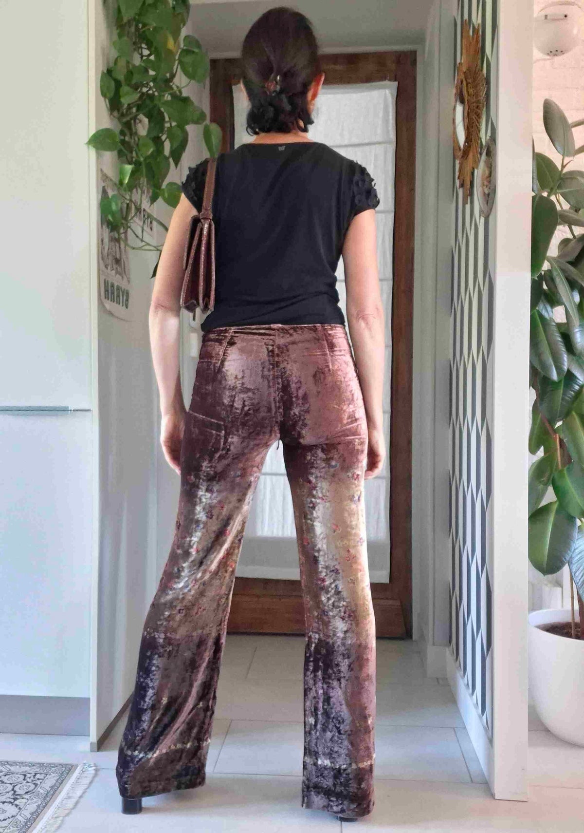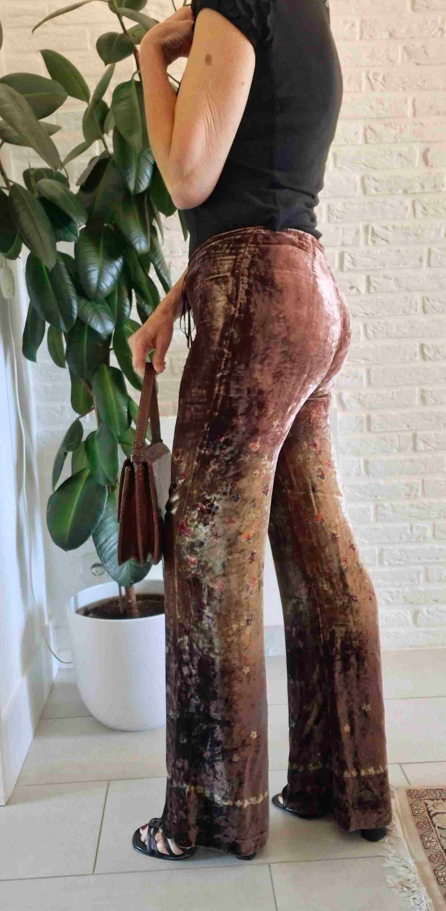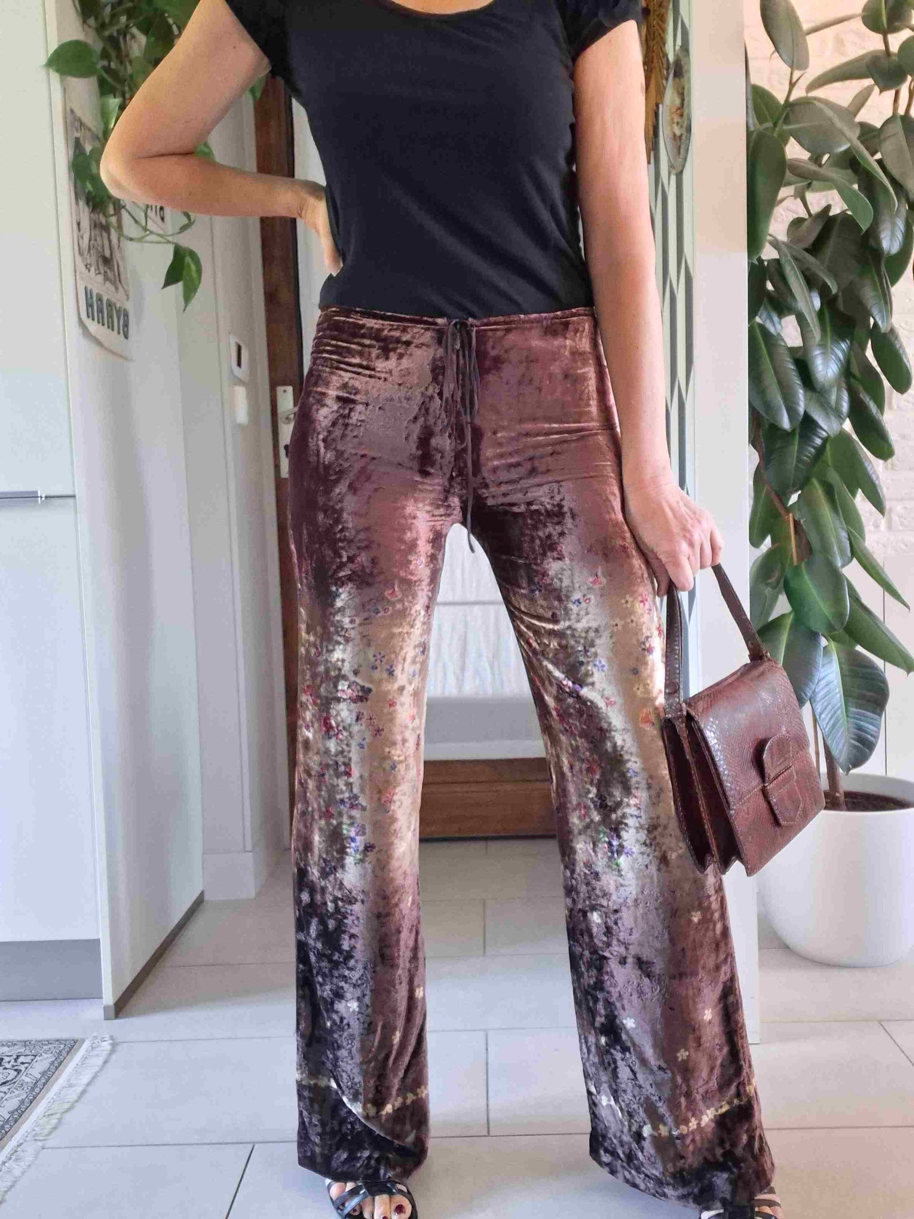 Prix unitaire parPantalon flare en velours de soie à fleurs vintage 70’s