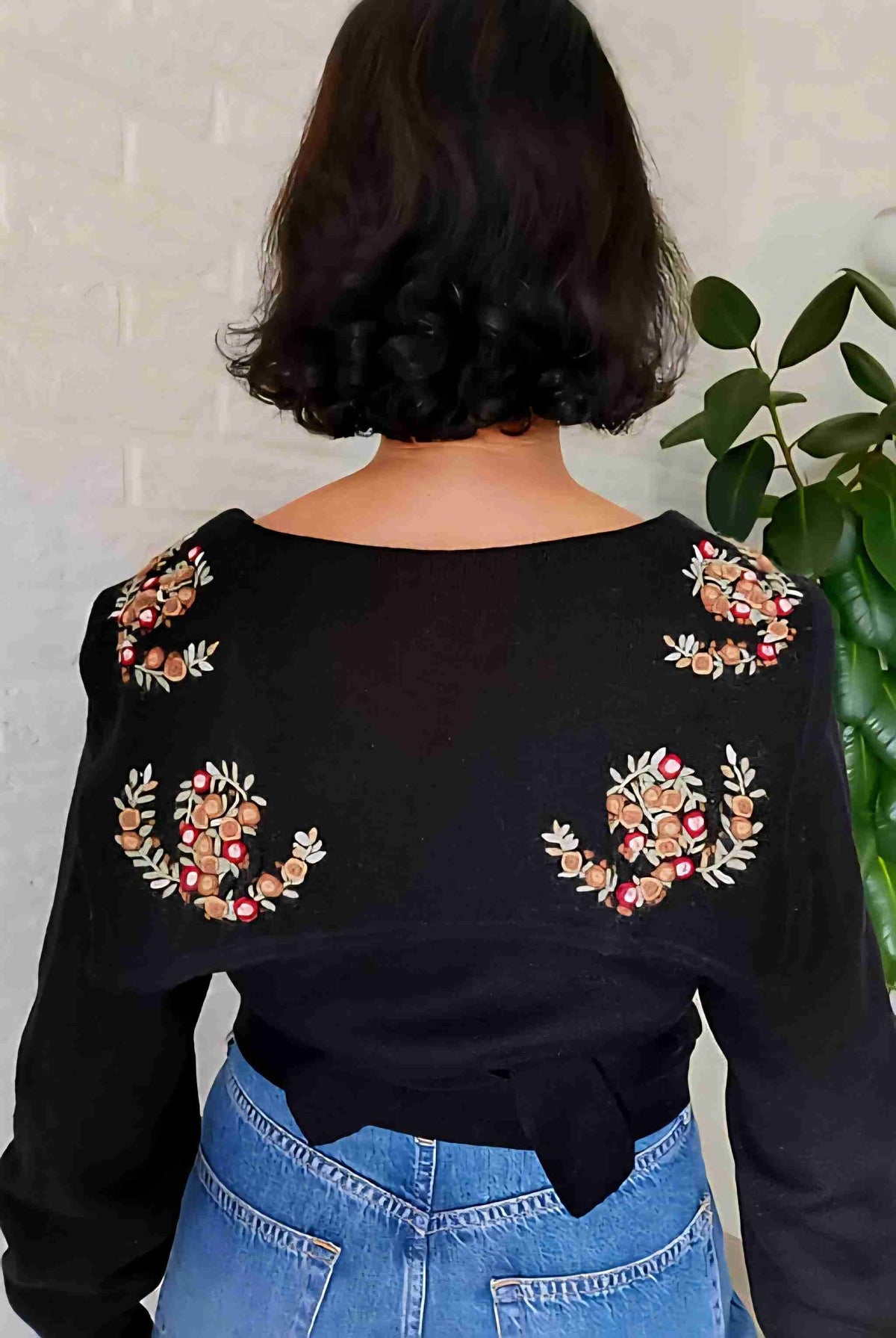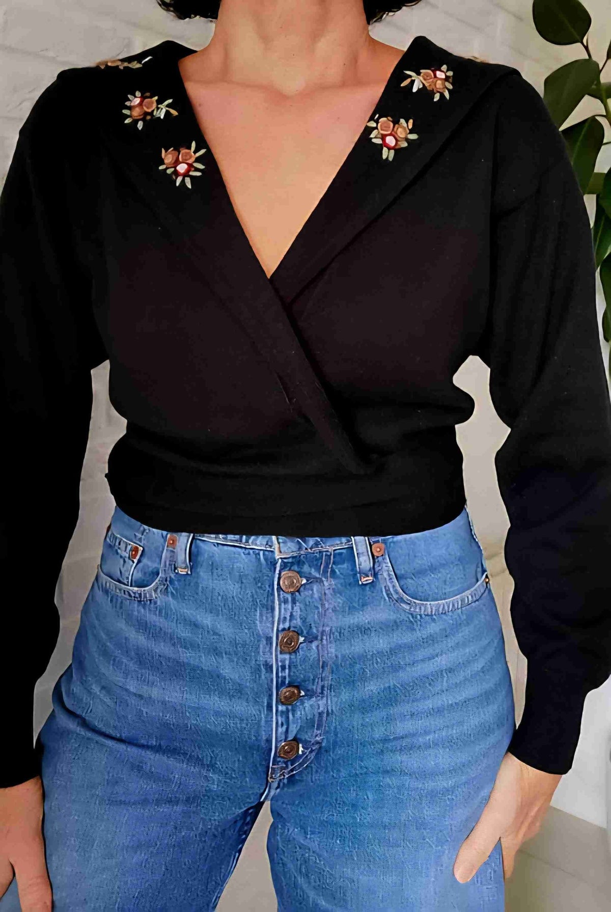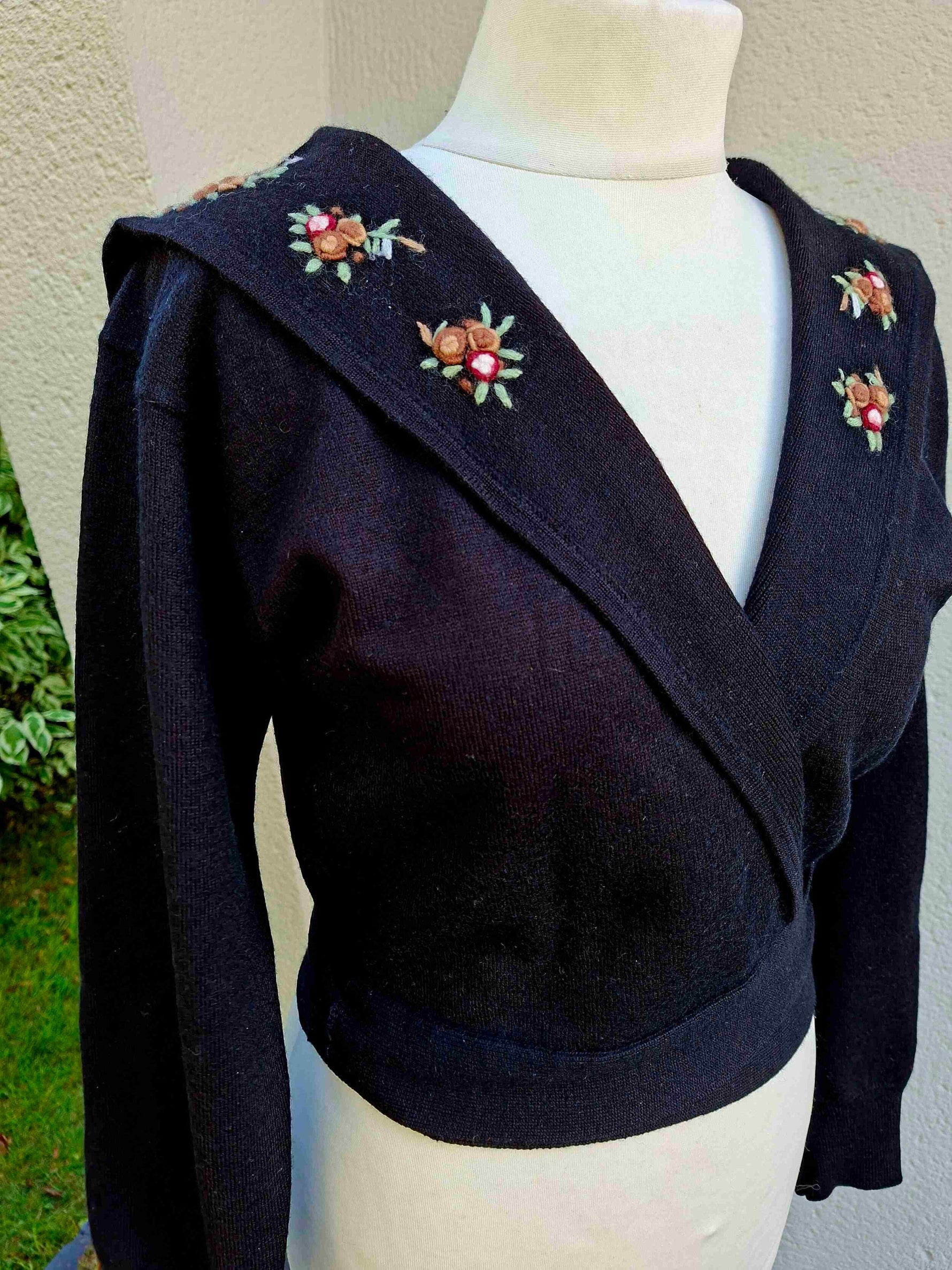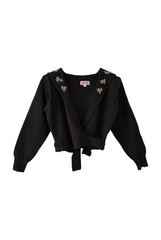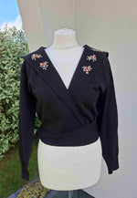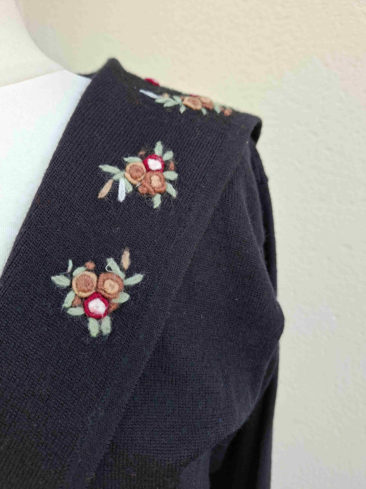 Prix unitaire parCardigan cachecoeur brodé en laine noire