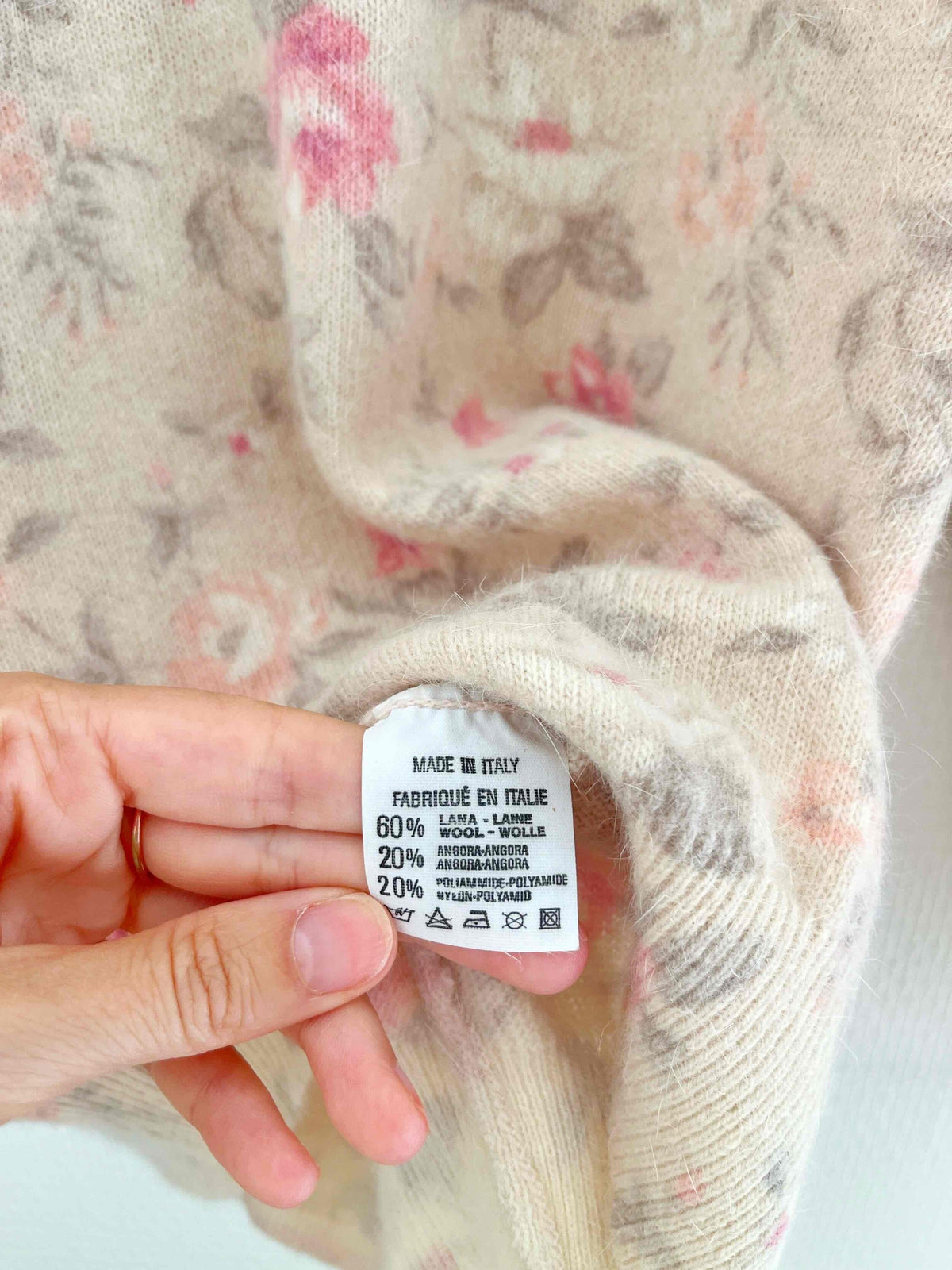 Prix unitaire parCardigan à fleurs, tout doux, en laine et angora, fabriqué en Italie.
