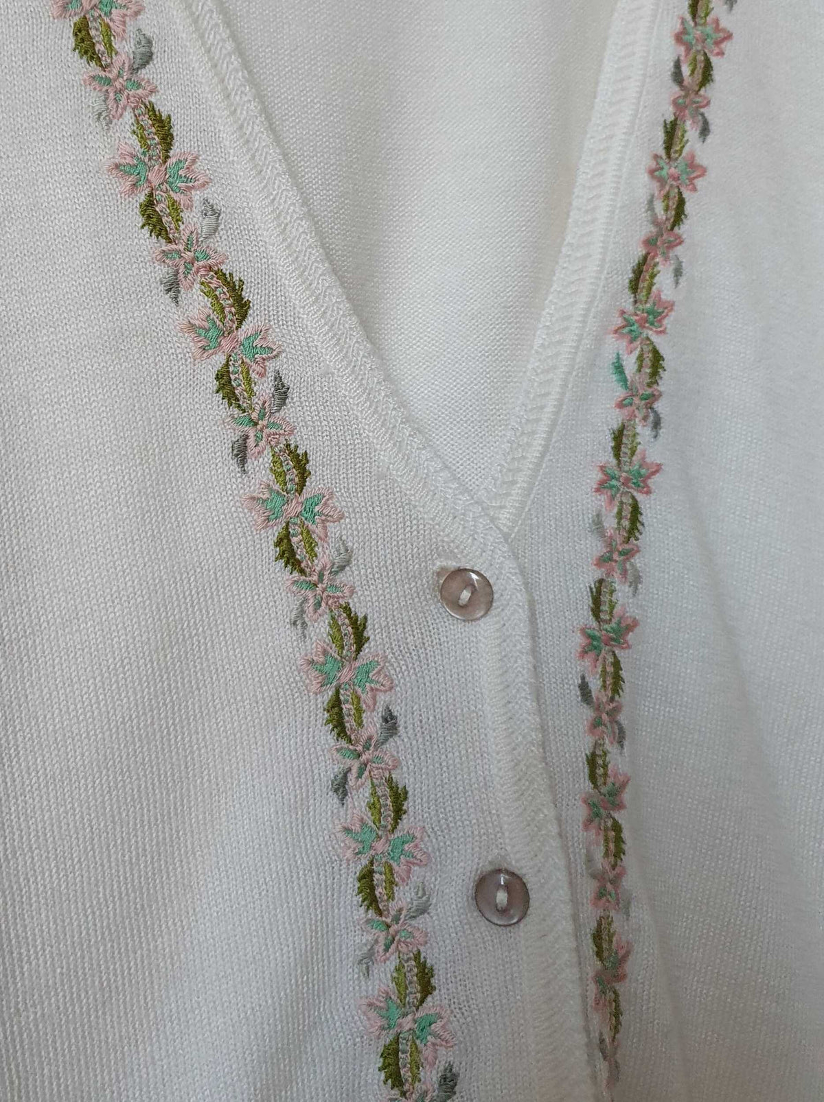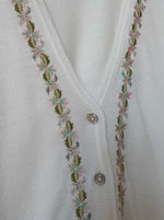 Prix unitaire parCardigan vintage écru. Fleurs brodées vertes et roses. Parfait état.