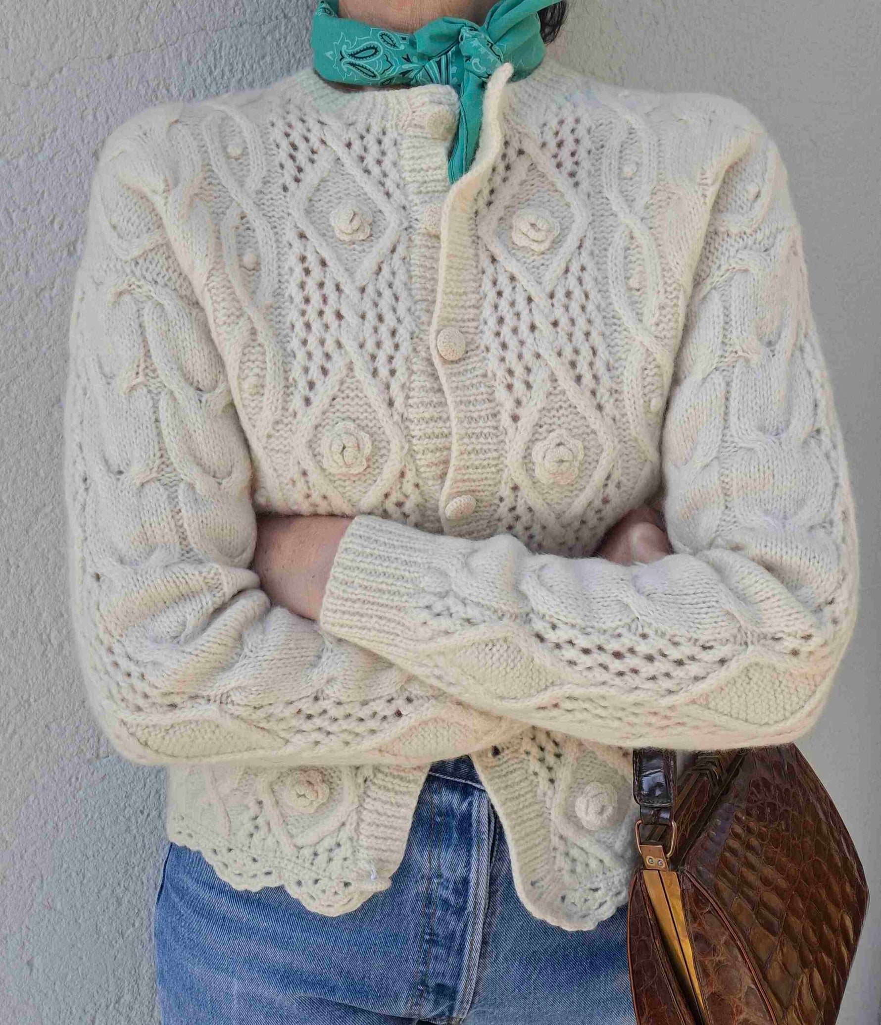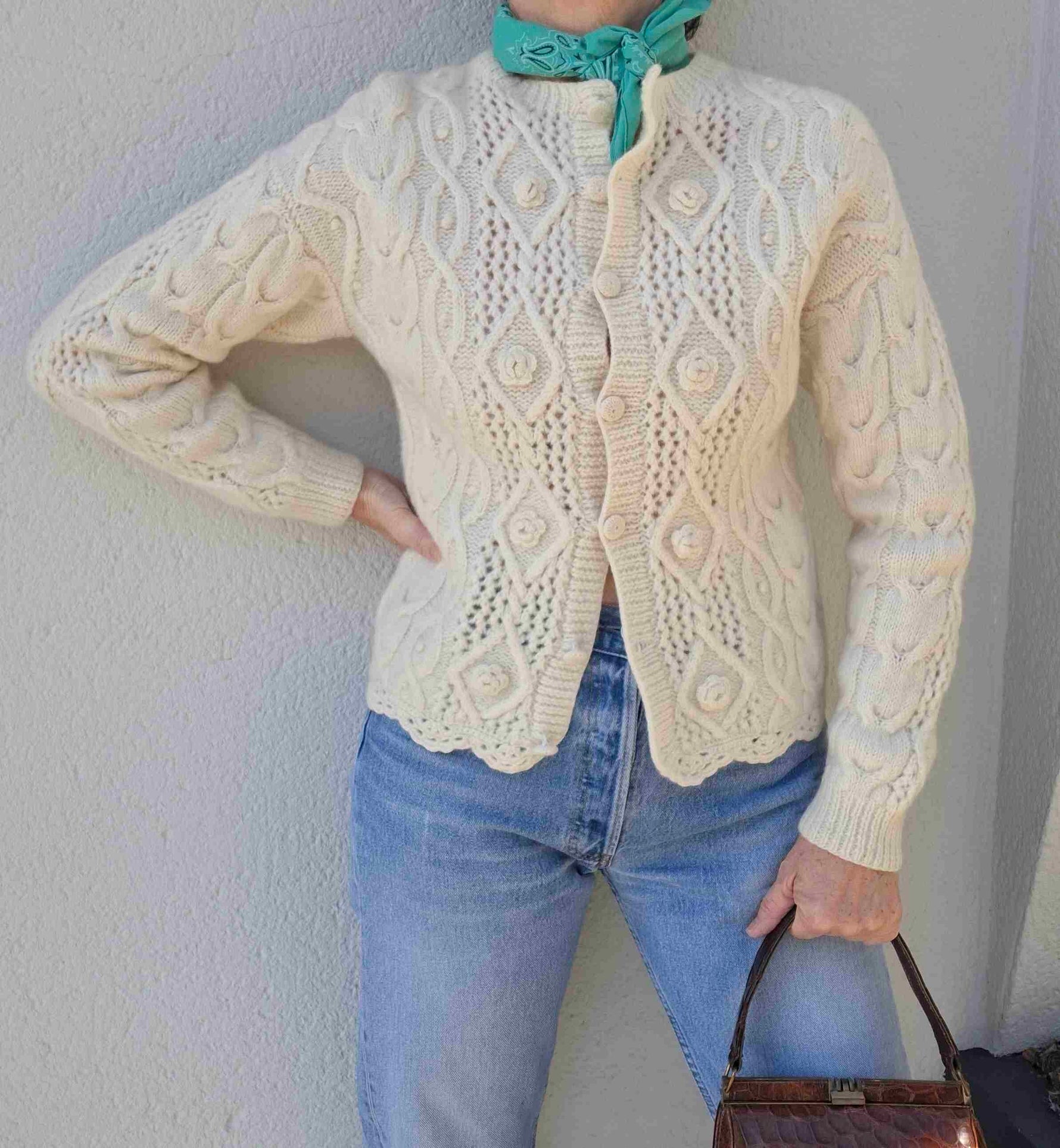 Prix unitaire parCardigan en pure laine écrue Vintage 80's