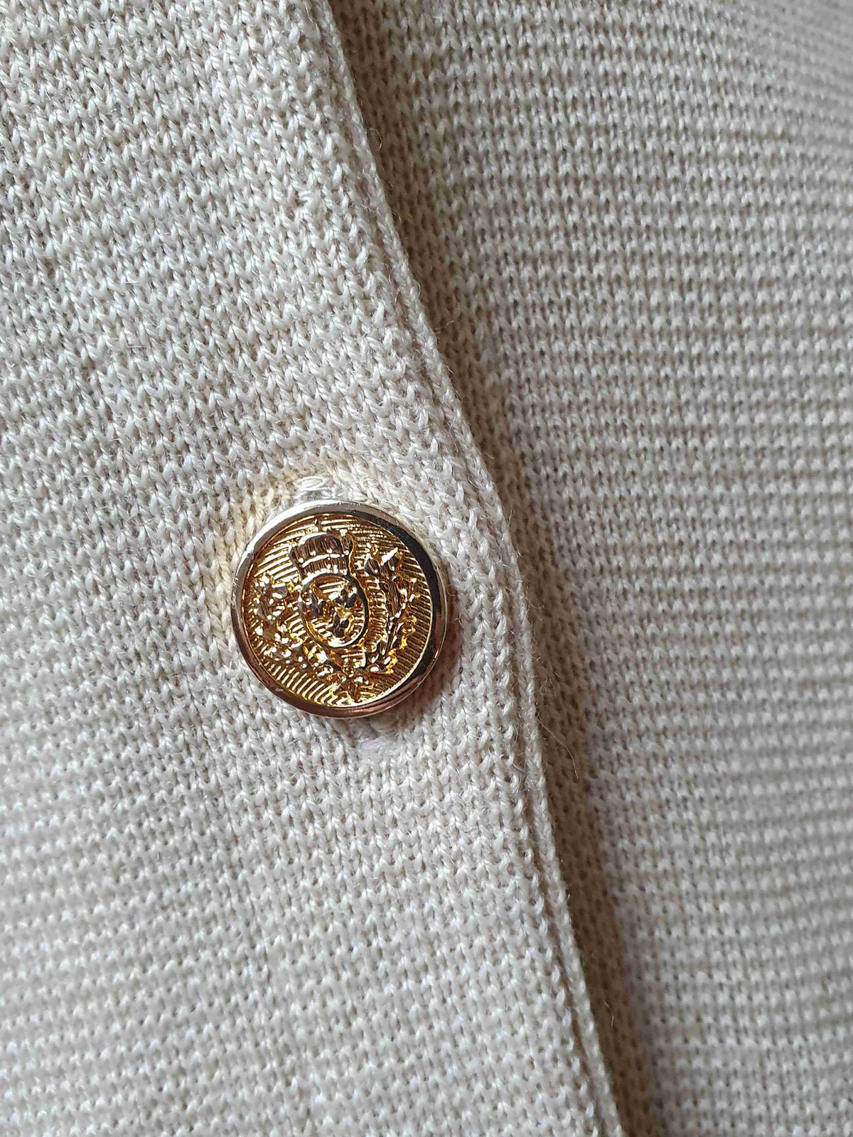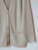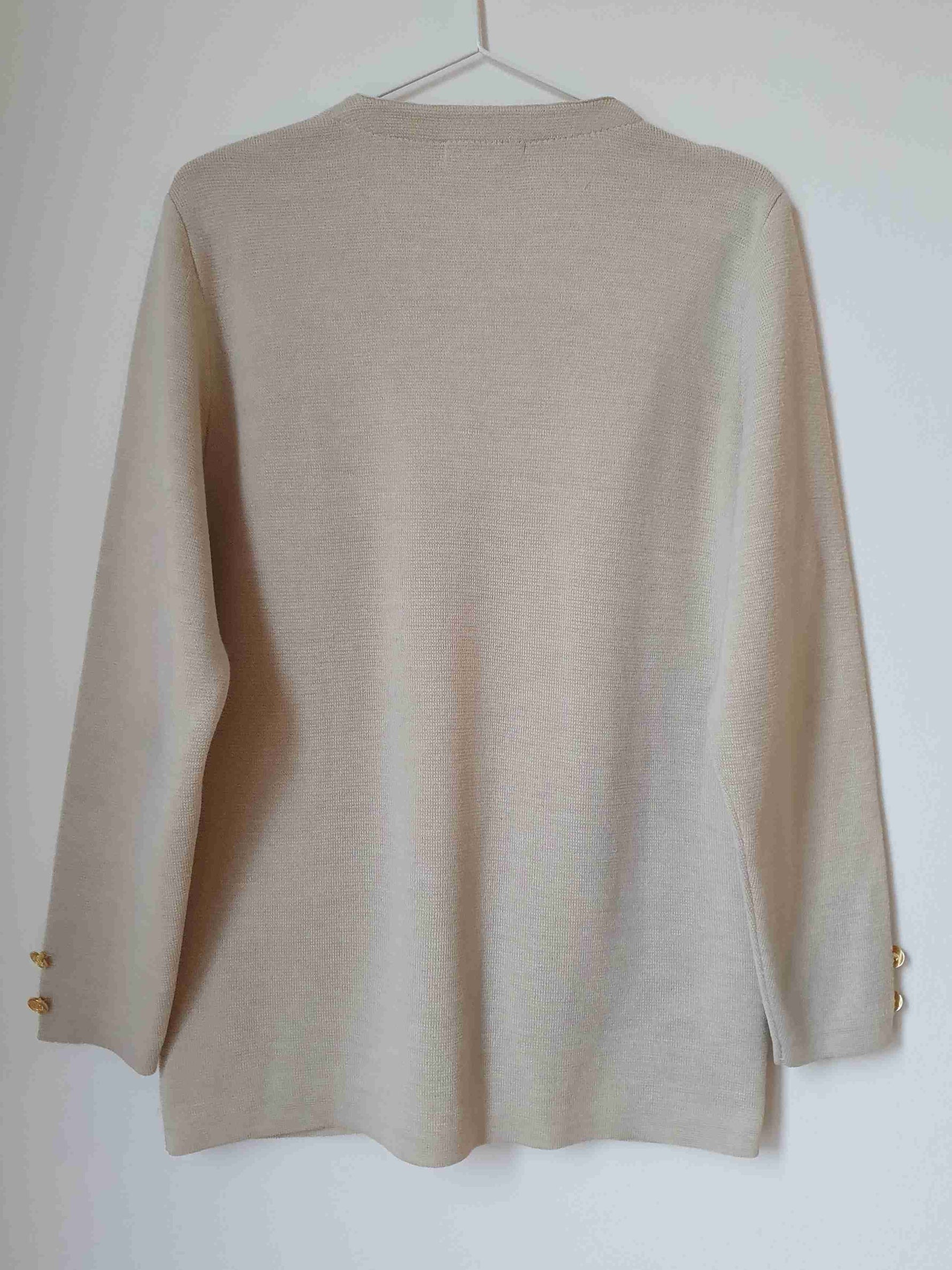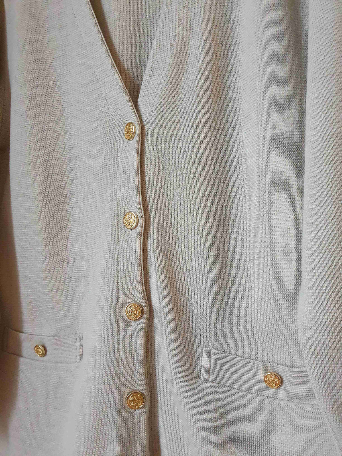 Prix unitaire parCardigan beige en laine. Boutons dorés d'origine. Deux poches. Trois petits boutons en bas de manche. Taille 36 porté légèrement ample/38.