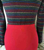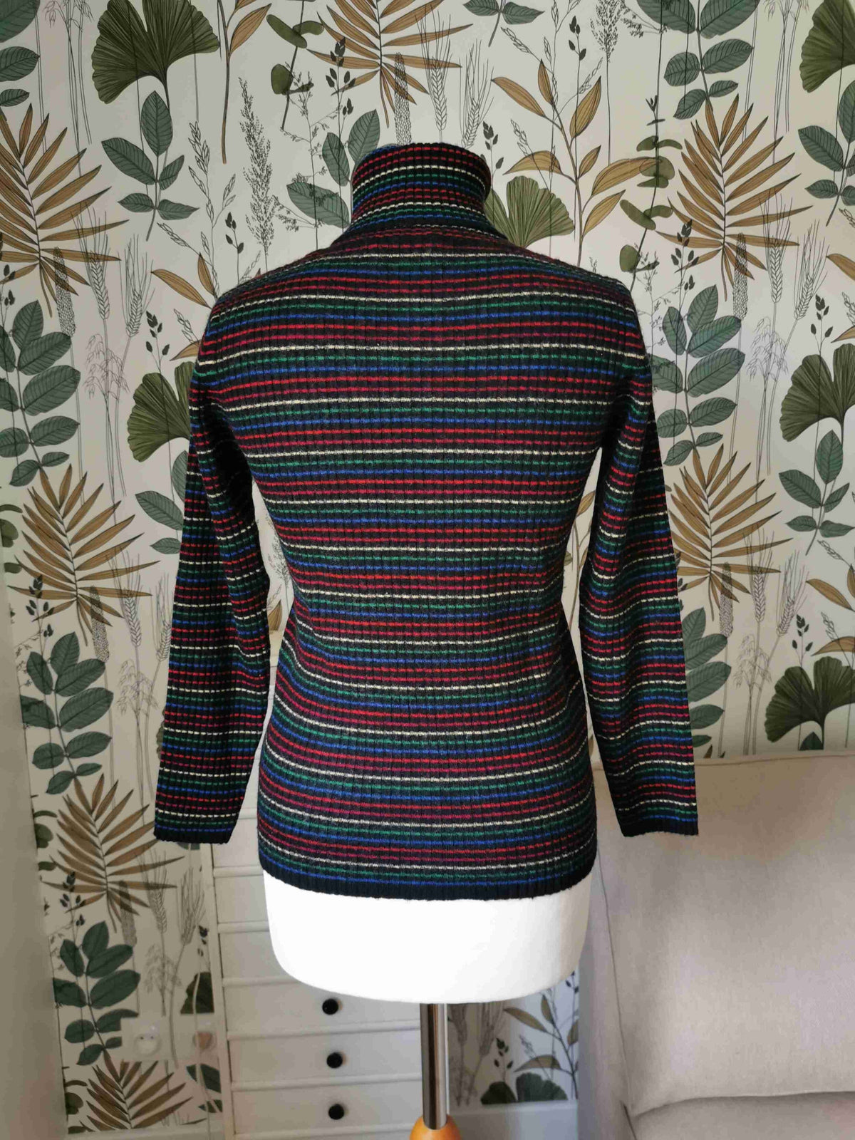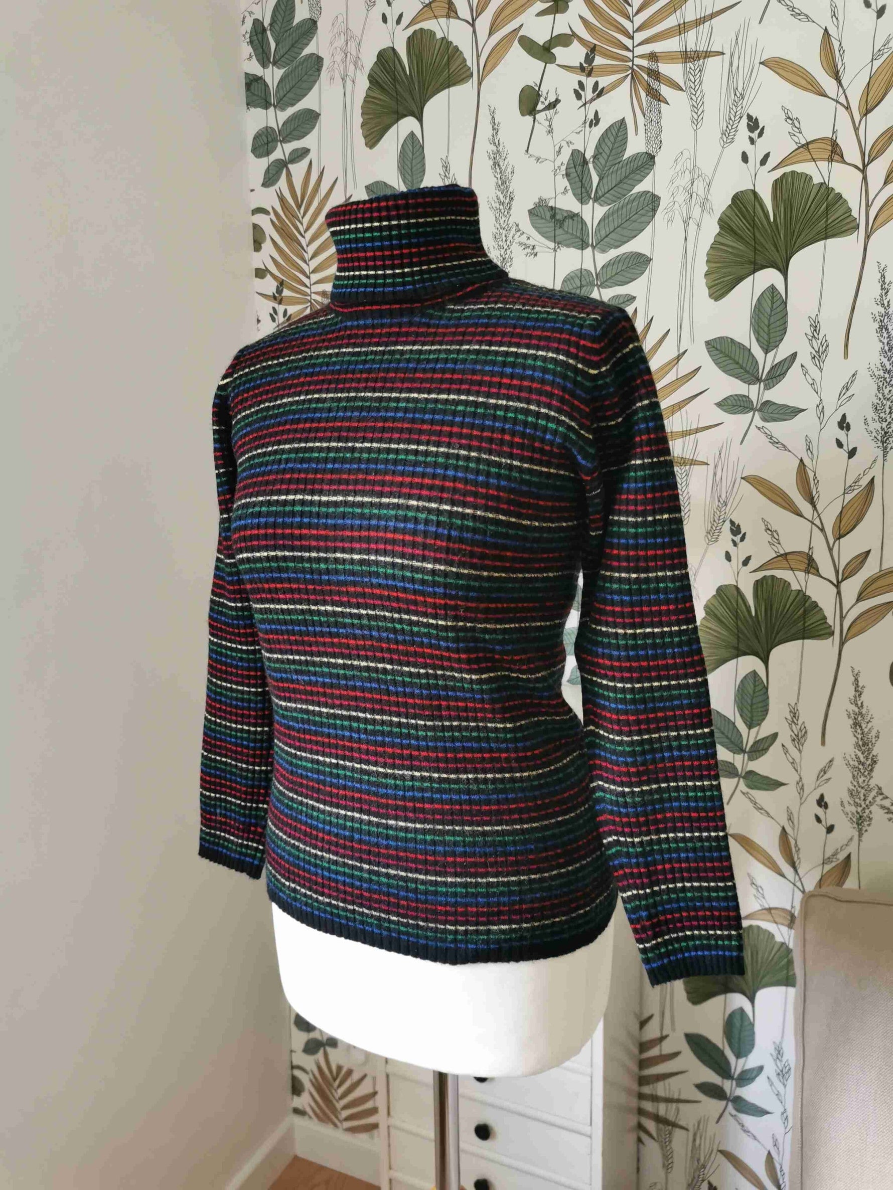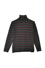 En laine mélangée à 50% et acrylique rayé noir, rouge, vert et jaune