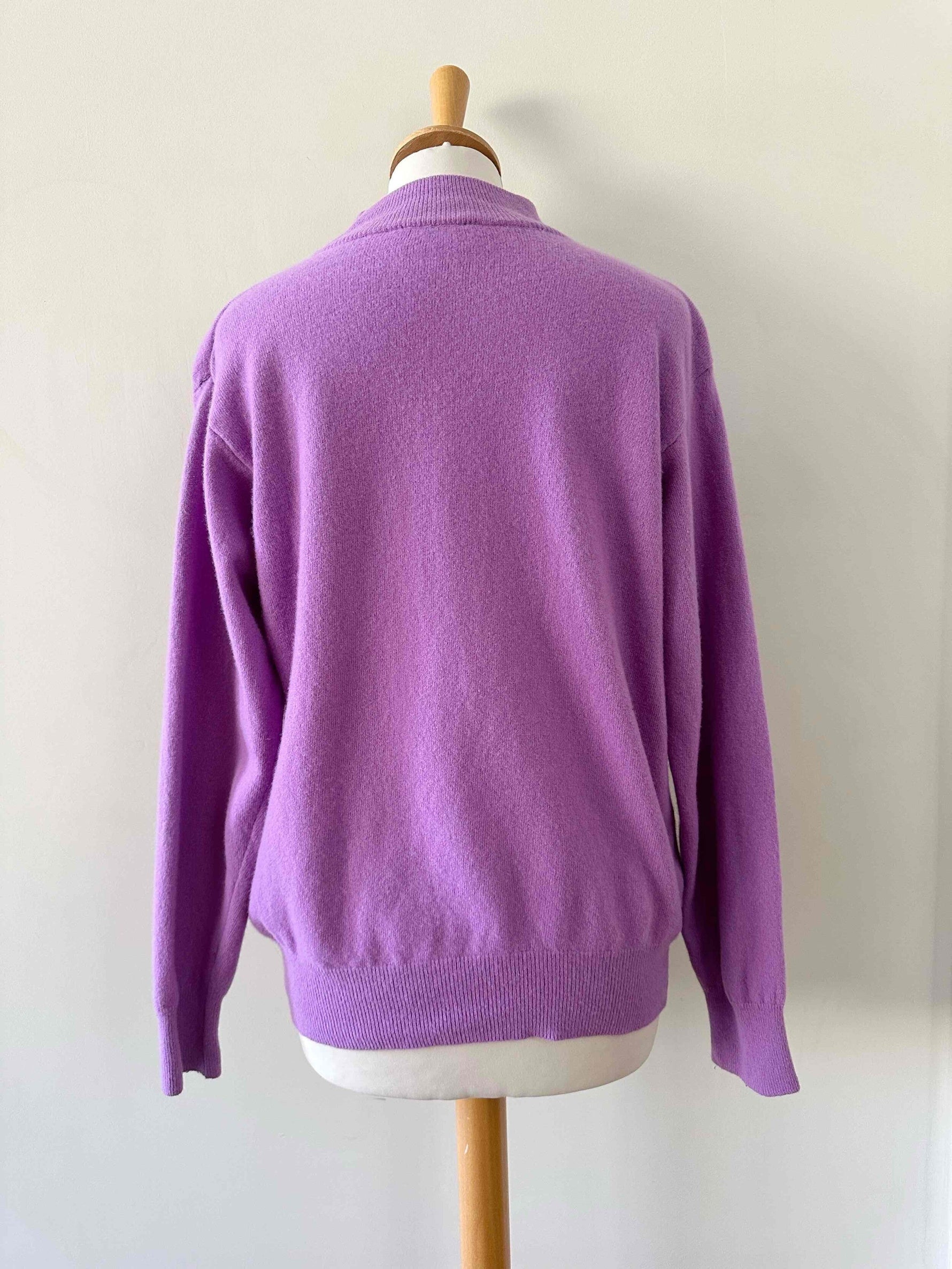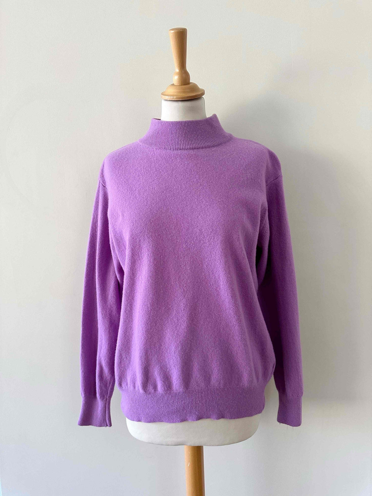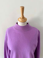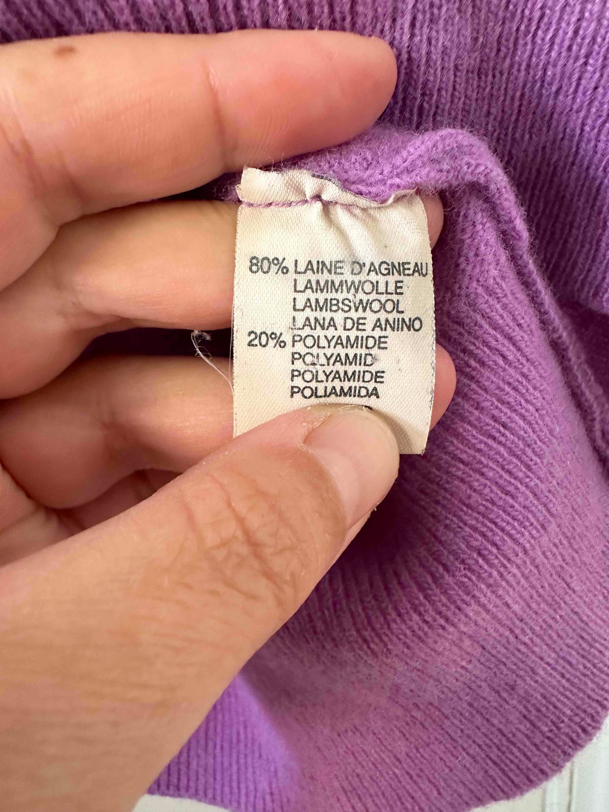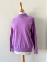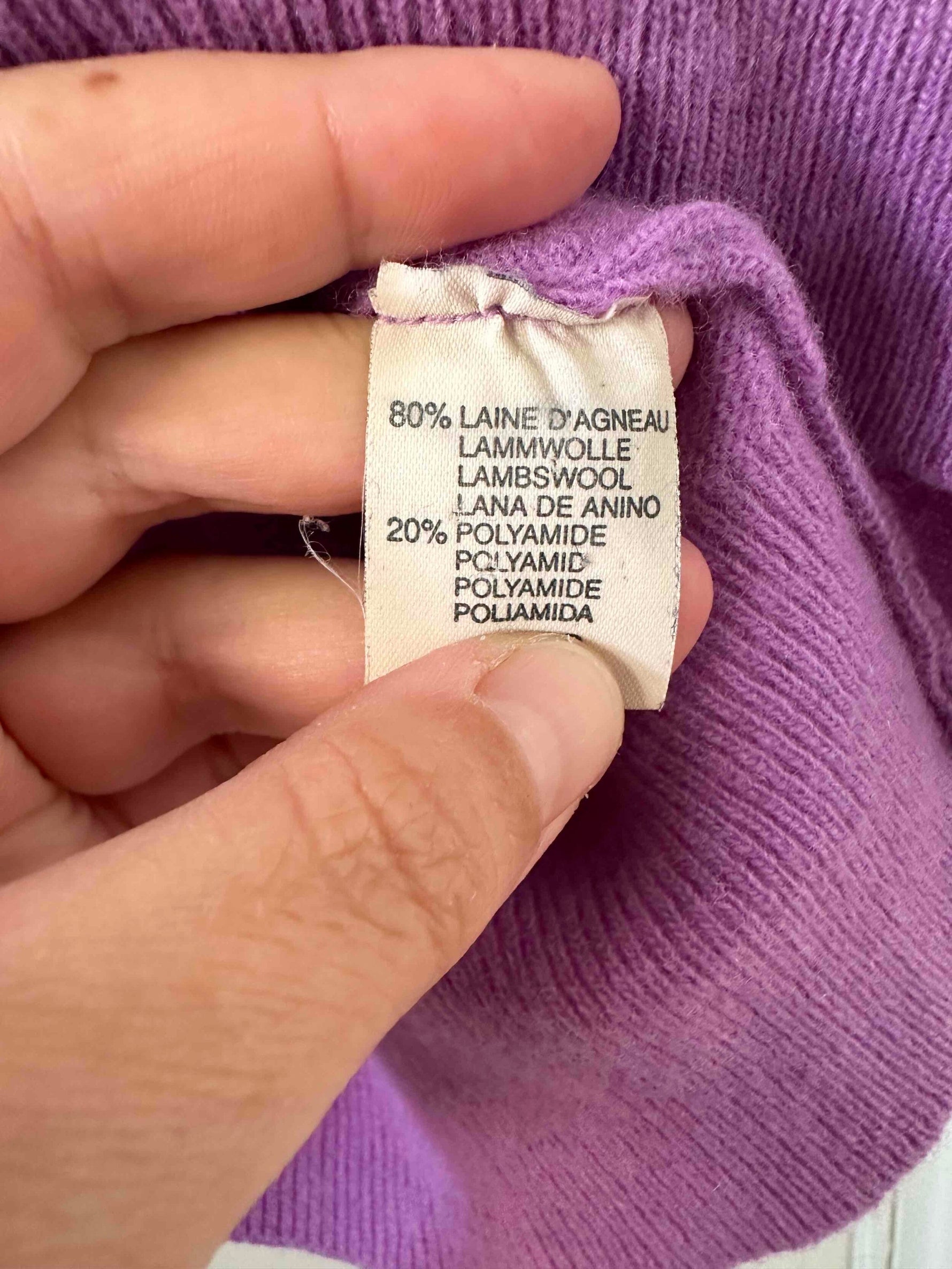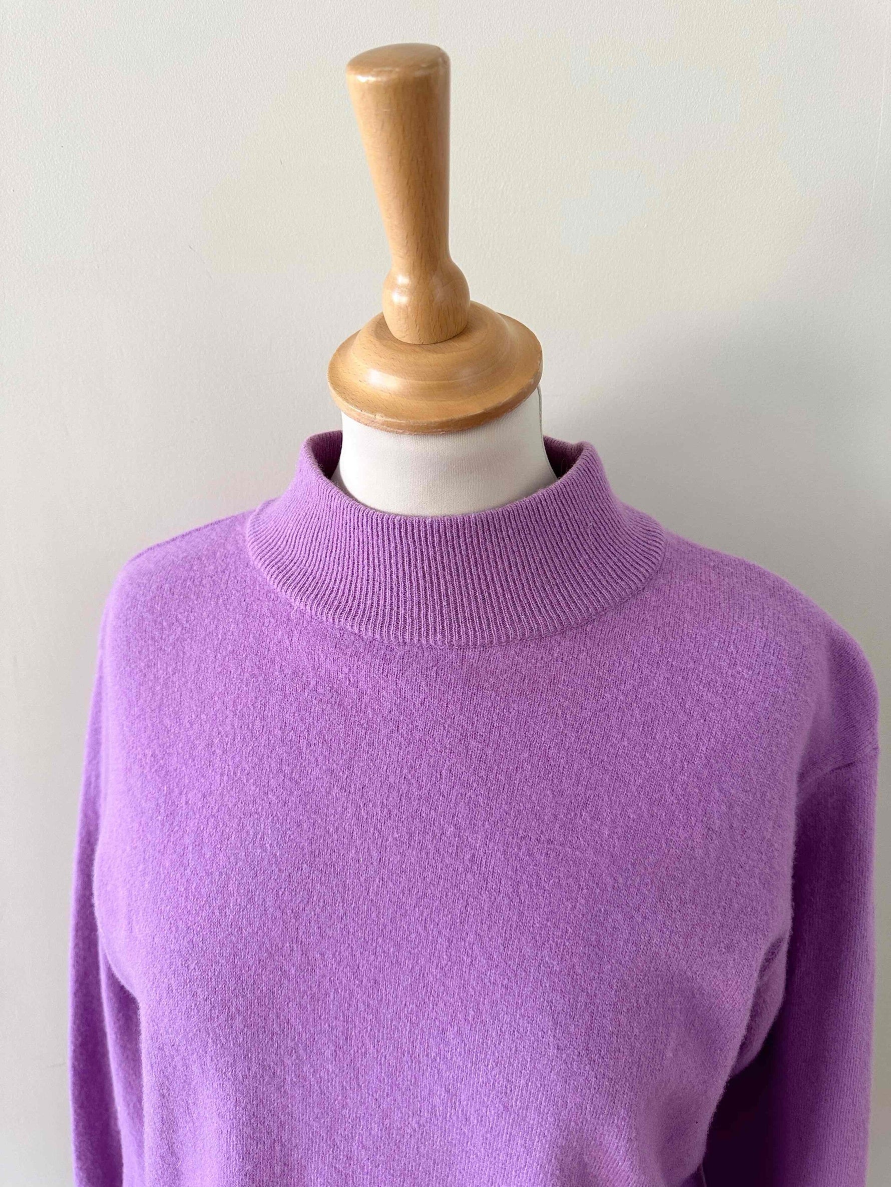 Prix unitaire parCol roulé en laine d’agneau violet lilas, col montant, forme sweat, un basique intemporel. Taille 36 porté ici sur un mannequin T36.
