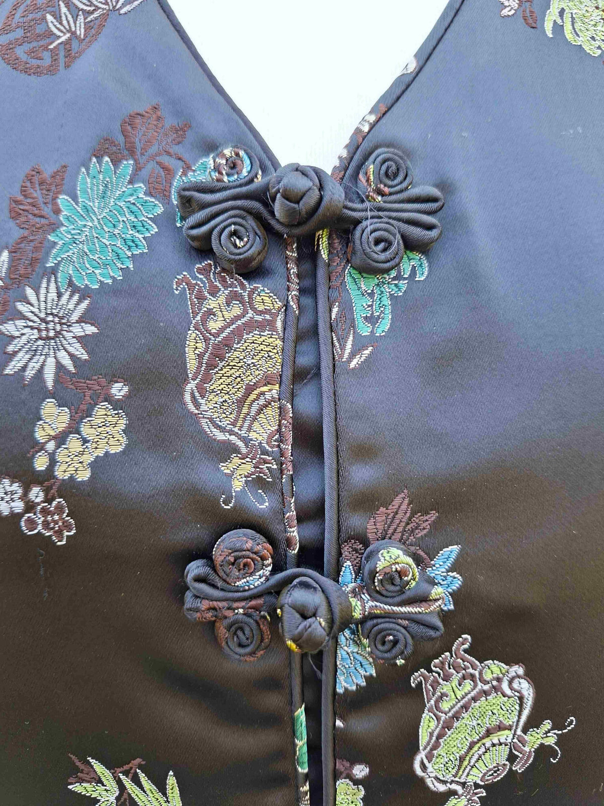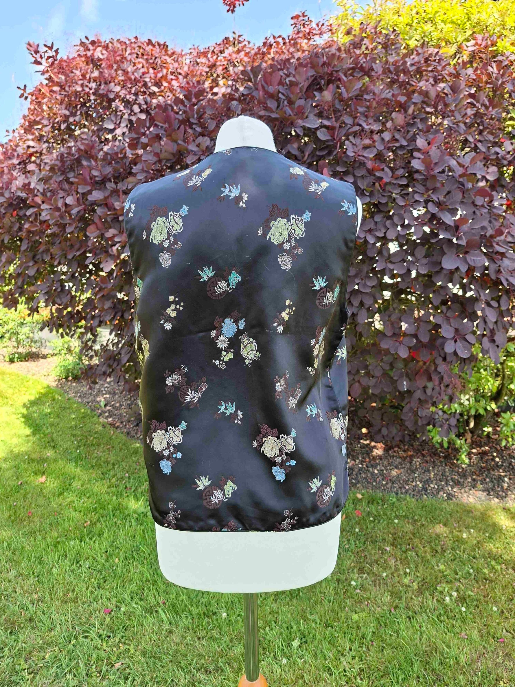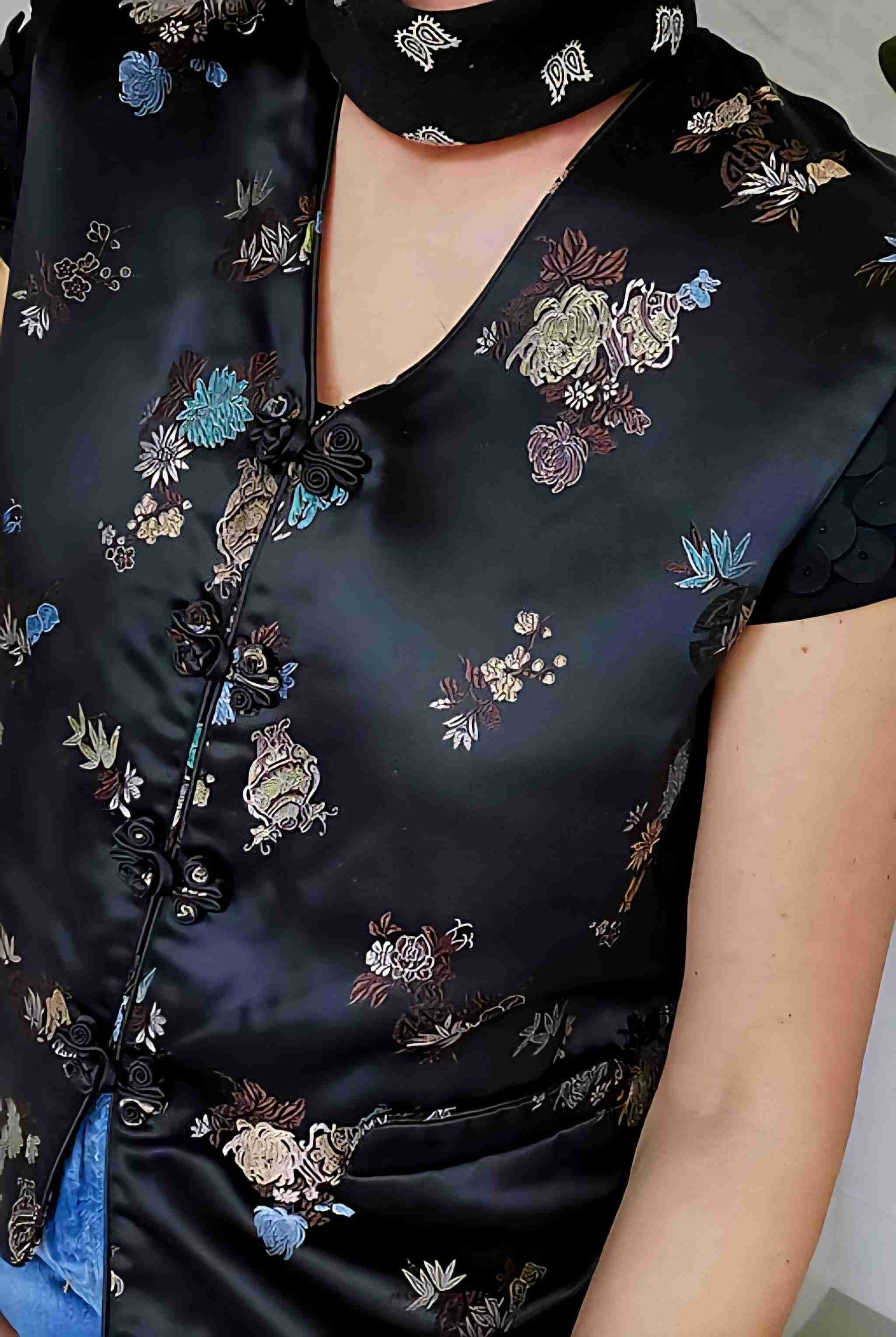 En viscose mélangée noire avec fleurs et autres motifs rose,bleu, vert