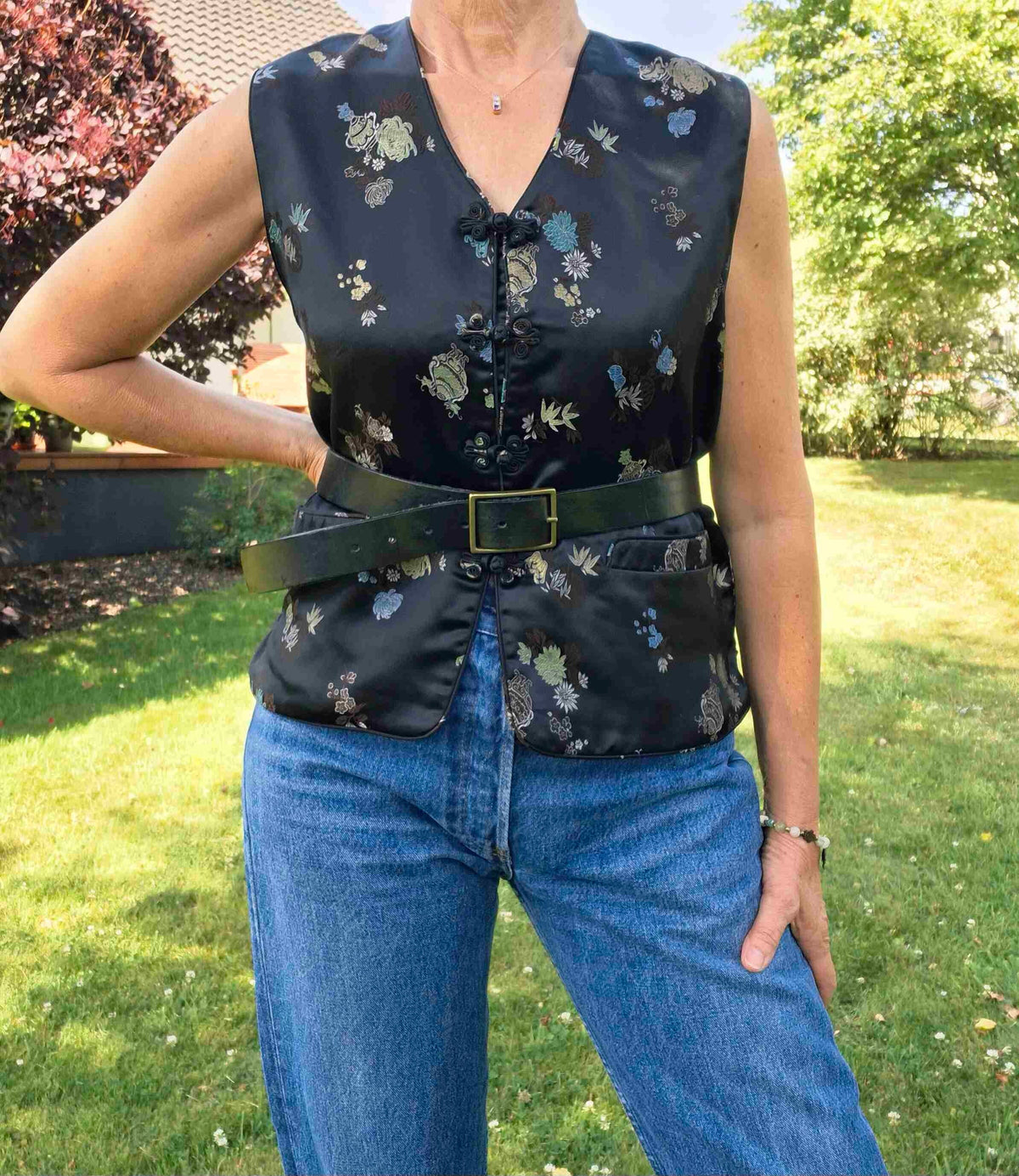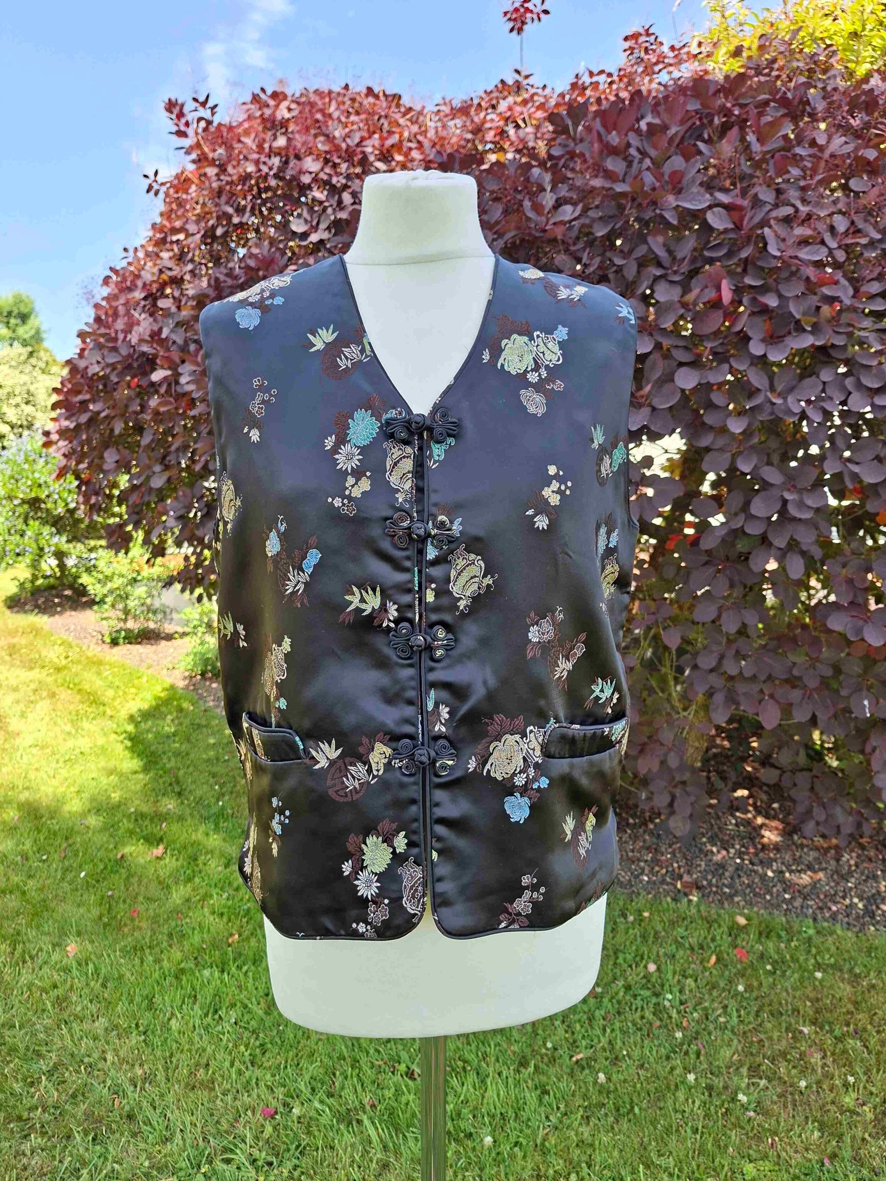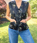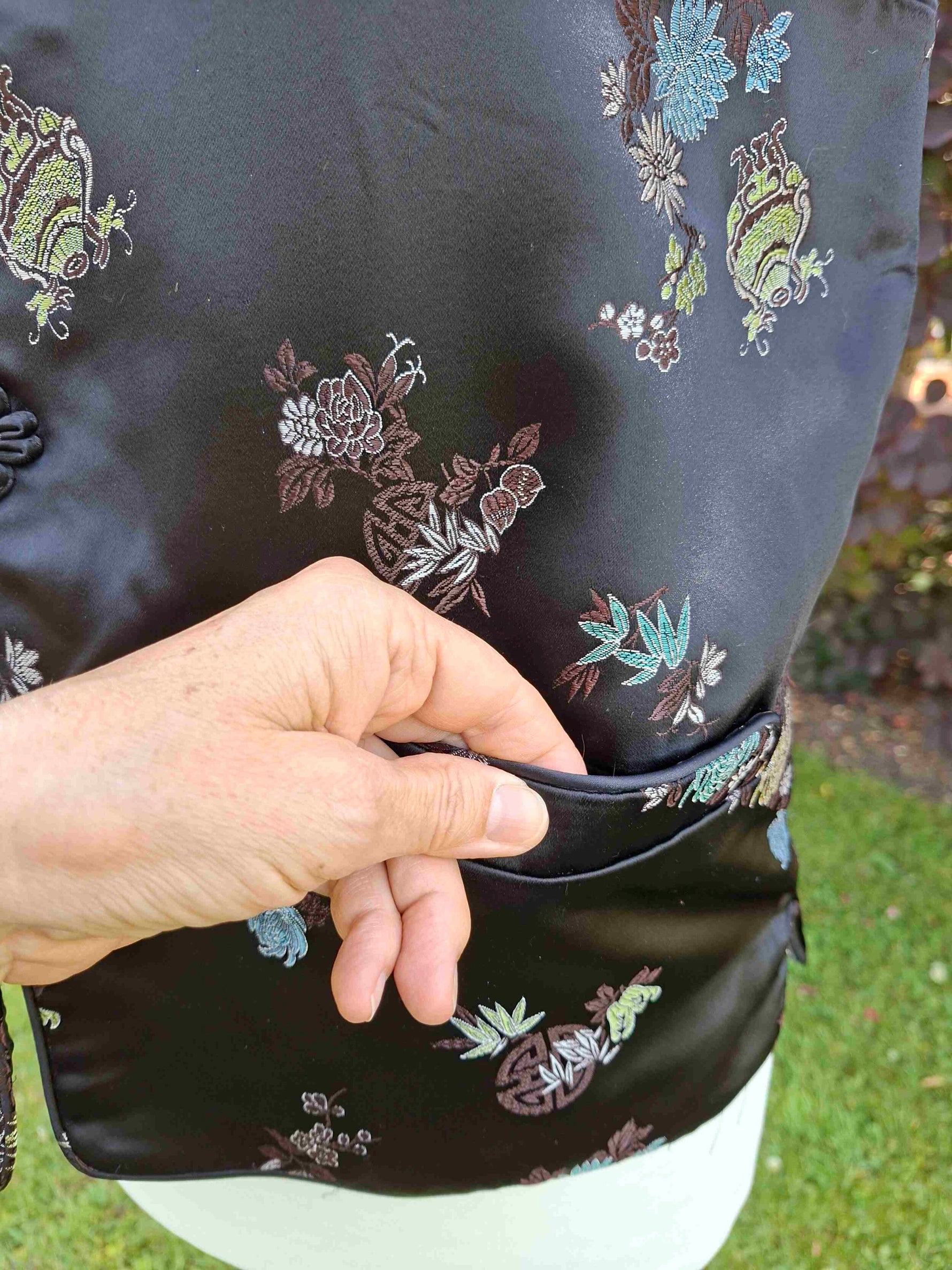 En viscose mélangée noire avec fleurs et autres motifs rose,bleu, vert