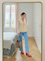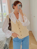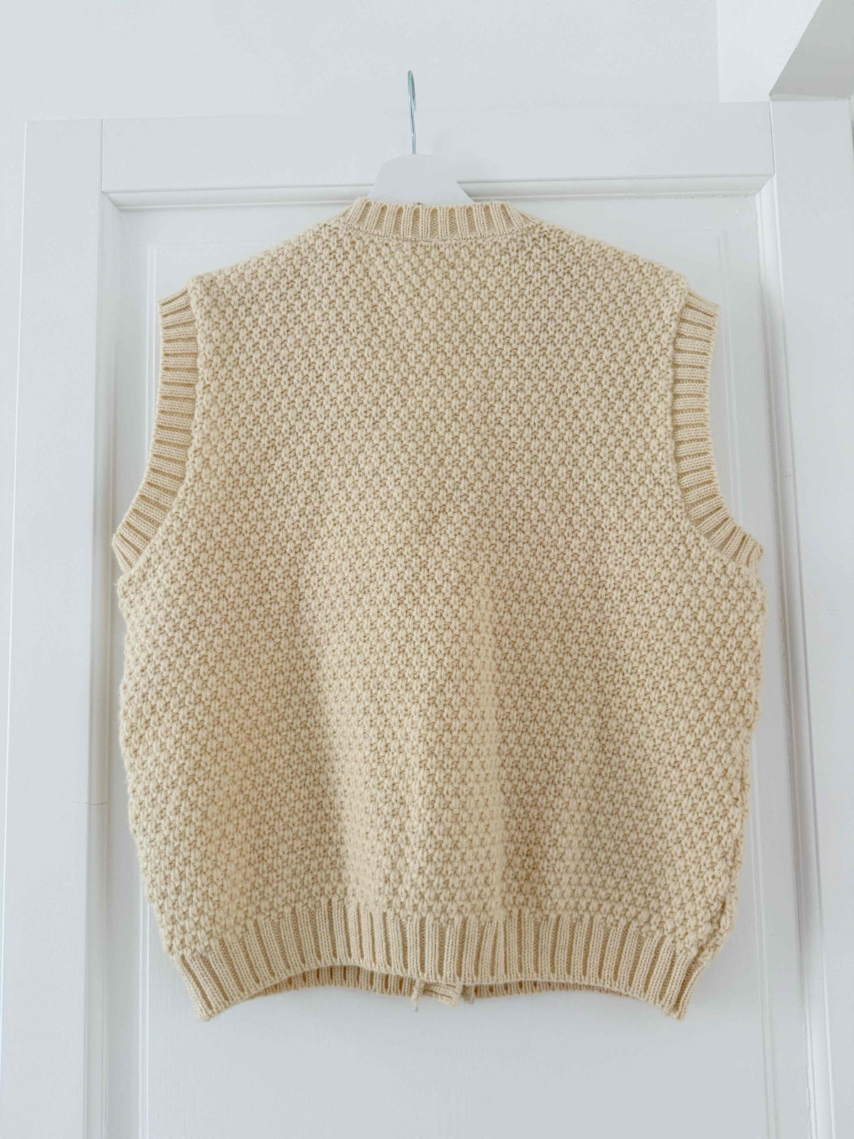 Prix unitaire parGilet en laine, sans manches, Irlandais, maille beige torsadée, boutonné sur le devant, porté ici sur une T36 pour 1m64