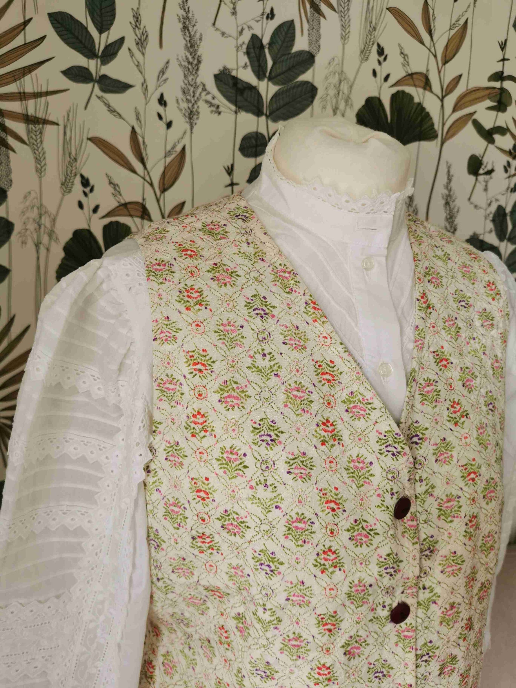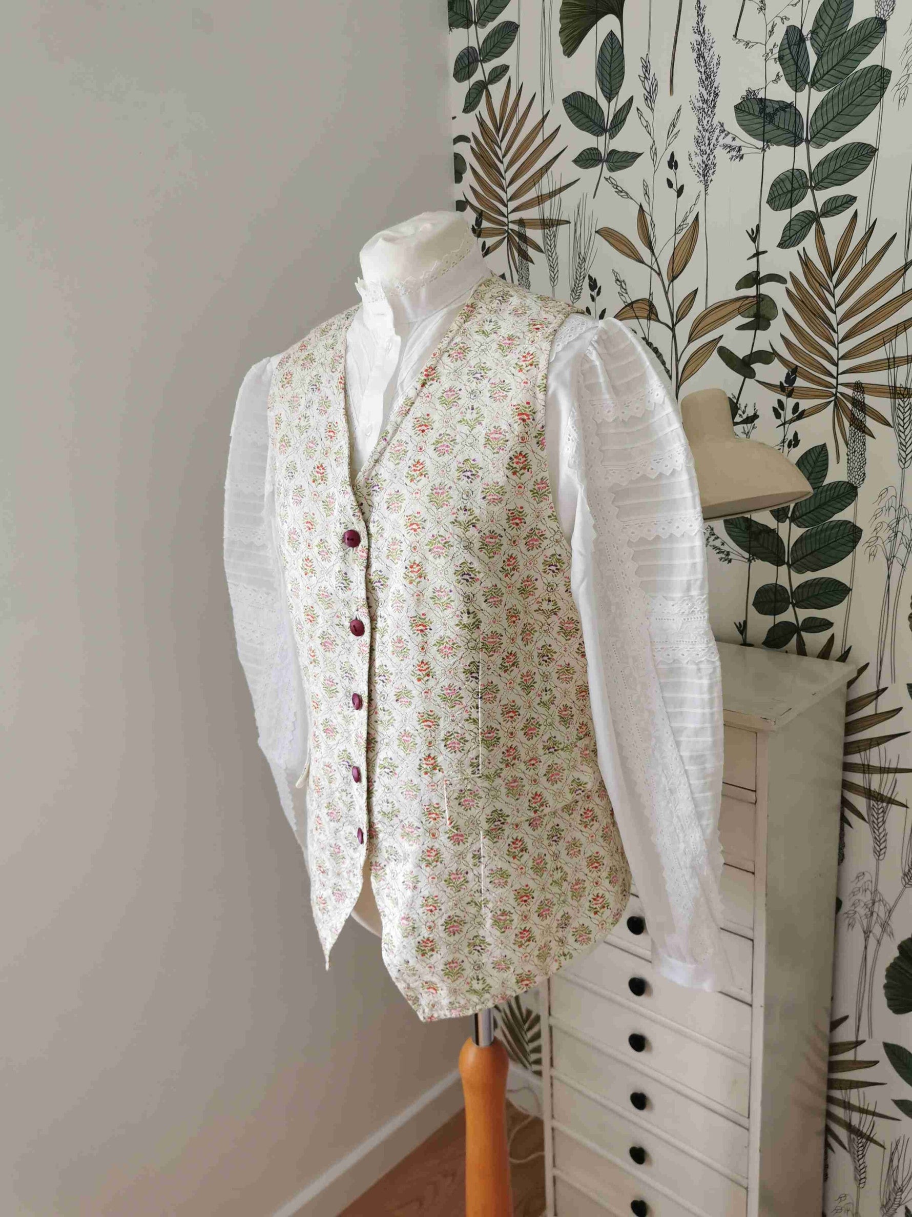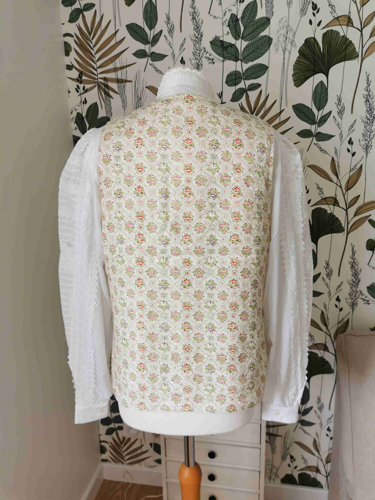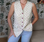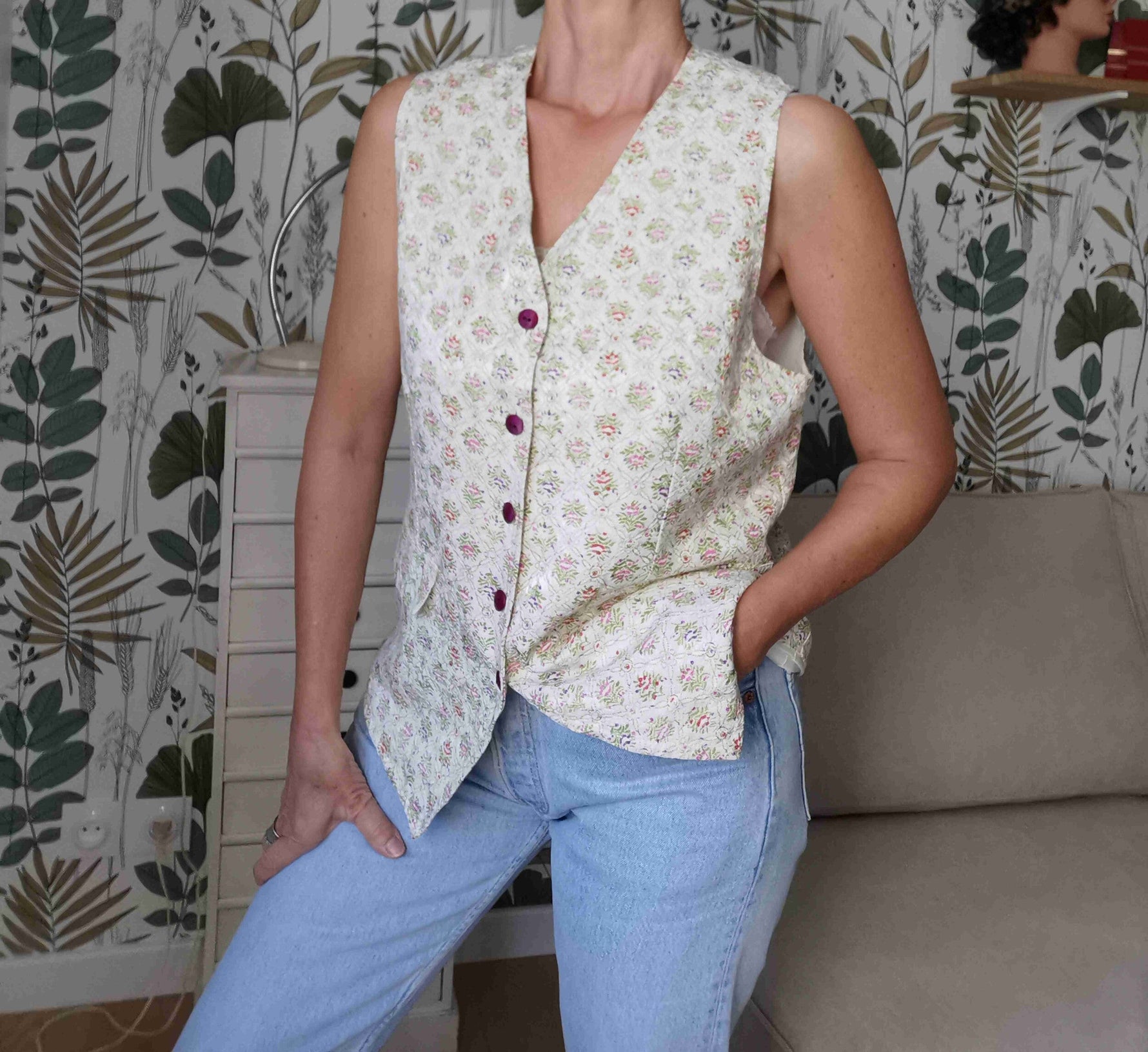 Prix unitaire parGilet sans manches en soie et à fleurs Vintage 70's