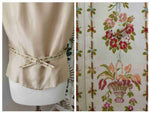 Brodé de fleurs en corbeilles rose, vert sur fond écru