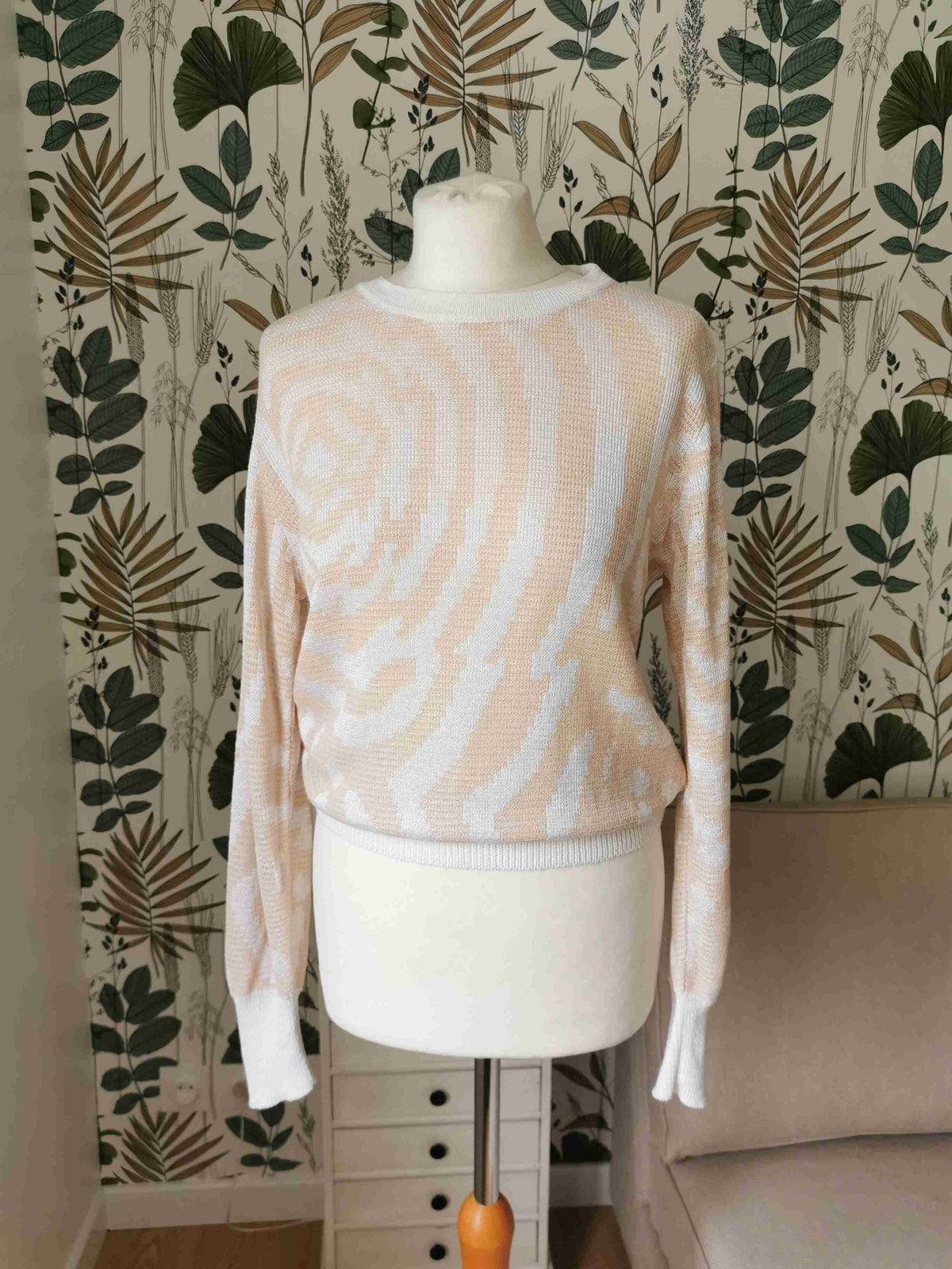 En viscose, lin et polyamide blanc et rose saumon aux motifs psychédéliques