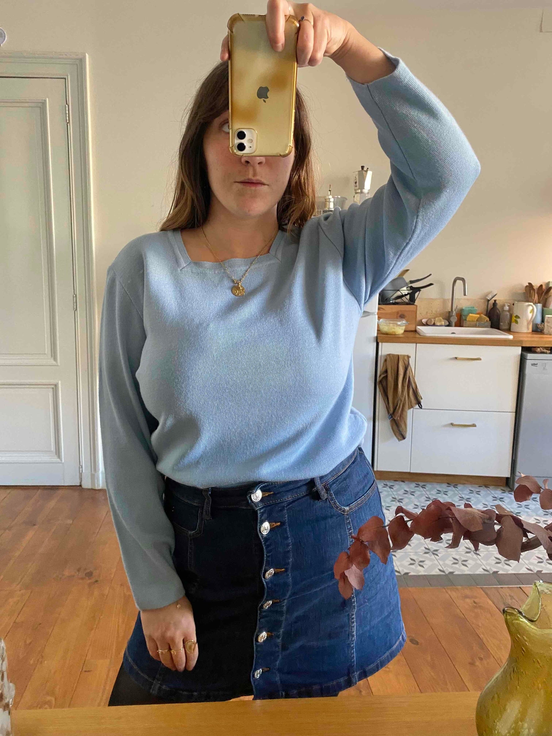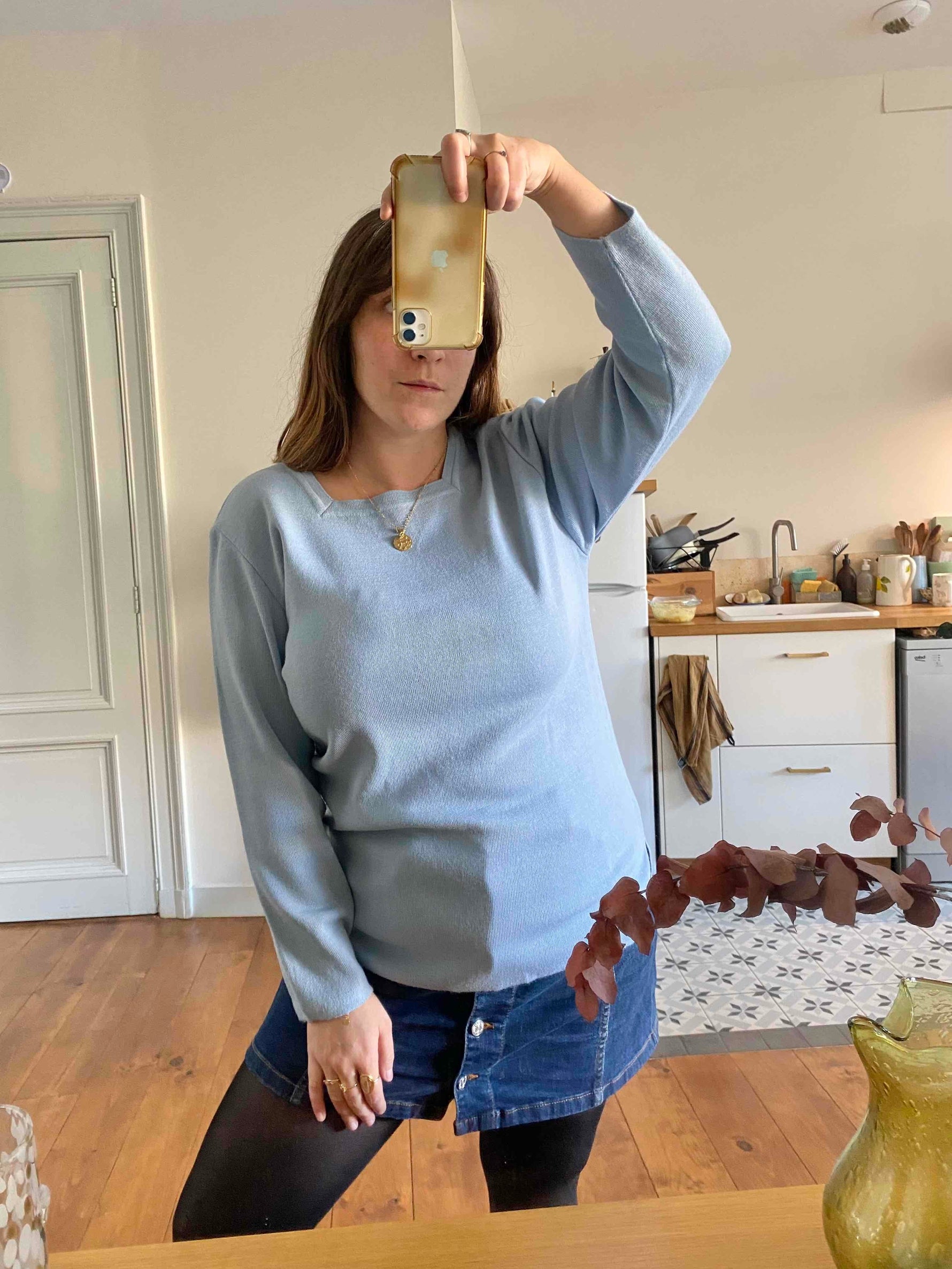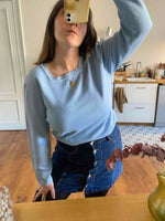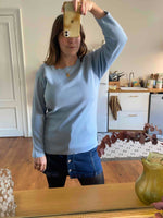 Prix unitaire parPull Saint-James en laine et acrylique bleu ciel, encolure carrée, fabriqué en France, taille 40.