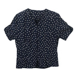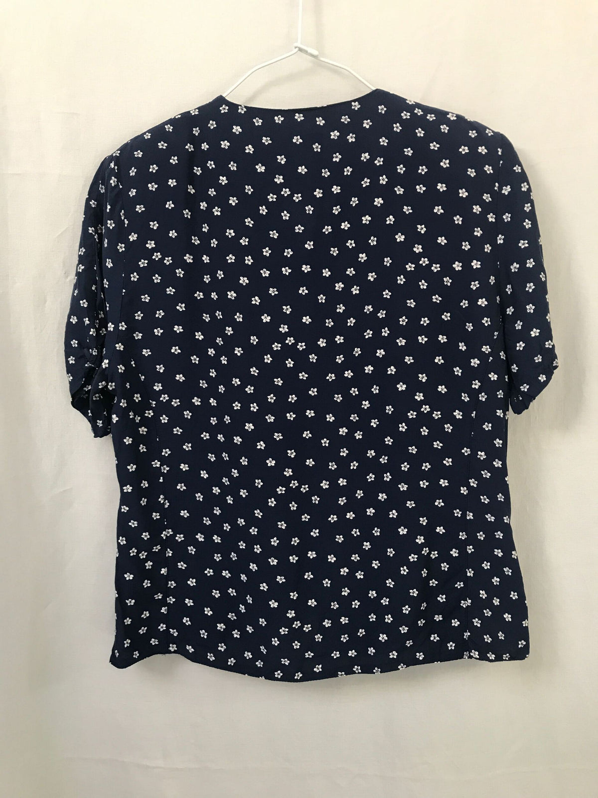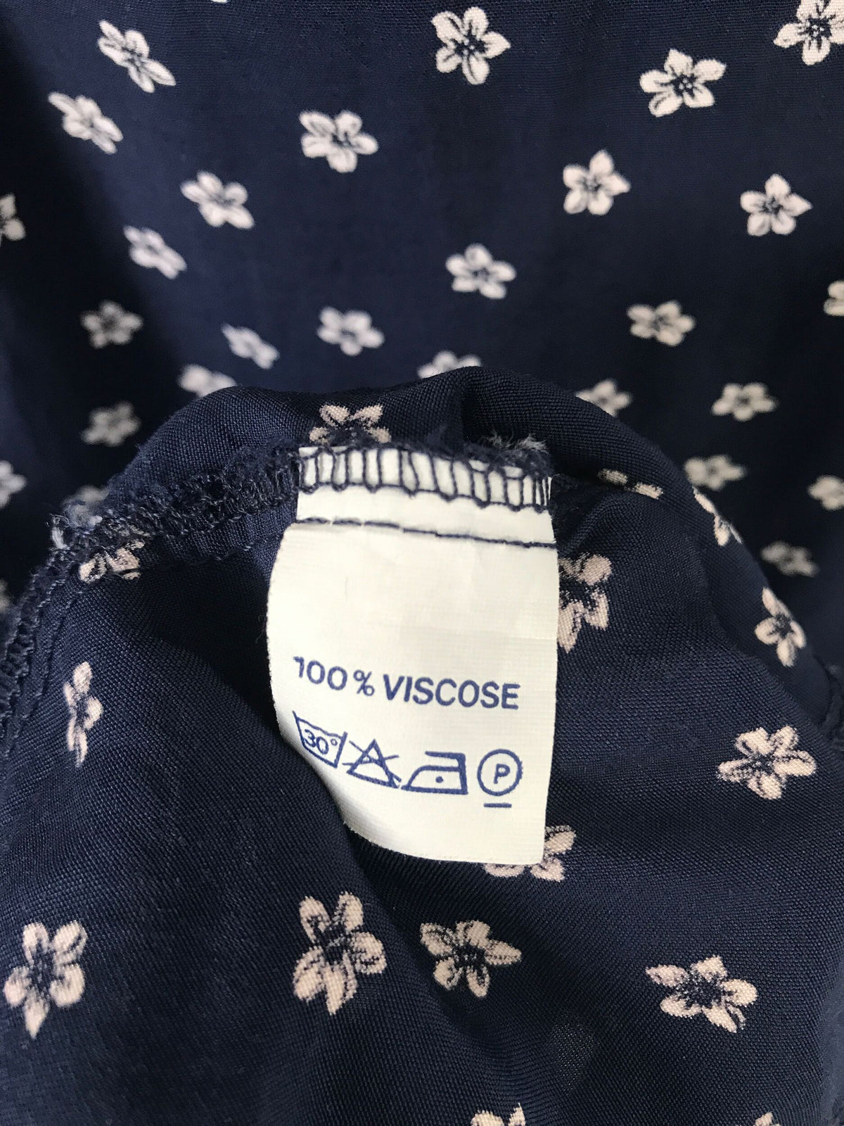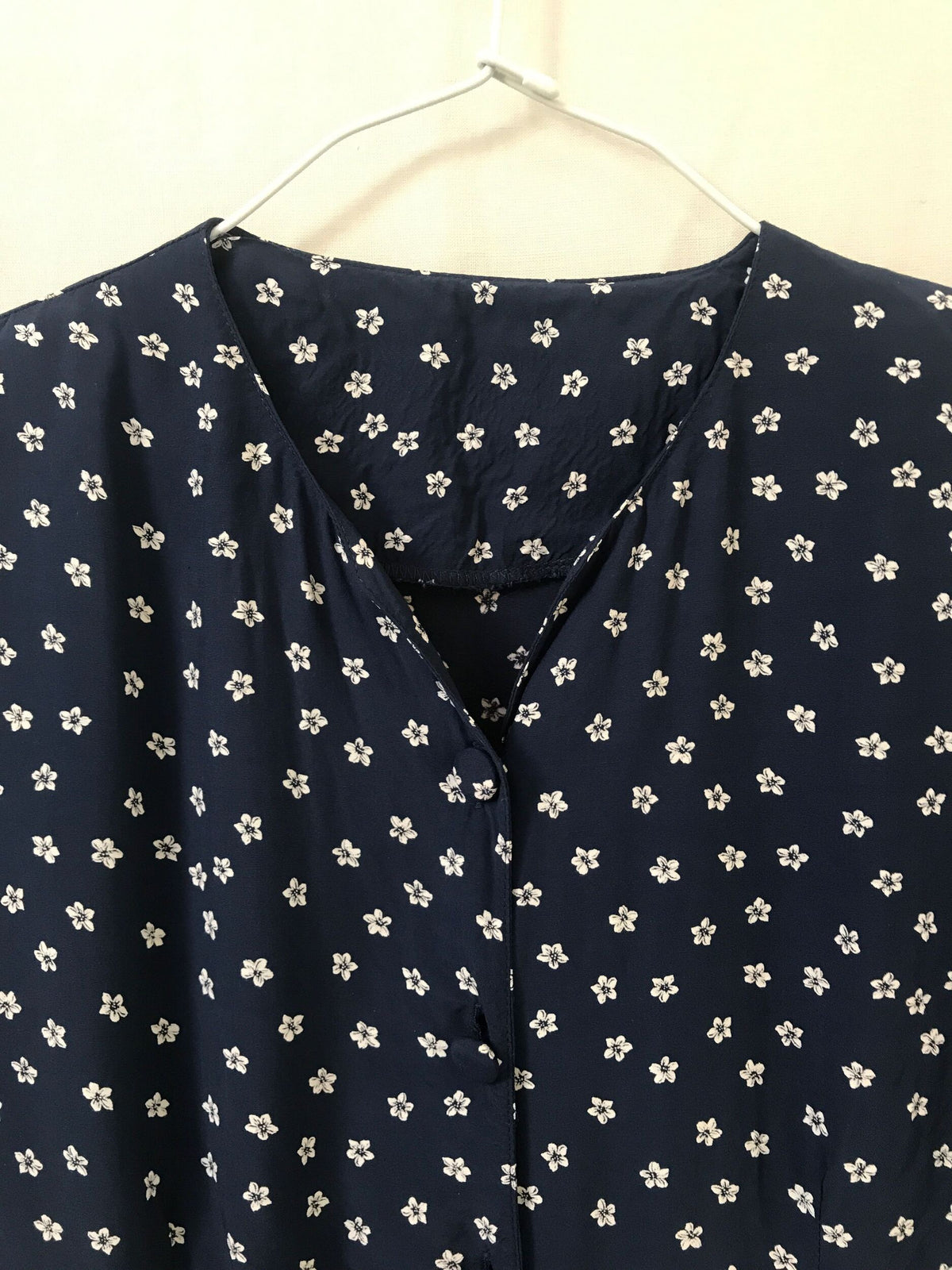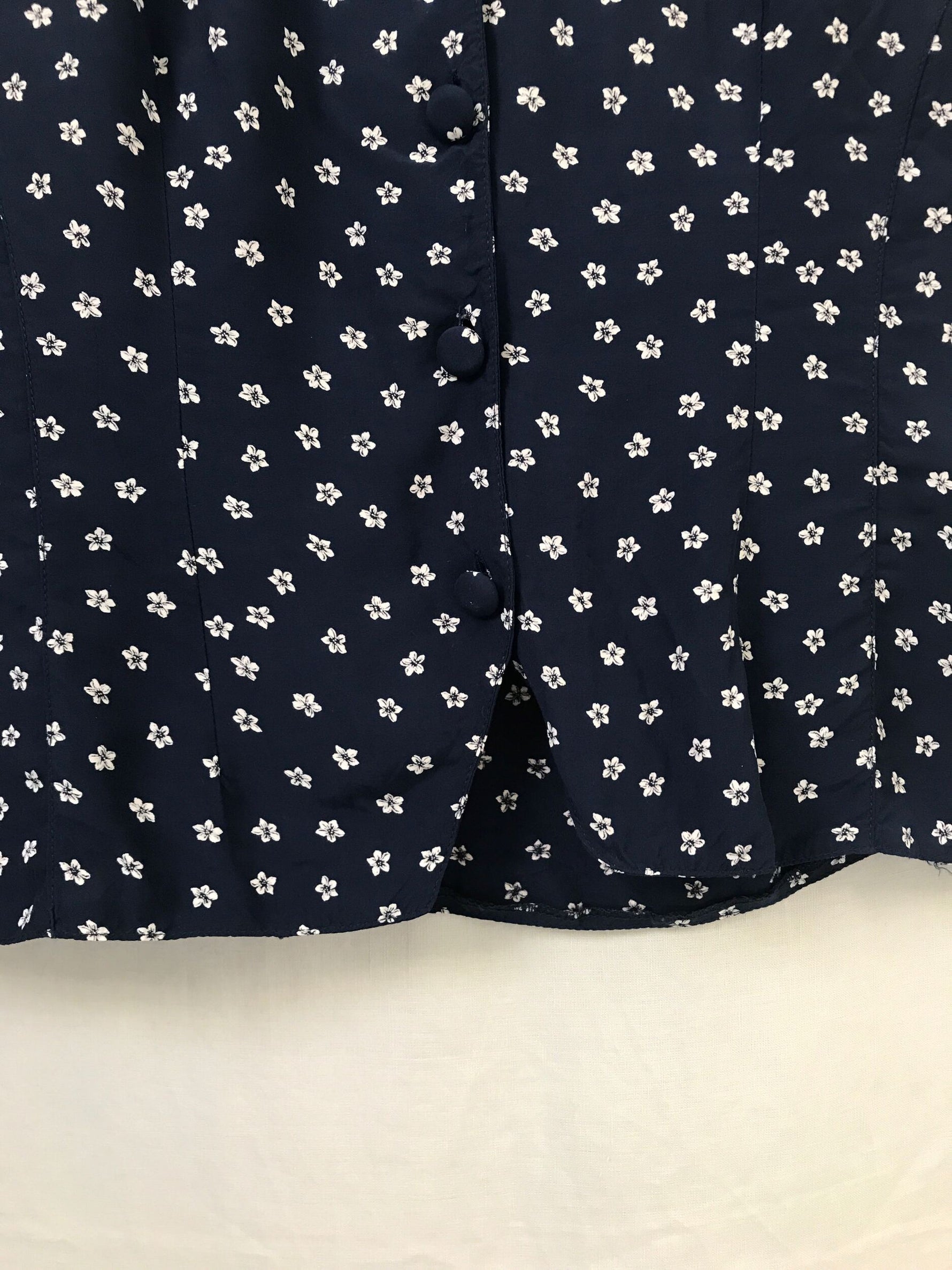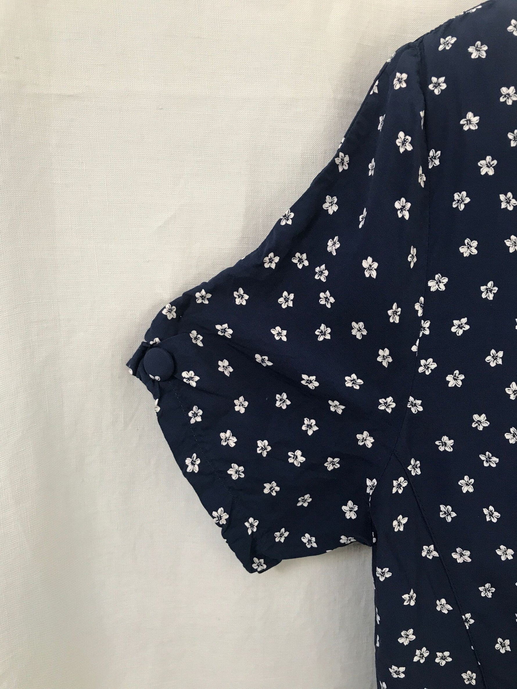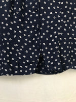 Prix unitaire parBlouse bleu marine à petites fleurs blanches, boutonnée devant et sur les manches, en viscose