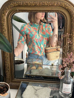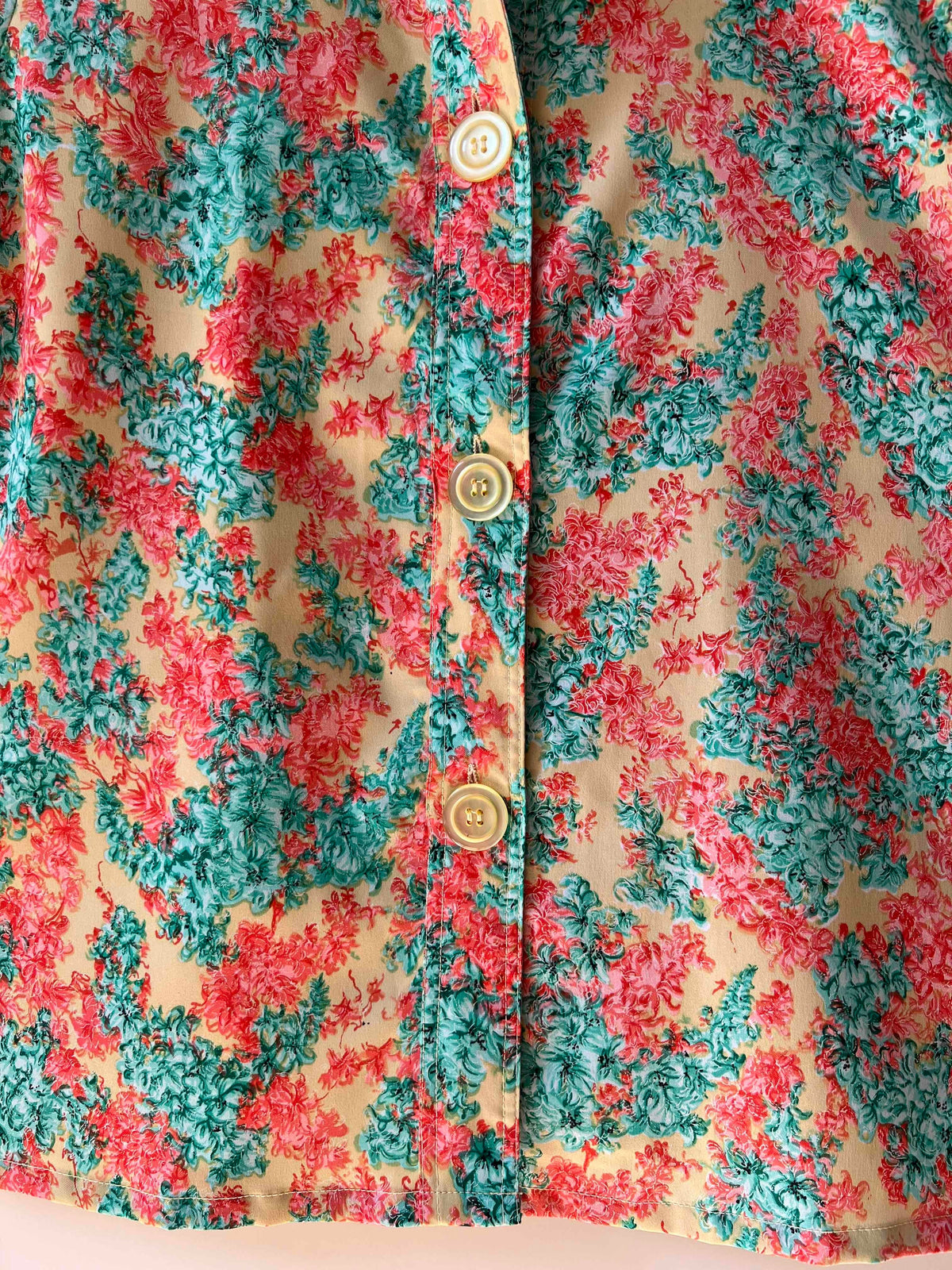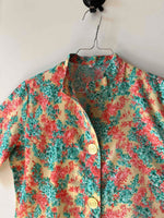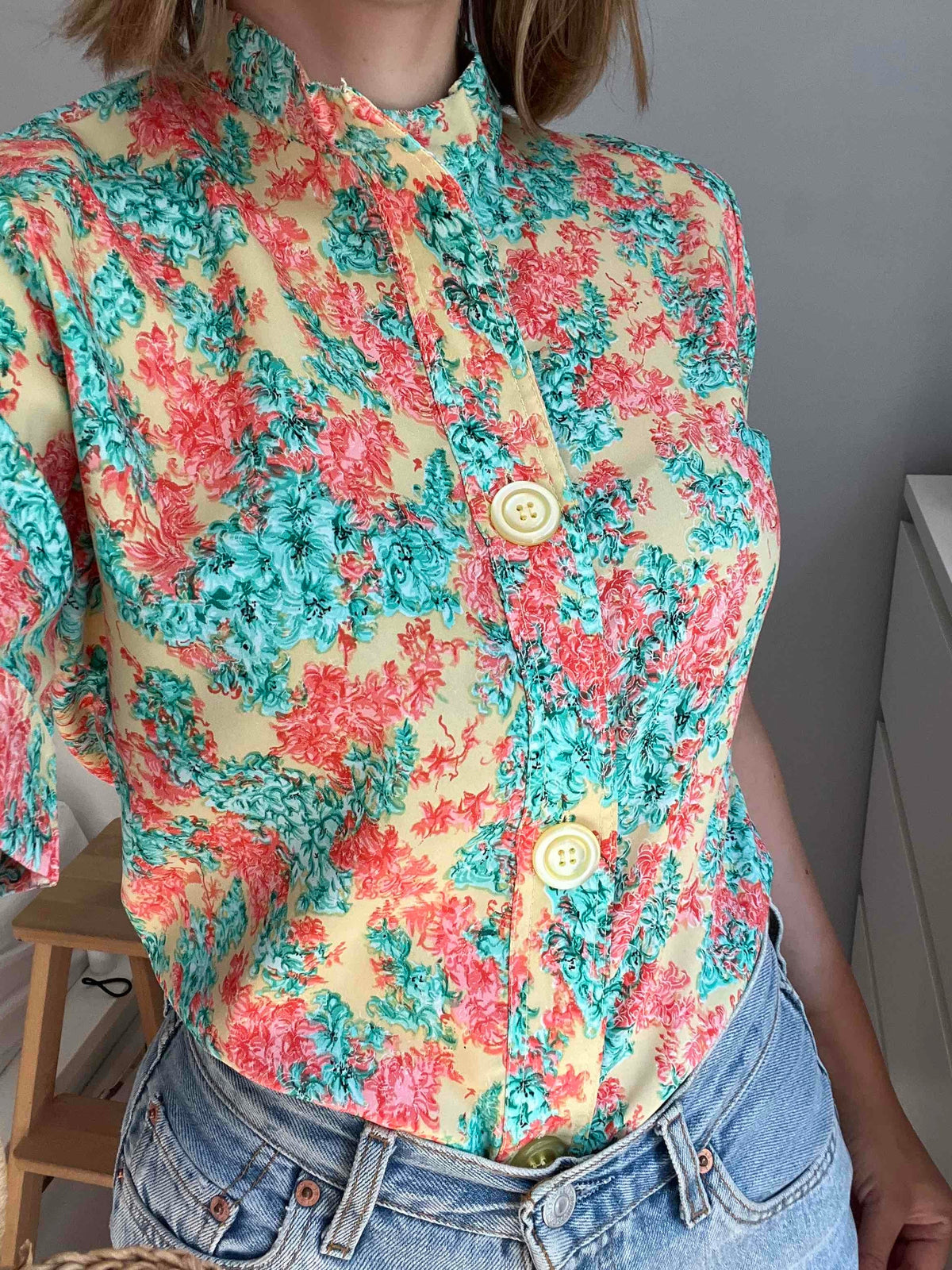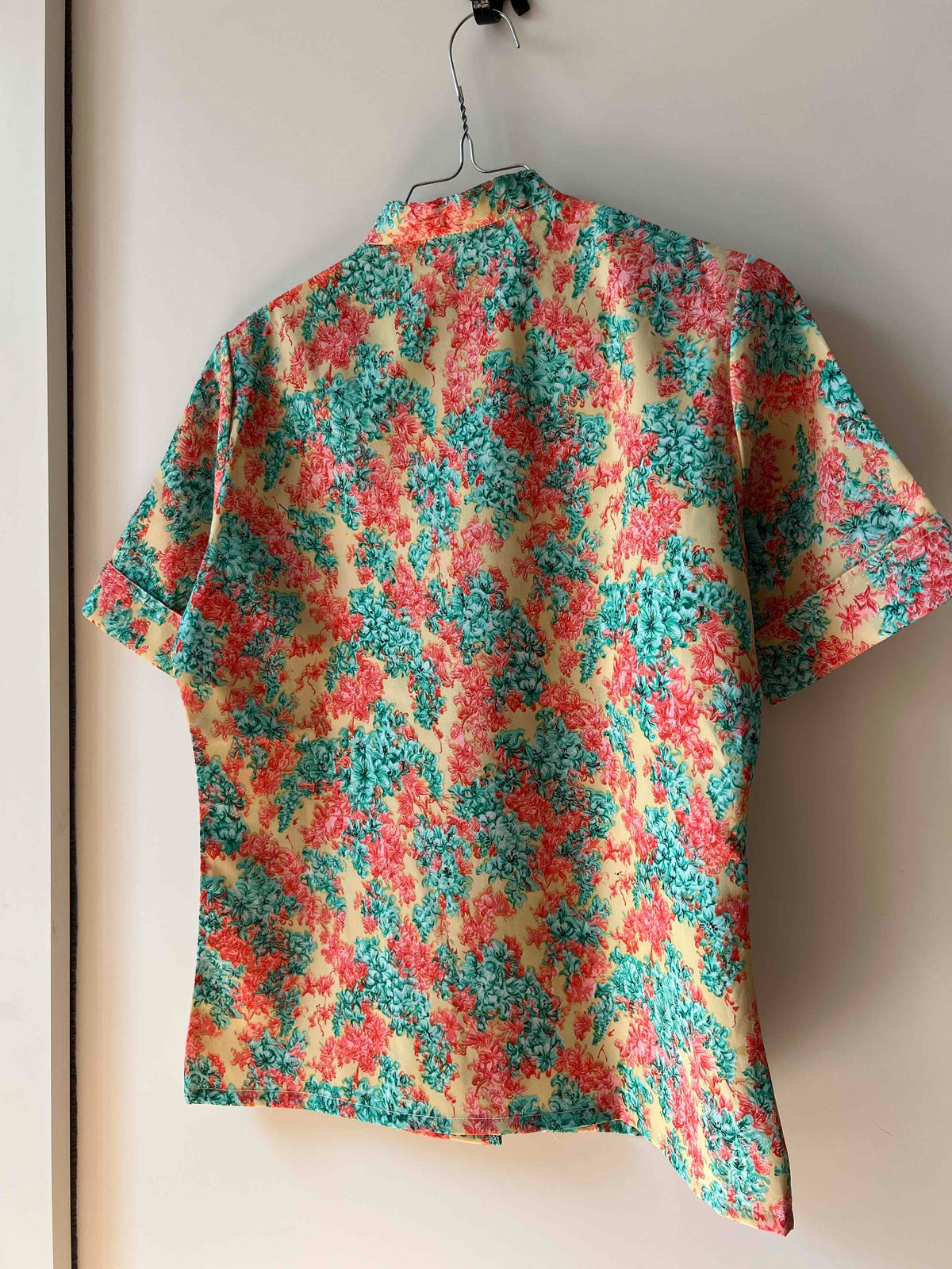 Prix unitaire parChemise à fleurs, à manches courtes et détails de col Mao.