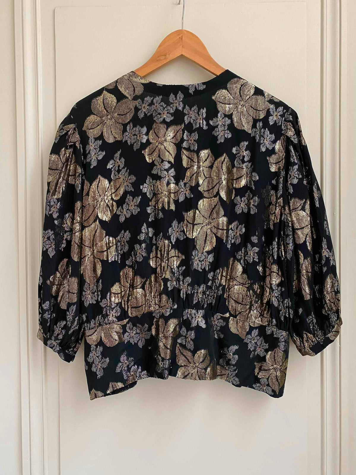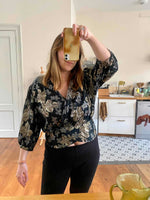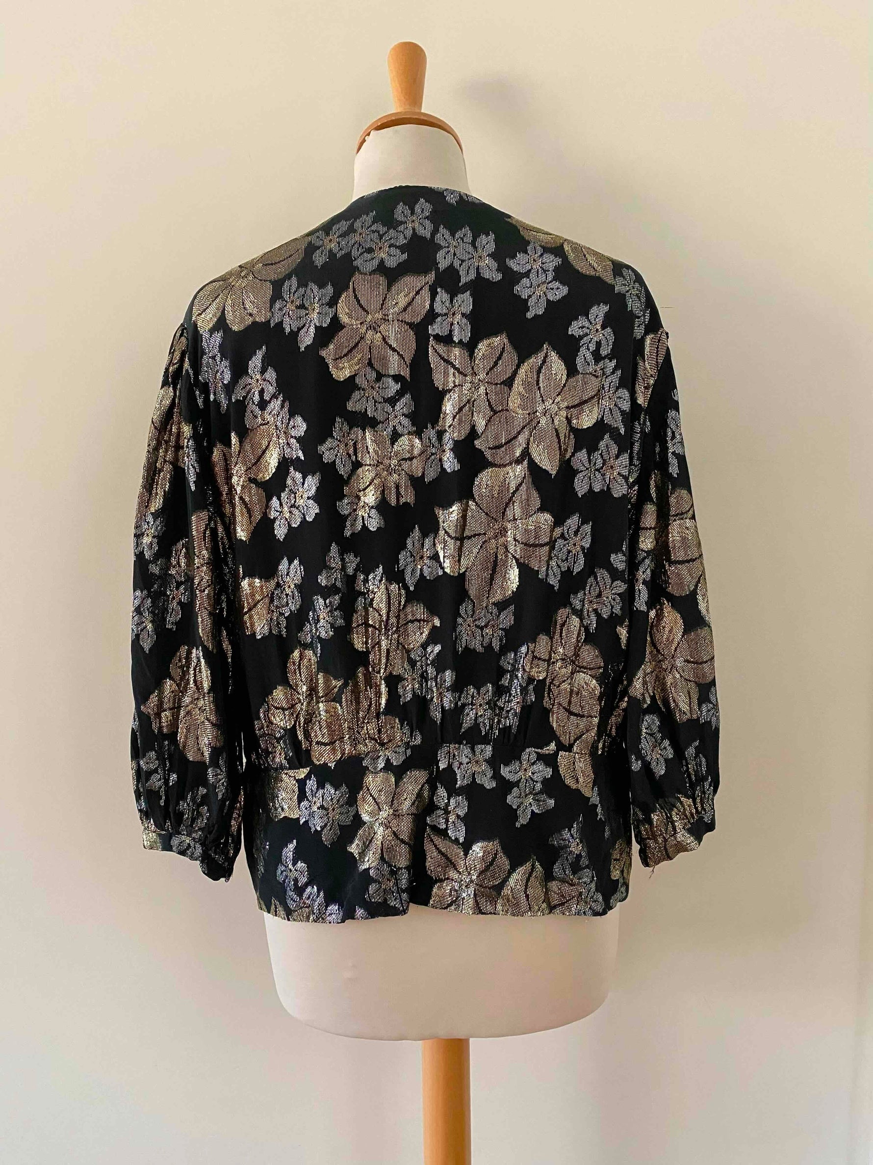 Prix unitaire parBlouse à fleurs, en lurex, jacquard fleuri argenté et doré.