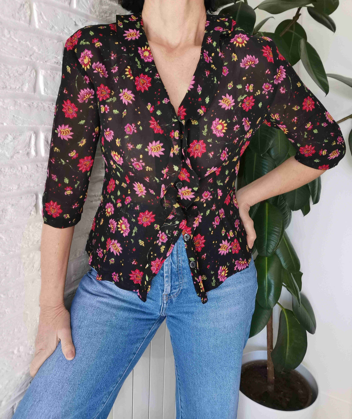 Prix unitaire parTop à fleurs vintage 90's Made in France